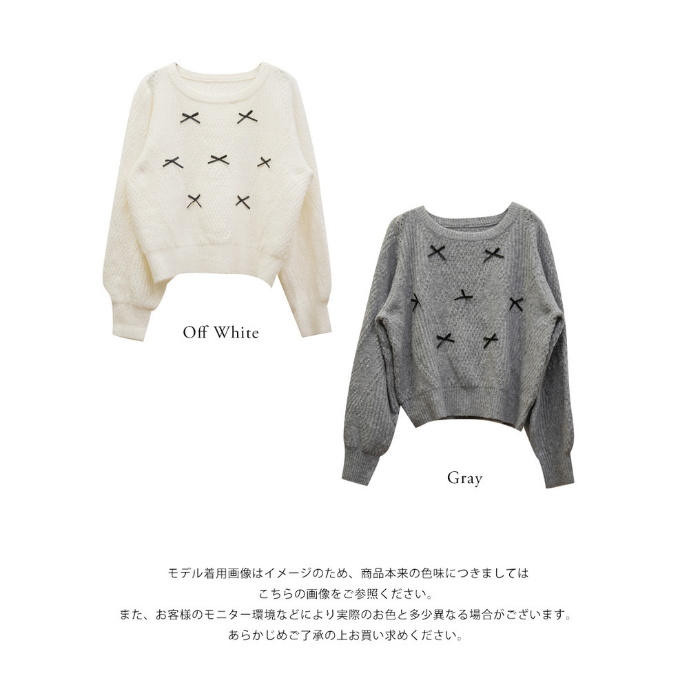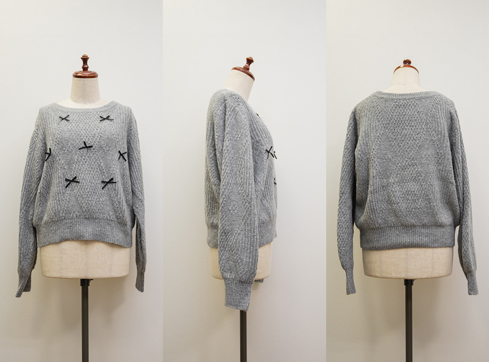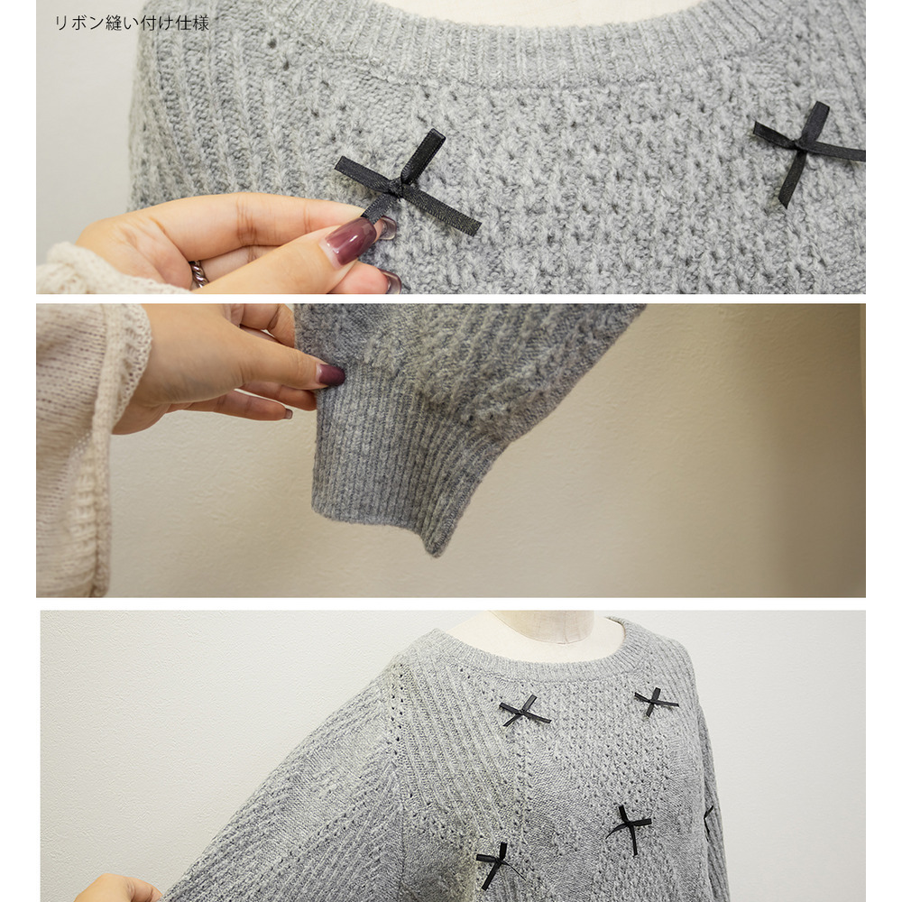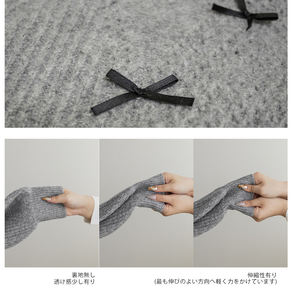 | 素材 | ■素材 【本体】ポリエステル80%、アクリル16%、ポリウレタン4%、【リボン部分】ポリエステル100% ■裏地・透け感・伸縮性 裏地無し、透け感少し有り、伸縮性有り ■ポケット 無し ■生地感 程よくしっかりとした伸縮性のある柔らかなニット素材です。 |