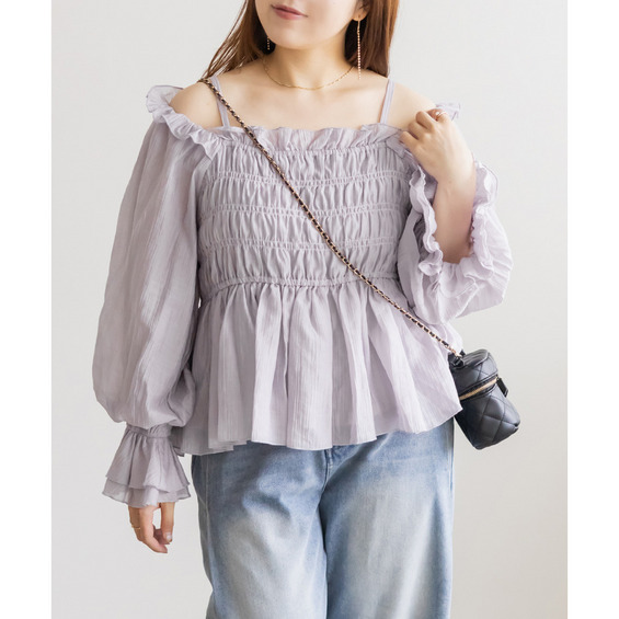 CLETTEオリジナル2WAYシャーリングフリルブラウス