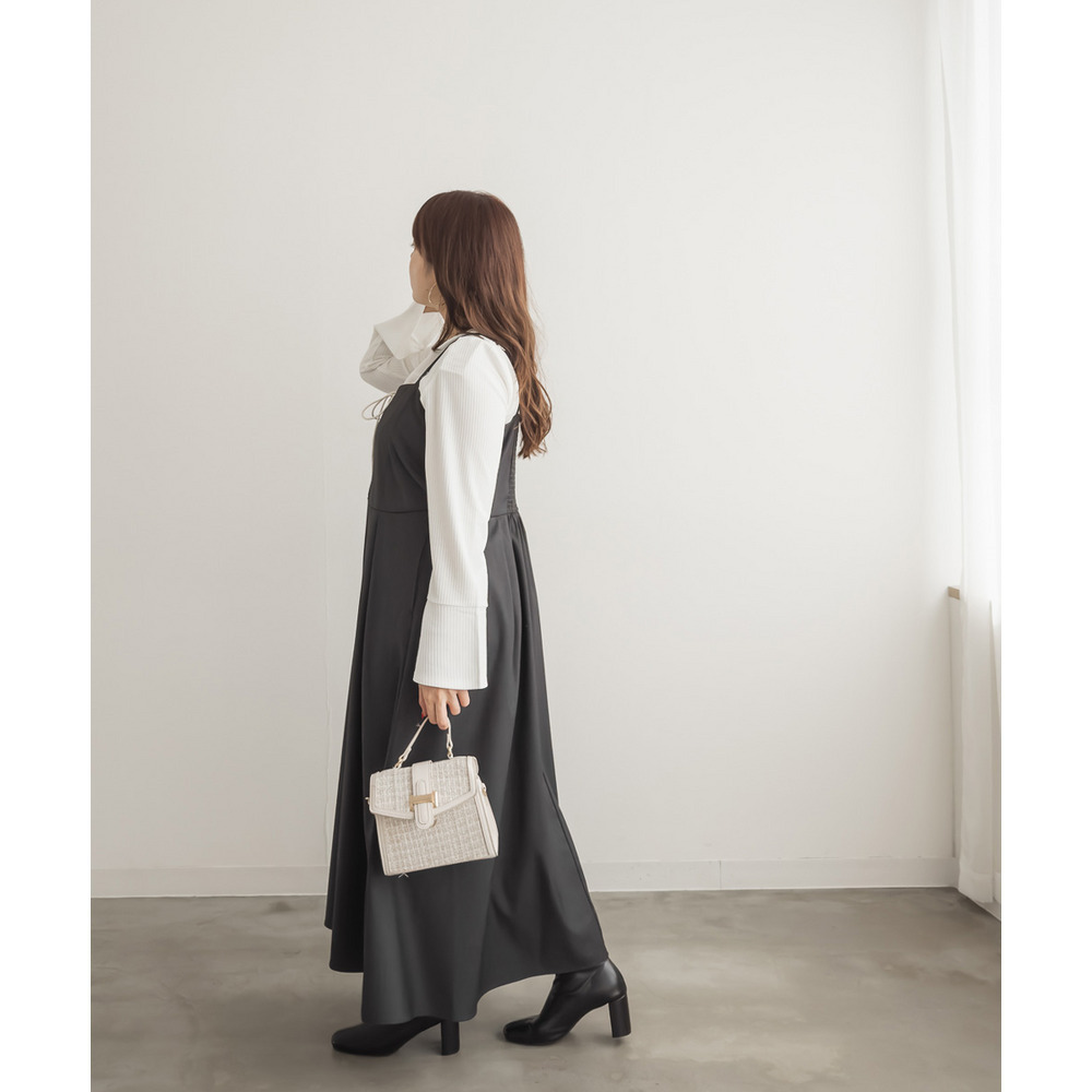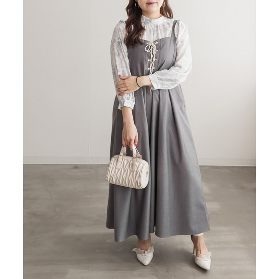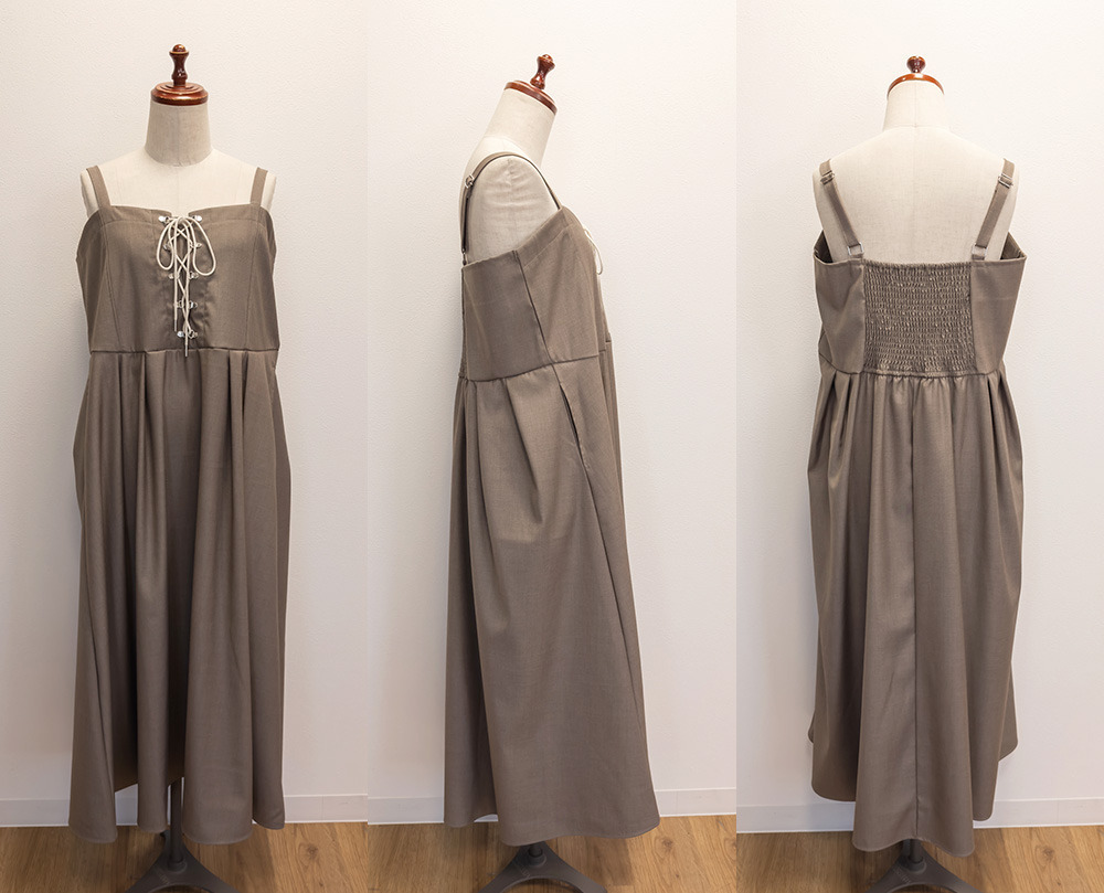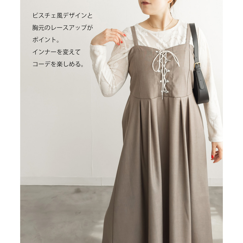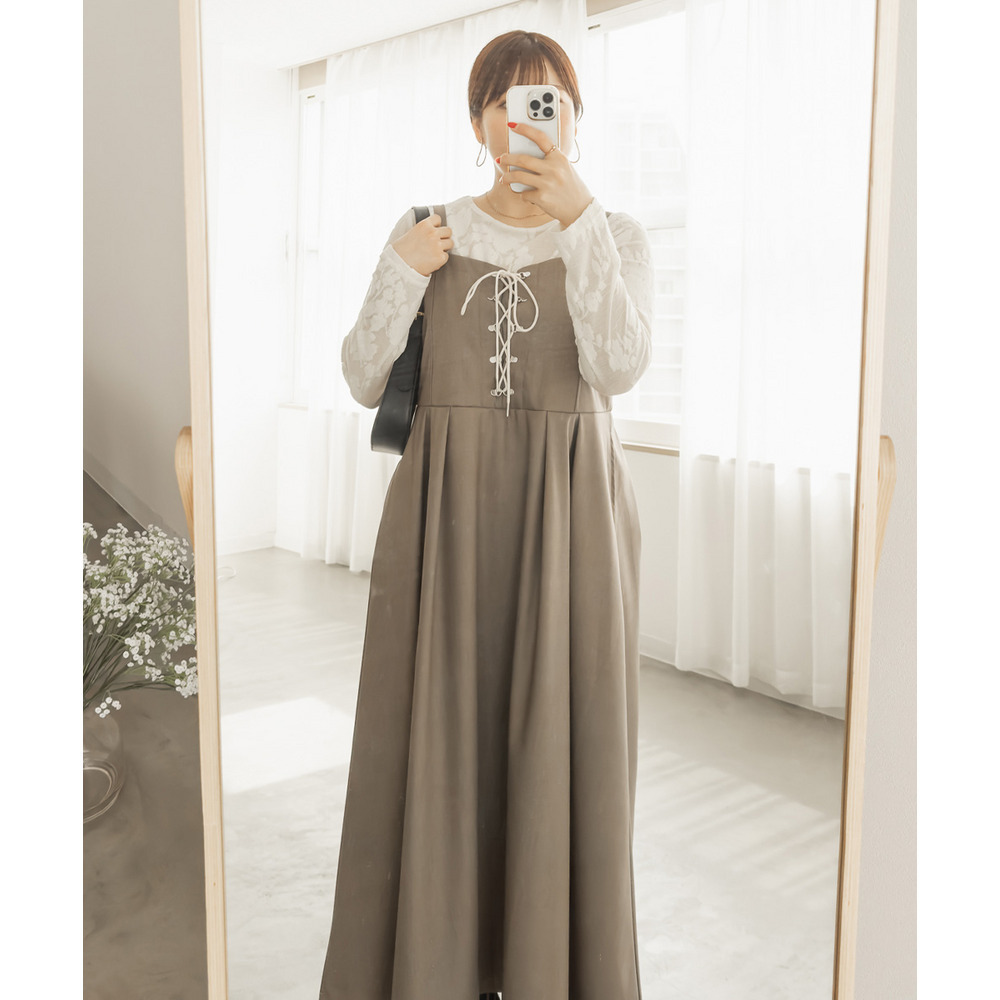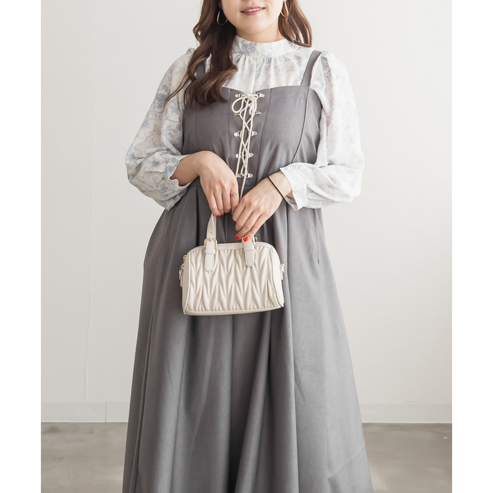 3Lを着てちょうどいいサイズでした。後ろゴムだったり楽に着られる仕様だったので着やすい1枚です◎上半身部分はすっきりとしていながら、スカート部分は綺麗に広がるからフィット&フレアですっきり着やせできます!少しハリのある生地なのでボディラインを拾いずらいのも嬉しい!レースアップデザインで甘くなりすぎずに、おしゃれ感も楽しめるワンピースなのでインナーを変えて色々な着こなしを楽しめそうです! |