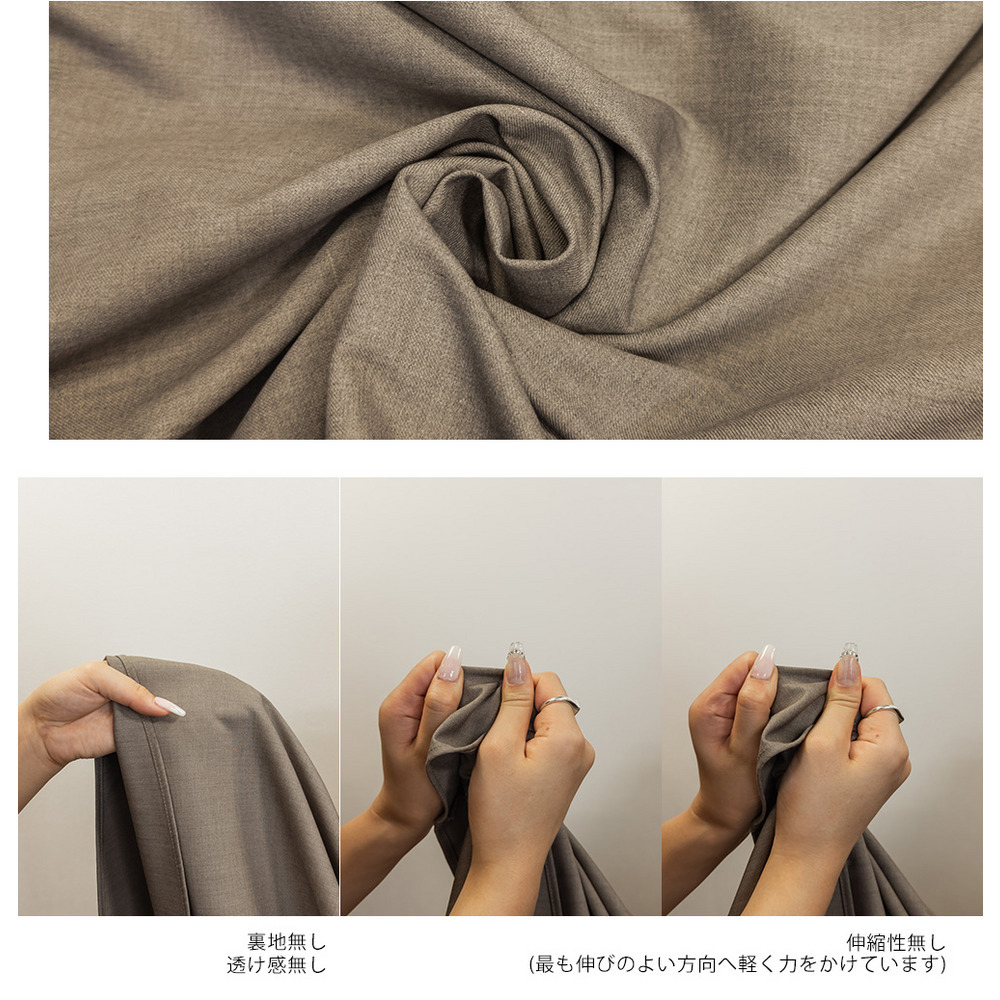 素材 | ■素材 【本体】ポリエステル80%、レーヨン20%、【別布】綿100% ■裏地・透け感・伸縮性 裏地無し、透け感無し、伸縮性無し ■ポケット 有り ■生地感 程よくハリ感のあるしっかりとした素材です。 |