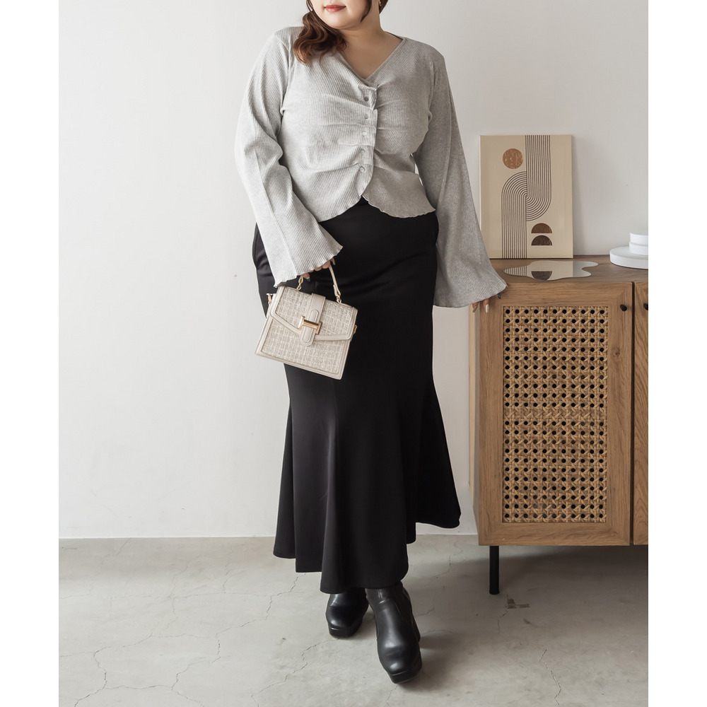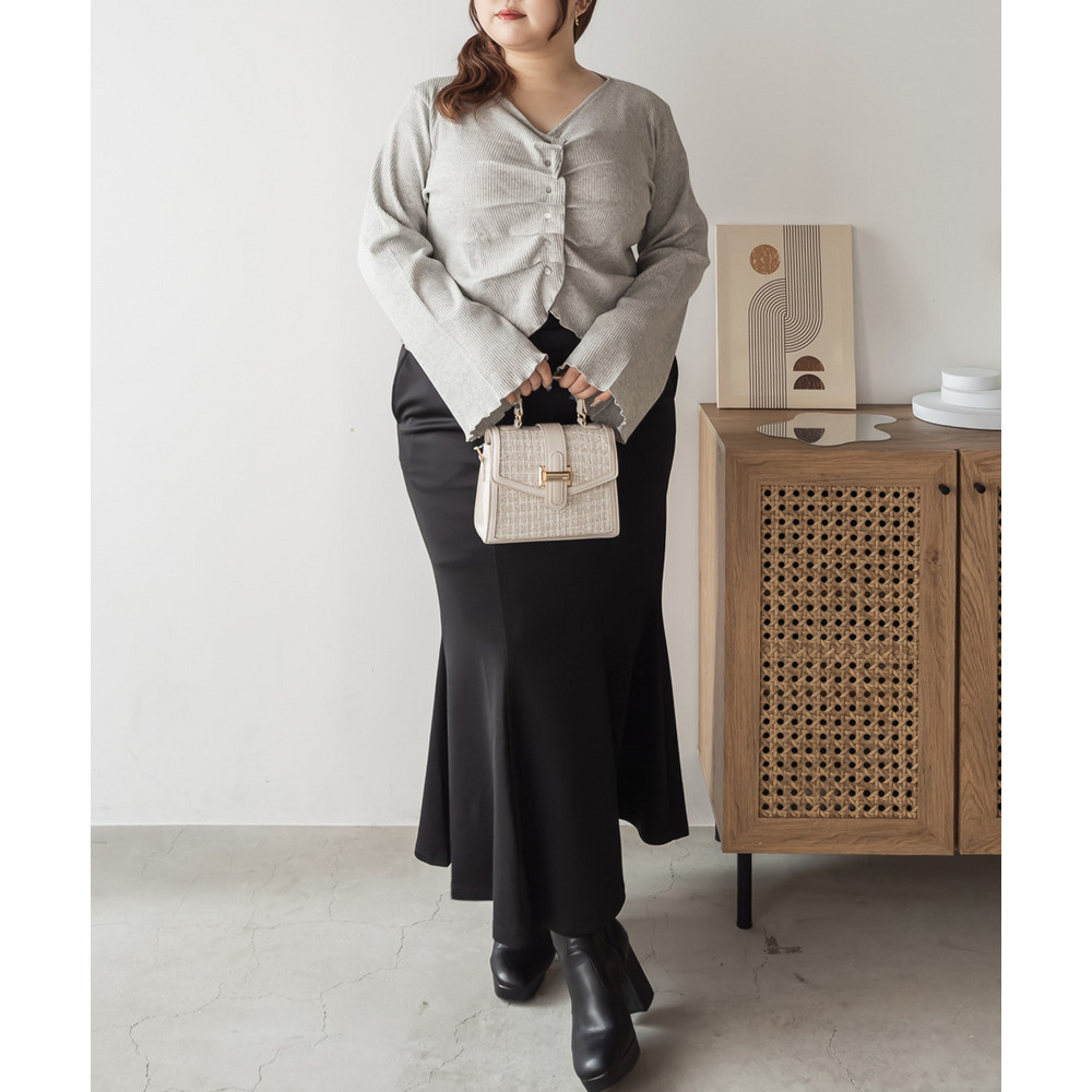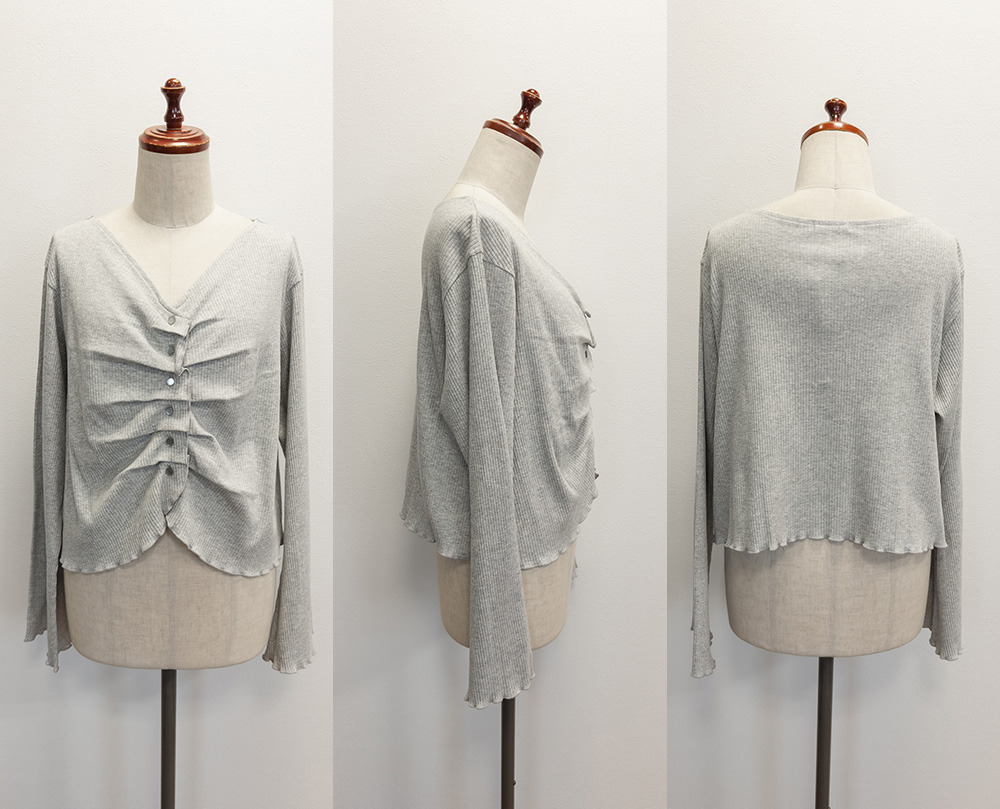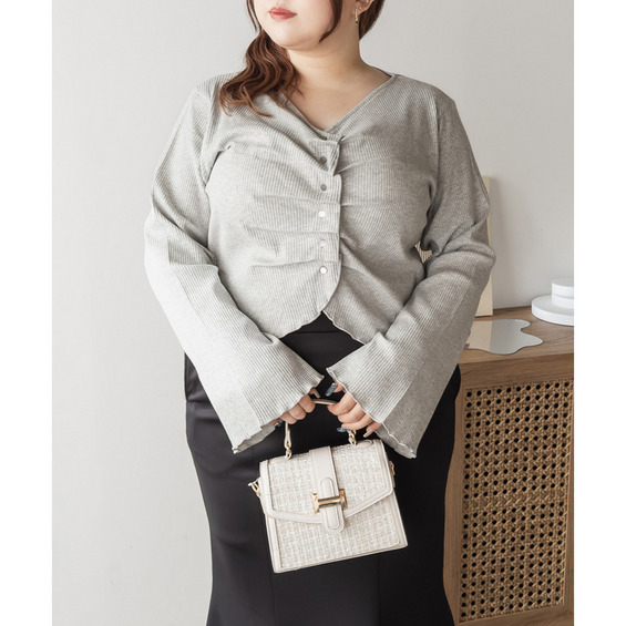 3Lサイズを着用してちょうどいいサイズ感でした。首元がすっきり開いていて華奢な印象で着用出来ました◎リブカットソーでらくちんなのはもちろん、メリハリのある縦のラインが強調出来て着やせして見えます!他にないデザインで抜け感があり今っぽい1枚です!ボディラインをカバーしてくれるギャザーたっぷりのデザインが今っぽさと着痩せを両立してくれます♪丈感も丁度良くタックインせずにバランスよく着られます!コーデしやすいのでい1枚で映えるアイテムで、前開きなのでカーデとして秋~春とながく使えるのでパンツやスカートと合わせてたくさん着たいアイテムです! |