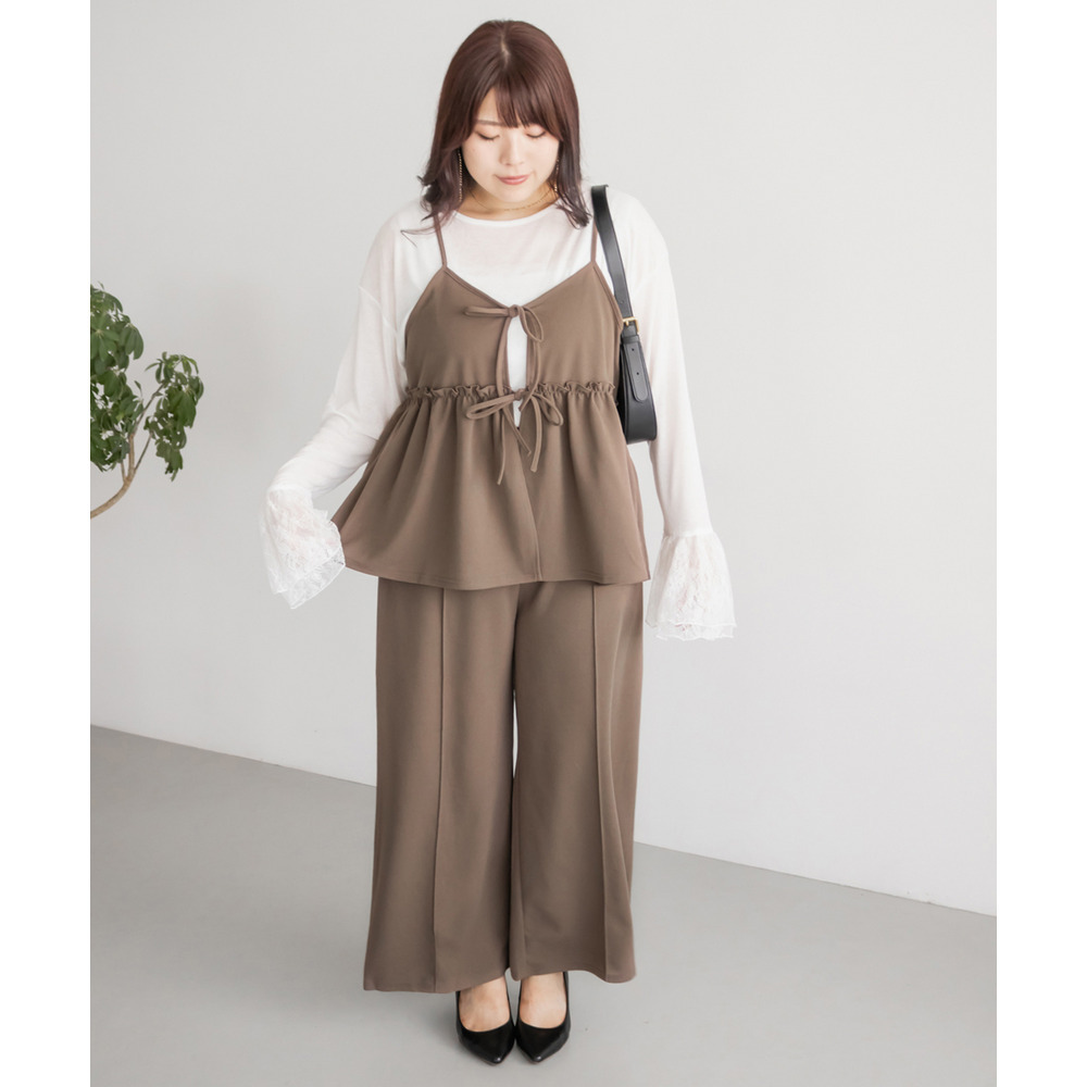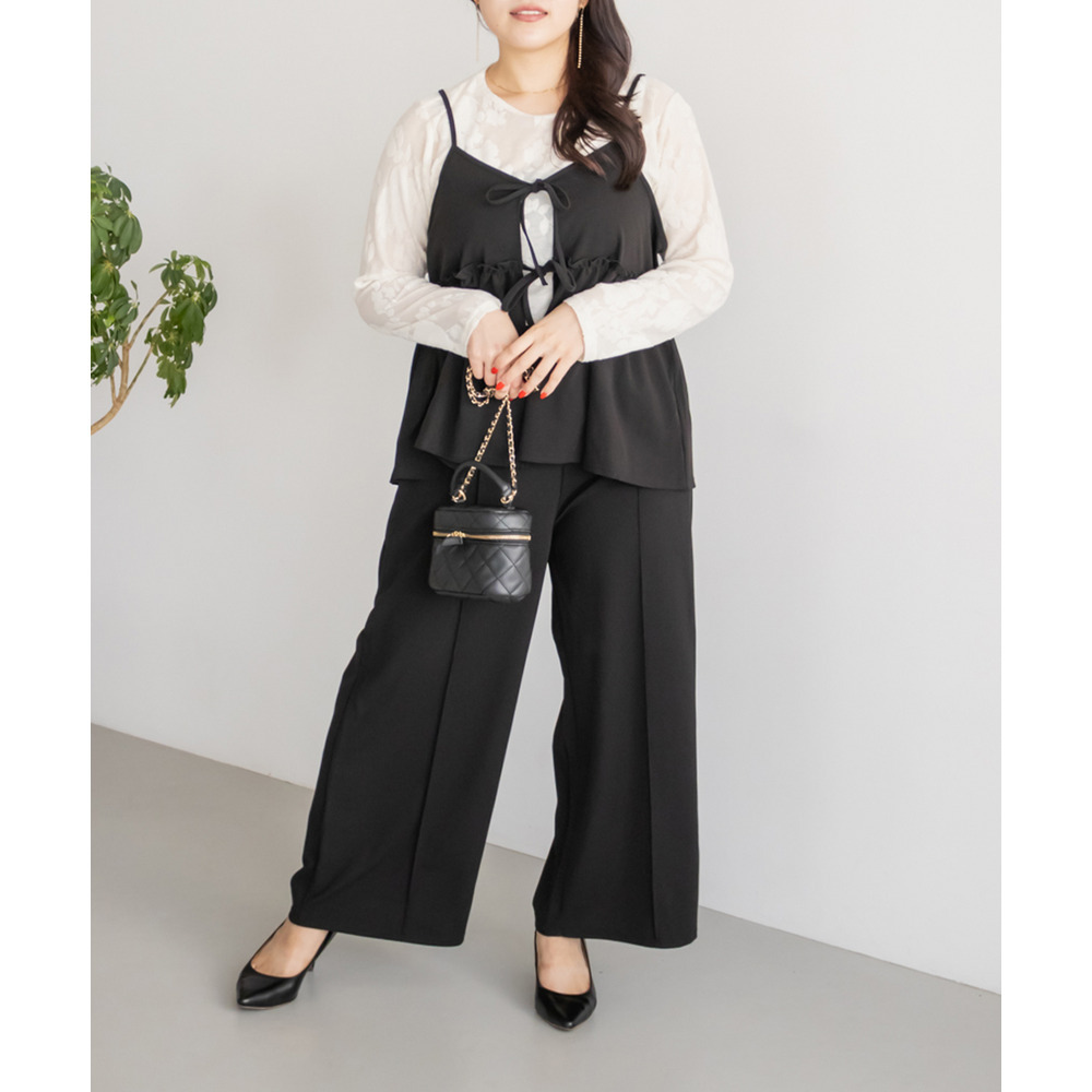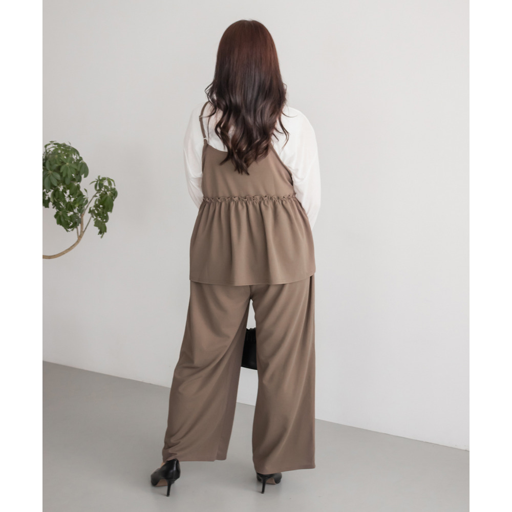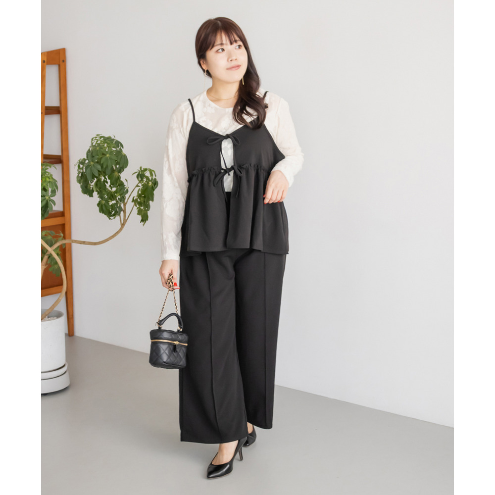 3Lサイズを着用してちょうどいいサイズ感でした。いつも通りのサイズ選びで問題なさそうです◎伸縮性のあるジョーゼット生地で窮屈感もなく楽な着心地でした。上品な生地感で、大人っぽくまとまりのある着こなしになります♪セットアイテムなので、コーデに困らずに着られるのが嬉しいです!インナー次第で雰囲気が変えられて、それぞれ単品使いもできるので1セットあると大活躍間違いなしです!
