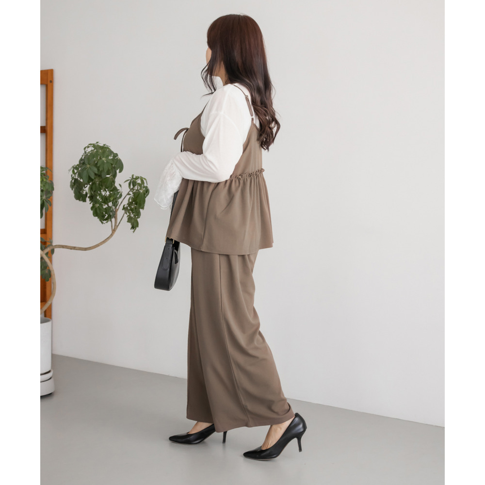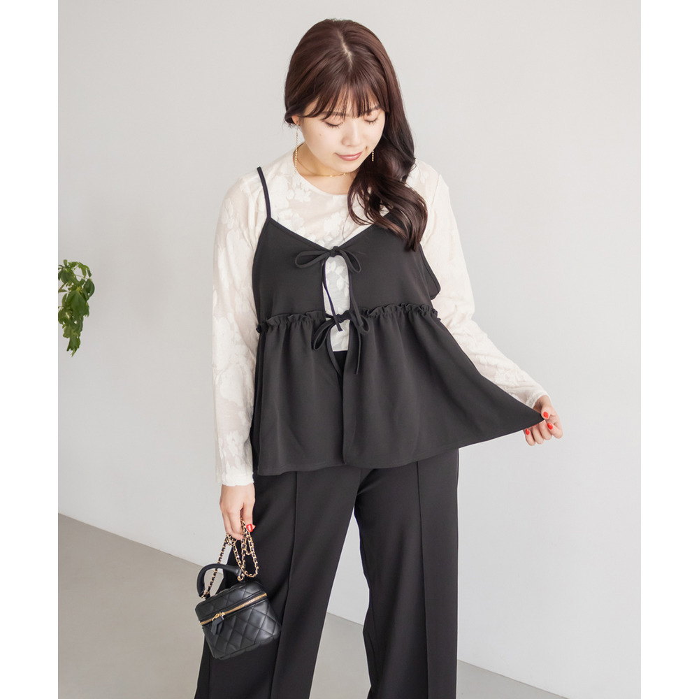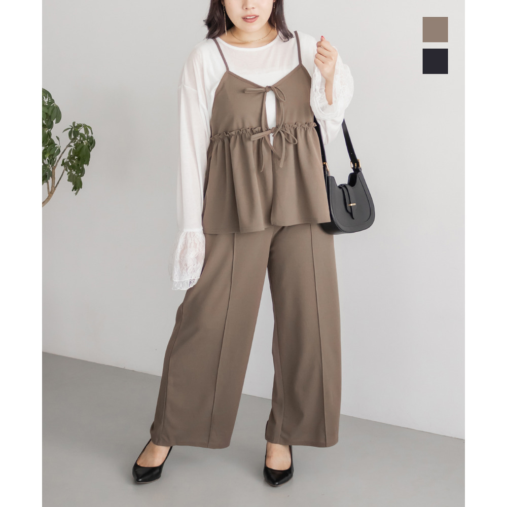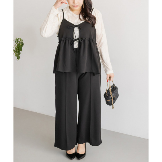 3Lサイズを着用してちょうどいいサイズ感でした。いつも通りのサイズ選びで問題なさそうです◎伸縮性のあるジョーゼット生地で窮屈感もなく楽な着心地でした。上品な生地感で、大人っぽくまとまりのある着こなしになります♪セットアイテムなので、コーデに困らずに着られるのが嬉しいです!インナー次第で雰囲気が変えられて、それぞれ単品使いもできるので1セットあると大活躍間違いなしです!