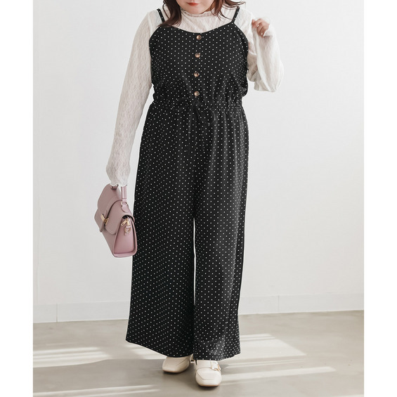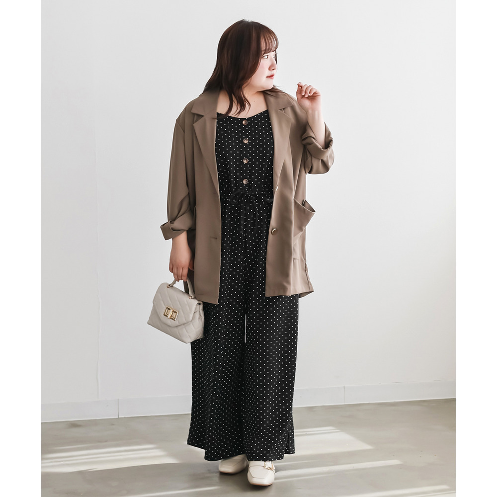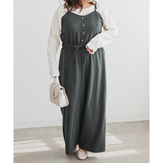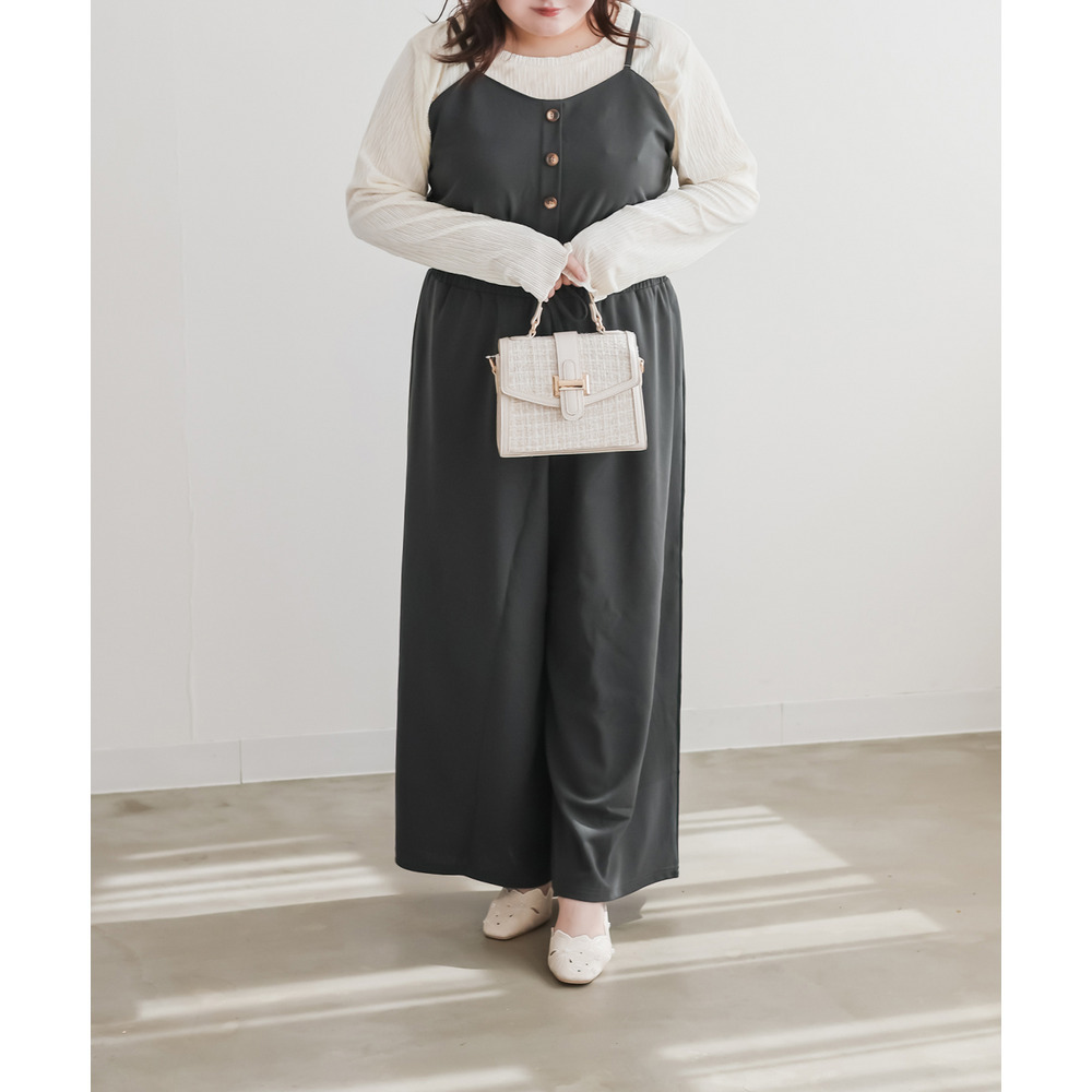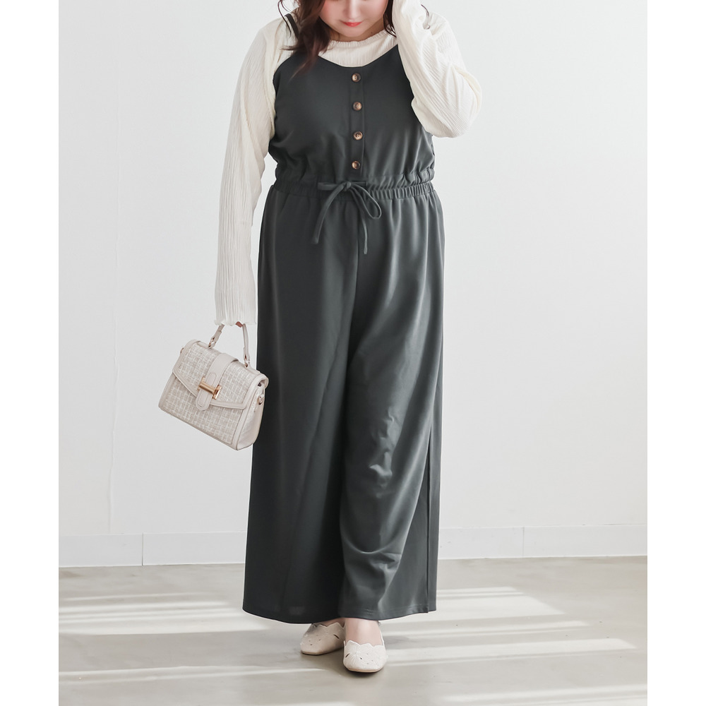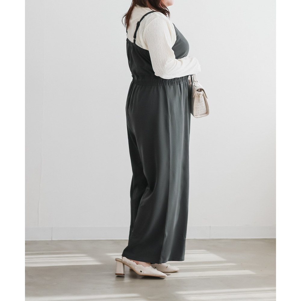 3Lサイズを着用して、ゆとりのあるサイズ感でした。3Lのサイズ感です。とってもらくちんなのに、すっきり細見えできるサロペットです!インナー次第でオールシーズン着用できる着心地で着回しがたくさんできそう◎さらっと着こなして大人っぽくこなれ感のある雰囲気になれる1枚です。