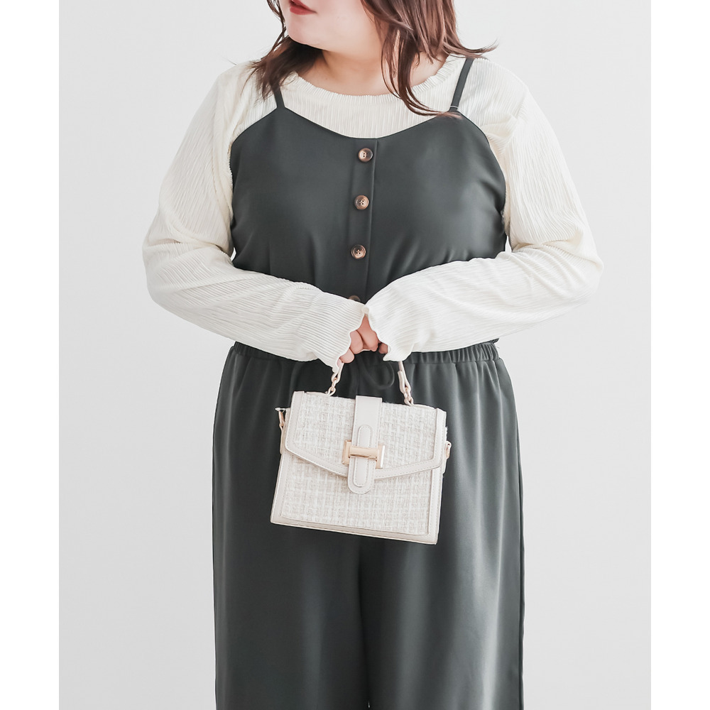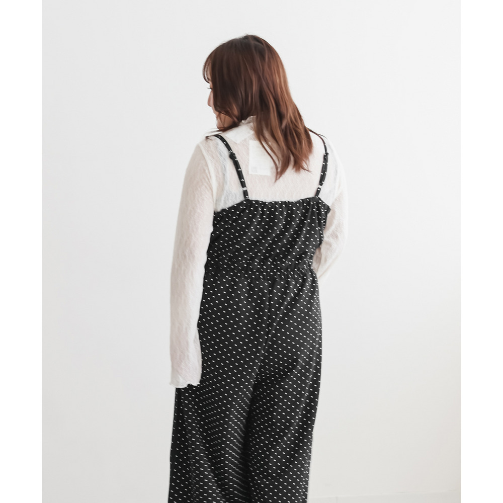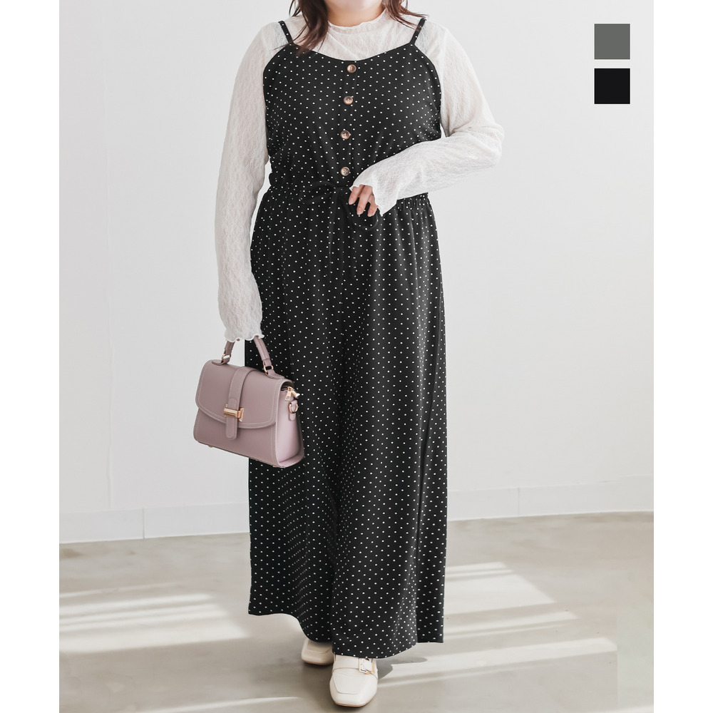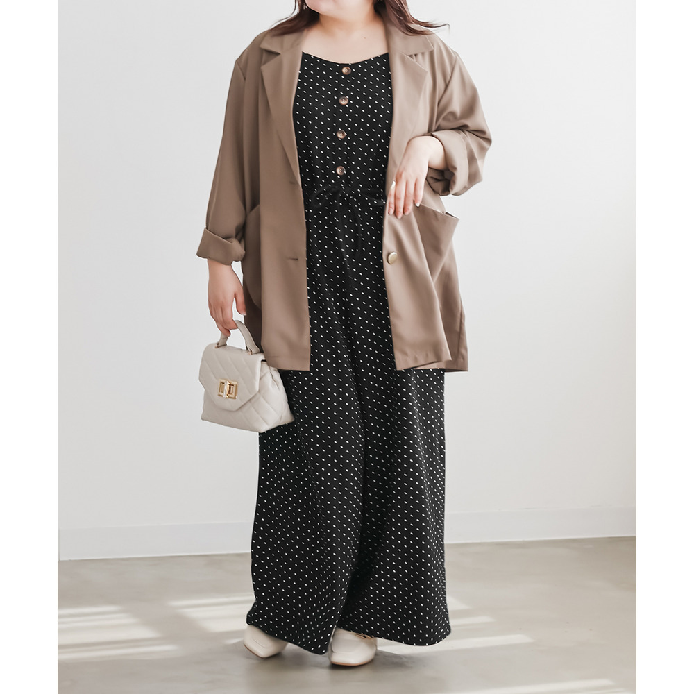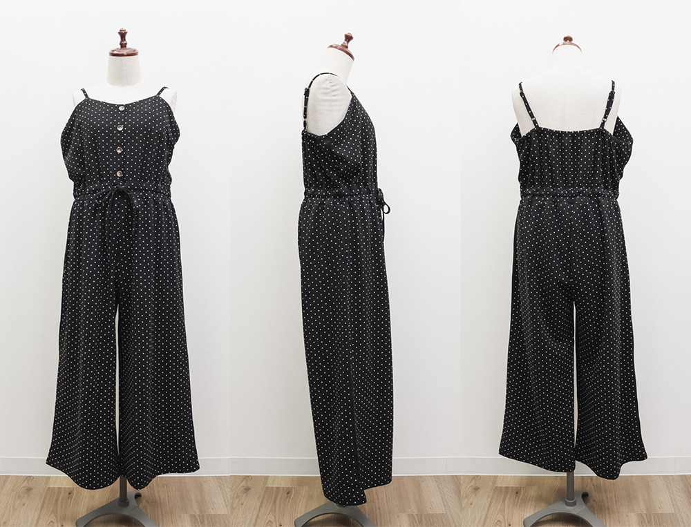 3Lサイズを着用して、ゆとりのあるサイズ感でした。3Lのサイズ感です。とってもらくちんなのに、すっきり細見えできるサロペットです!インナー次第でオールシーズン着用できる着心地で着回しがたくさんできそう◎さらっと着こなして大人っぽくこなれ感のある雰囲気になれる1枚です。