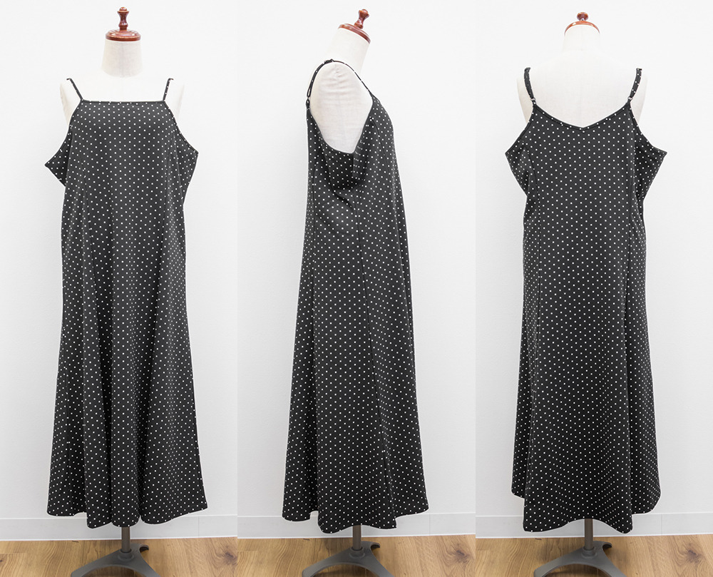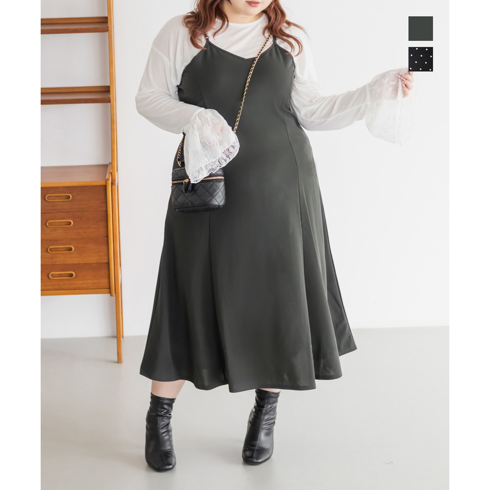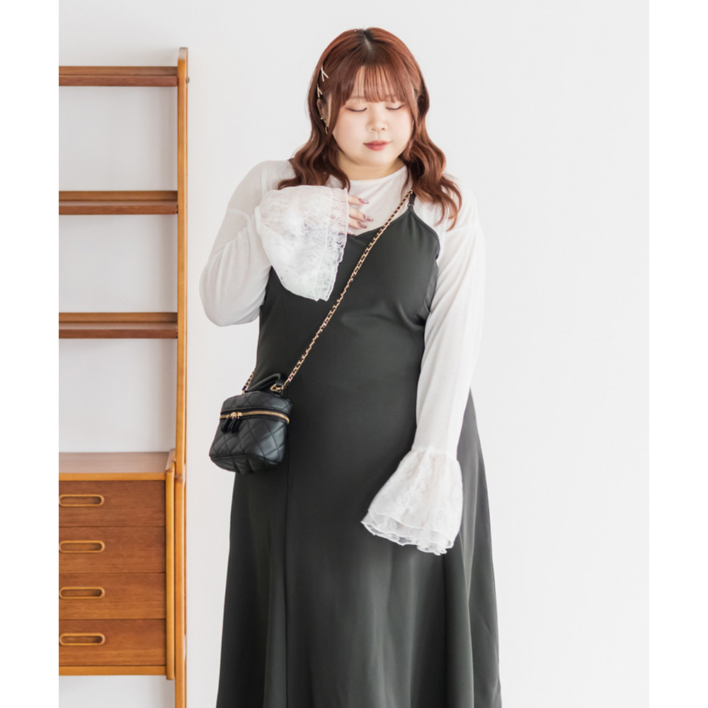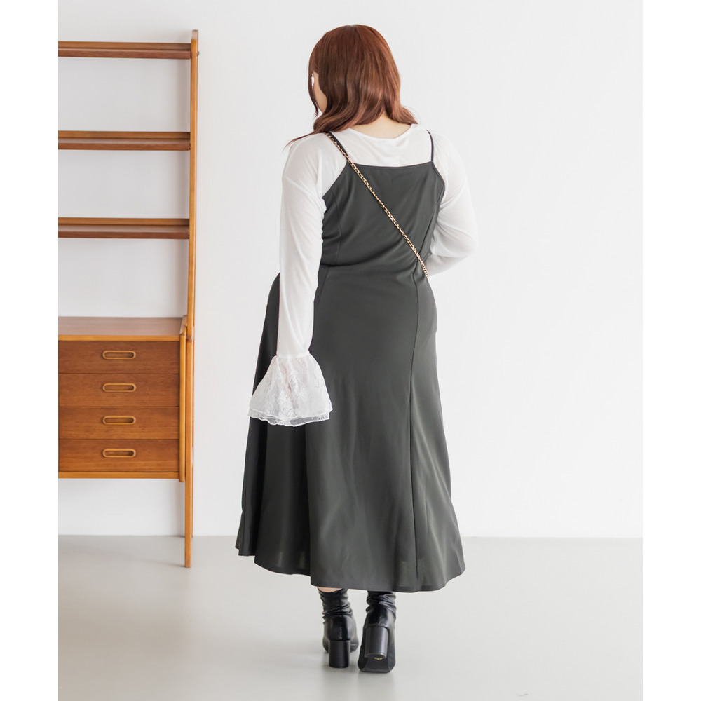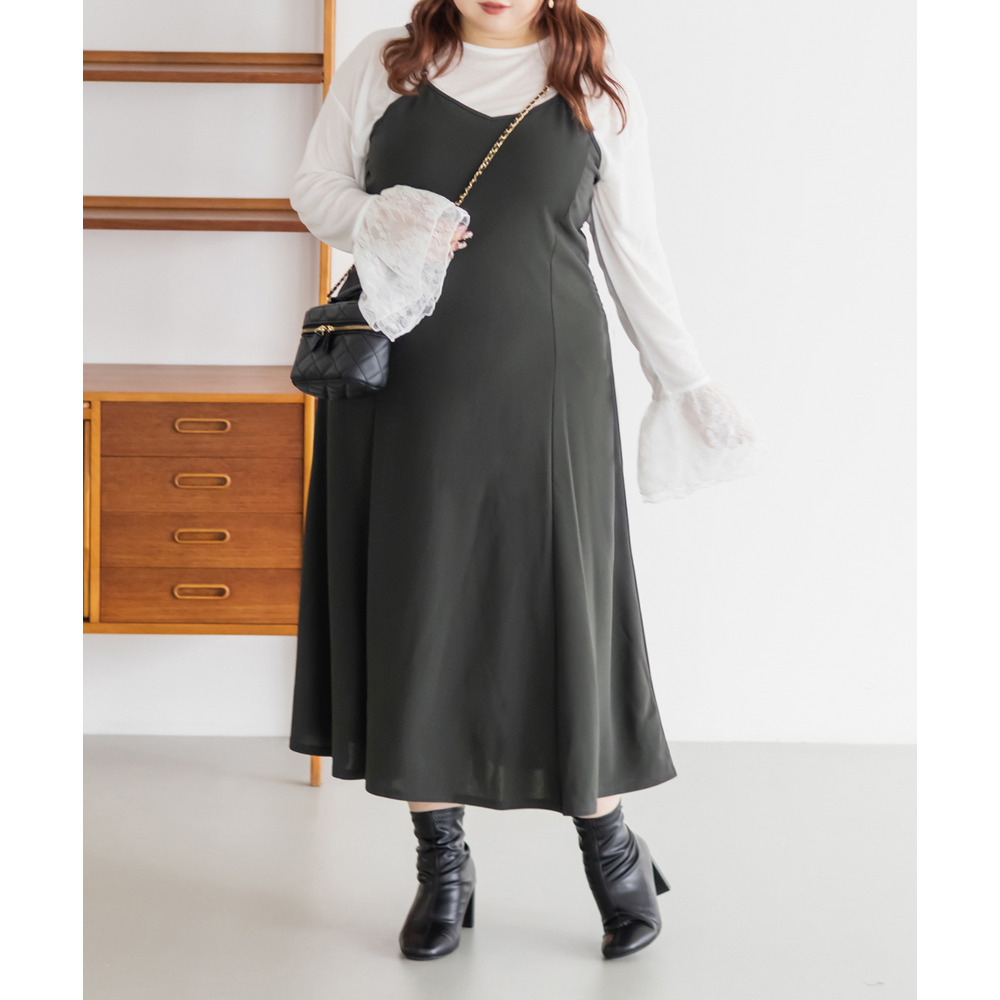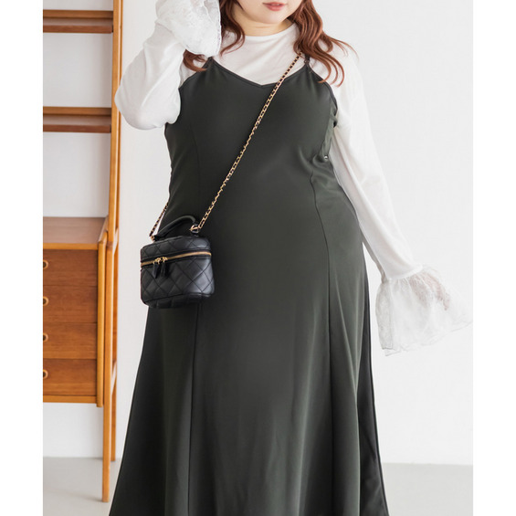 3Lサイズを着用してジャストサイズでした。少しタイトめなシルエットなのもあり、心配な方はサイズ確認もお勧めします!生地自体は伸びるので窮屈感なく着用出来ました◎スタイルアップして見えるシルエットで、シャツを羽織ったり、トップスを重ねるコーデも今っぽくておすすめ!インナー次第でオールシーズン使えて、色々なコーデを楽しめるキャミワンピは1枚持っておけば大活躍間違いなしです!前後2WAYなのと裾がマーメイドデザインなのも推しポイントです♪