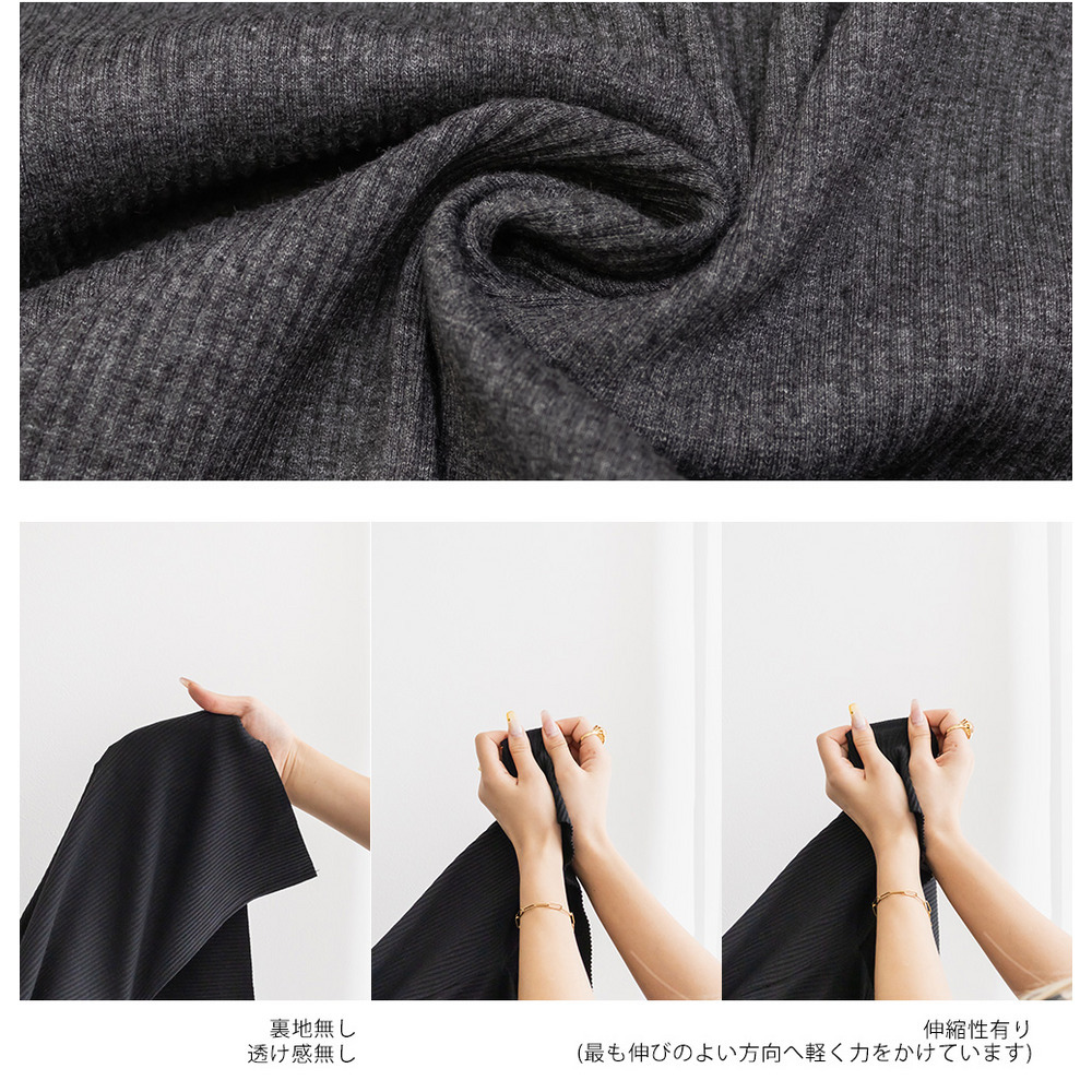 素材 | ■素材 【表地】ポリエステル63%、綿35%、ポリウレタン2%、【裏地】ポリエステル100% ■裏地・透け感・伸縮性 裏地有り、透け感無し、伸縮性有り ■ポケット 有り ■生地感 伸縮性があり程よくしっかりとしたリブ仕様のカットソー素材です。 ※伸縮性のある柔らかな裏地付き |
