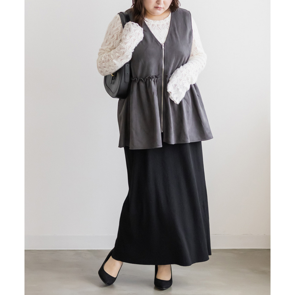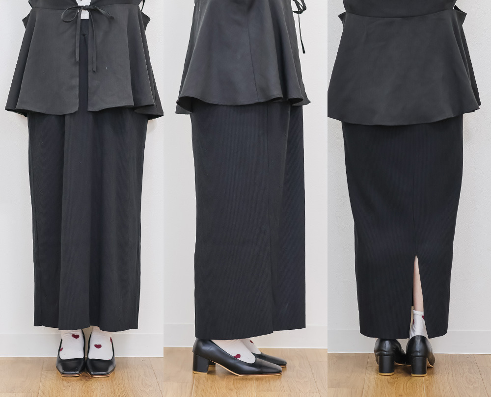 3Lサイズを着用しました。着用感はちょうどいいです。リブ素材の程よいフィット感がありながらも、縦ラインが強調されるのですっきり見えするシルエットです。ストレッチが効いていて動きやすく、長時間着てもラクなのが嬉しいポイント◎ ロング丈で大人っぽく着こなせるので、カジュアルからきれいめまで幅広いコーデにマッチします。オーバーサイズのトップスと合わせてリラクシーに着ても、コンパクトなトップスをインしてスタイルアップしても楽しめる万能スカートです。 |