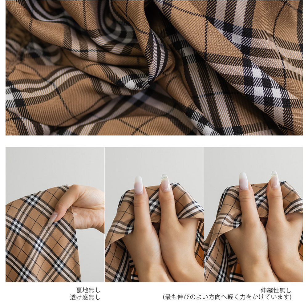 素材 ■素材 ポリエステル95%、ポリウレタン5% ■裏地・透け感・伸縮性 裏地無し、透け感無し、伸縮性無し ■ポケット 有り ■生地感 程よく薄手のさらっとした素材です。