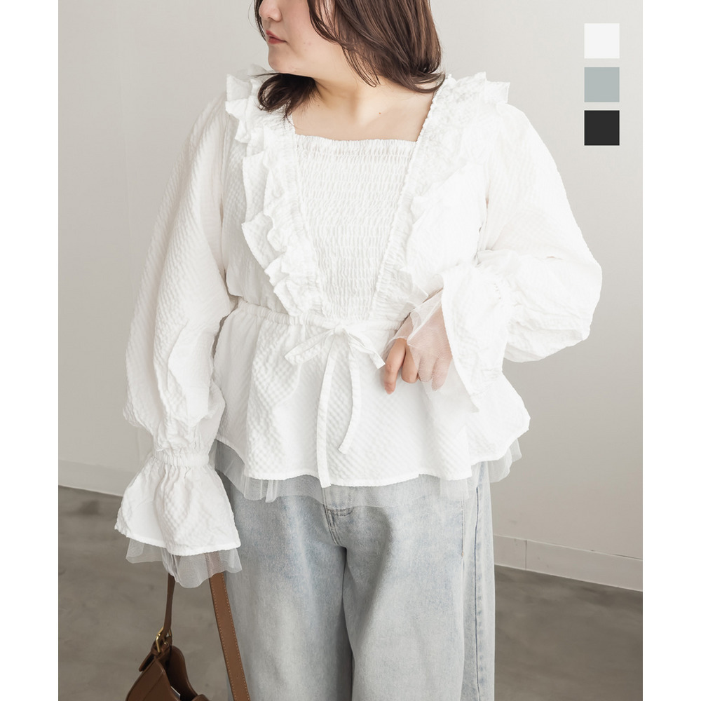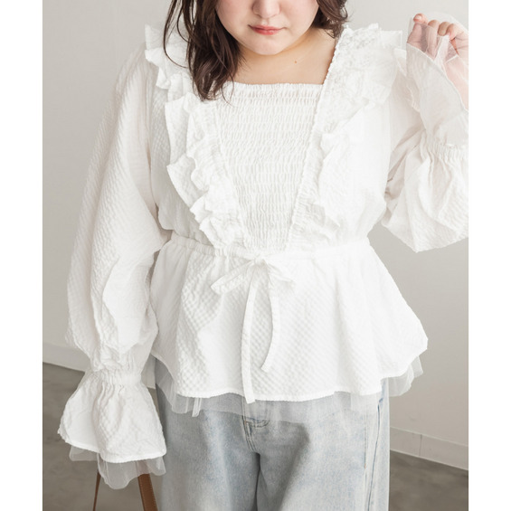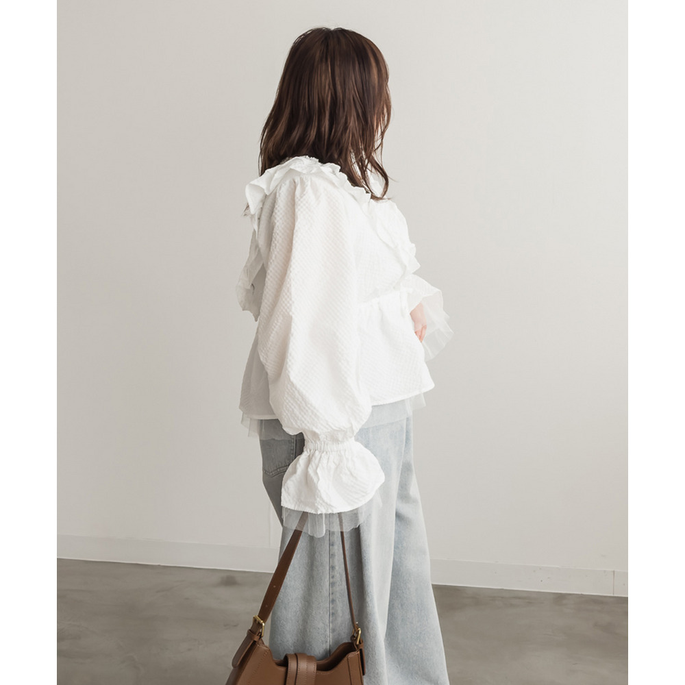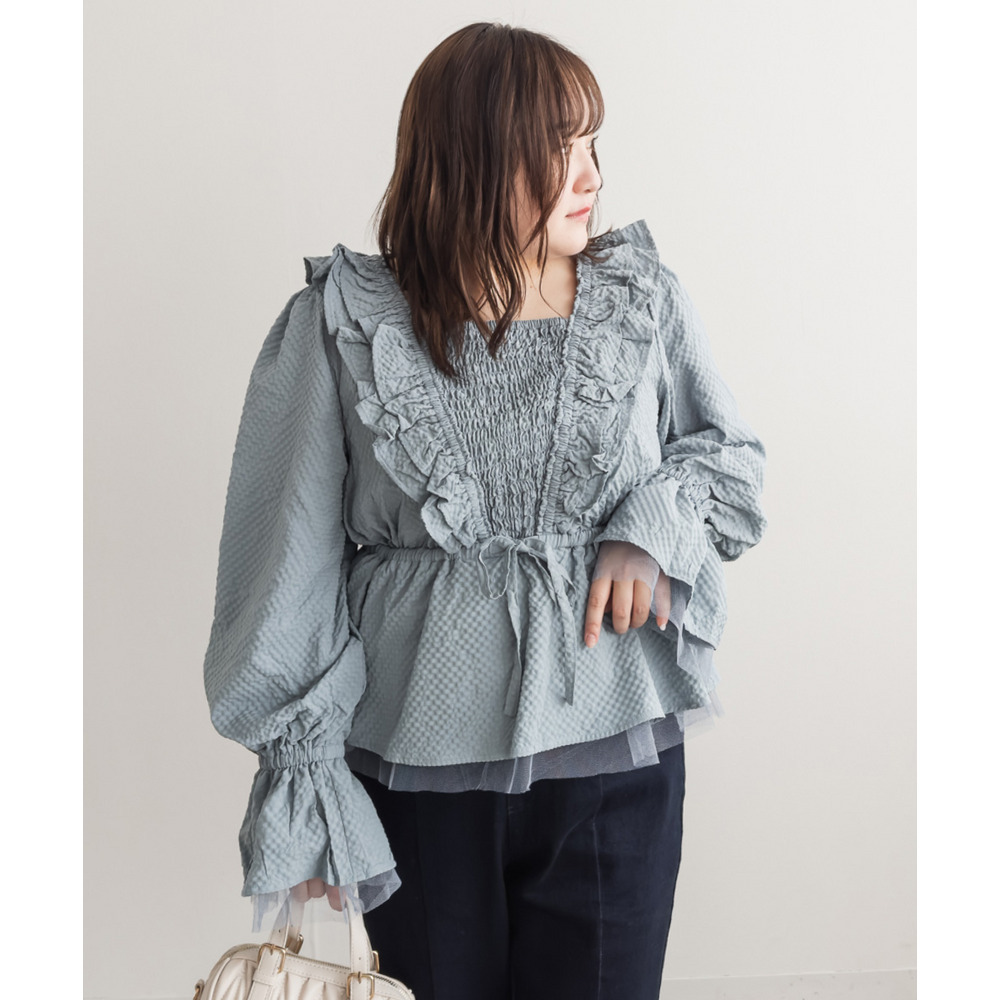 CLETTEオリジナルフリルデザインペプラムブラウス