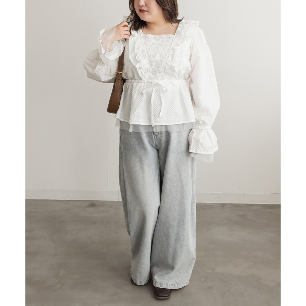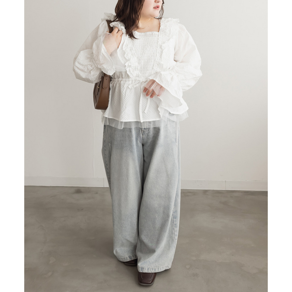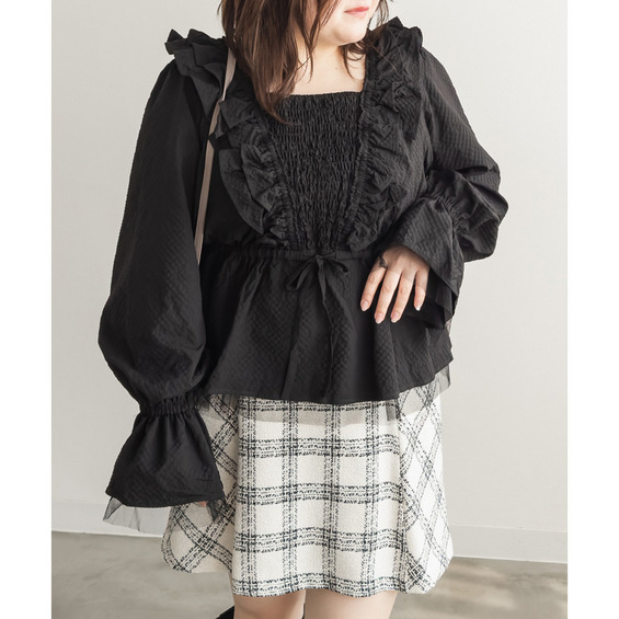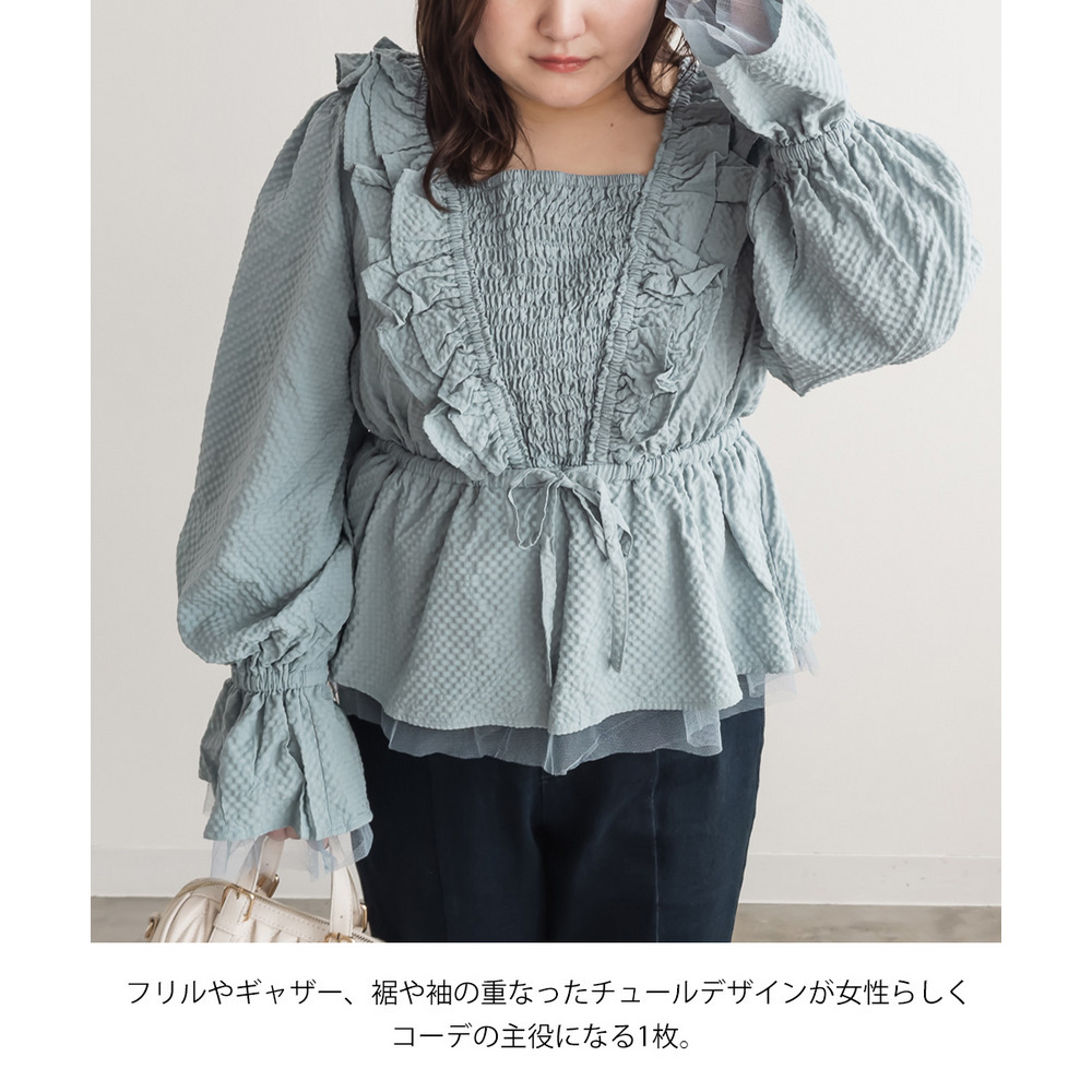 CLETTEオリジナルフリルデザインペプラムブラウス