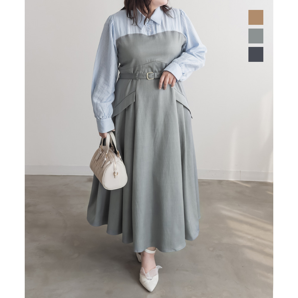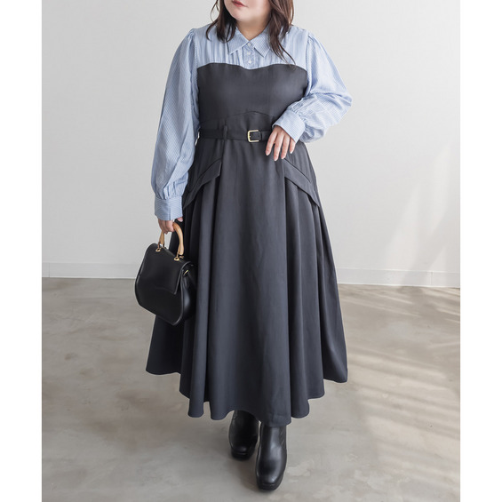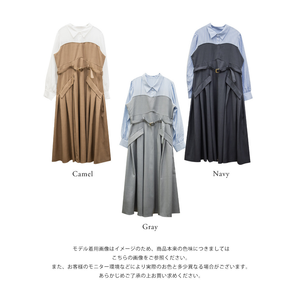 CLETTEオリジナルシャツドッキングベルト付きワンピース
