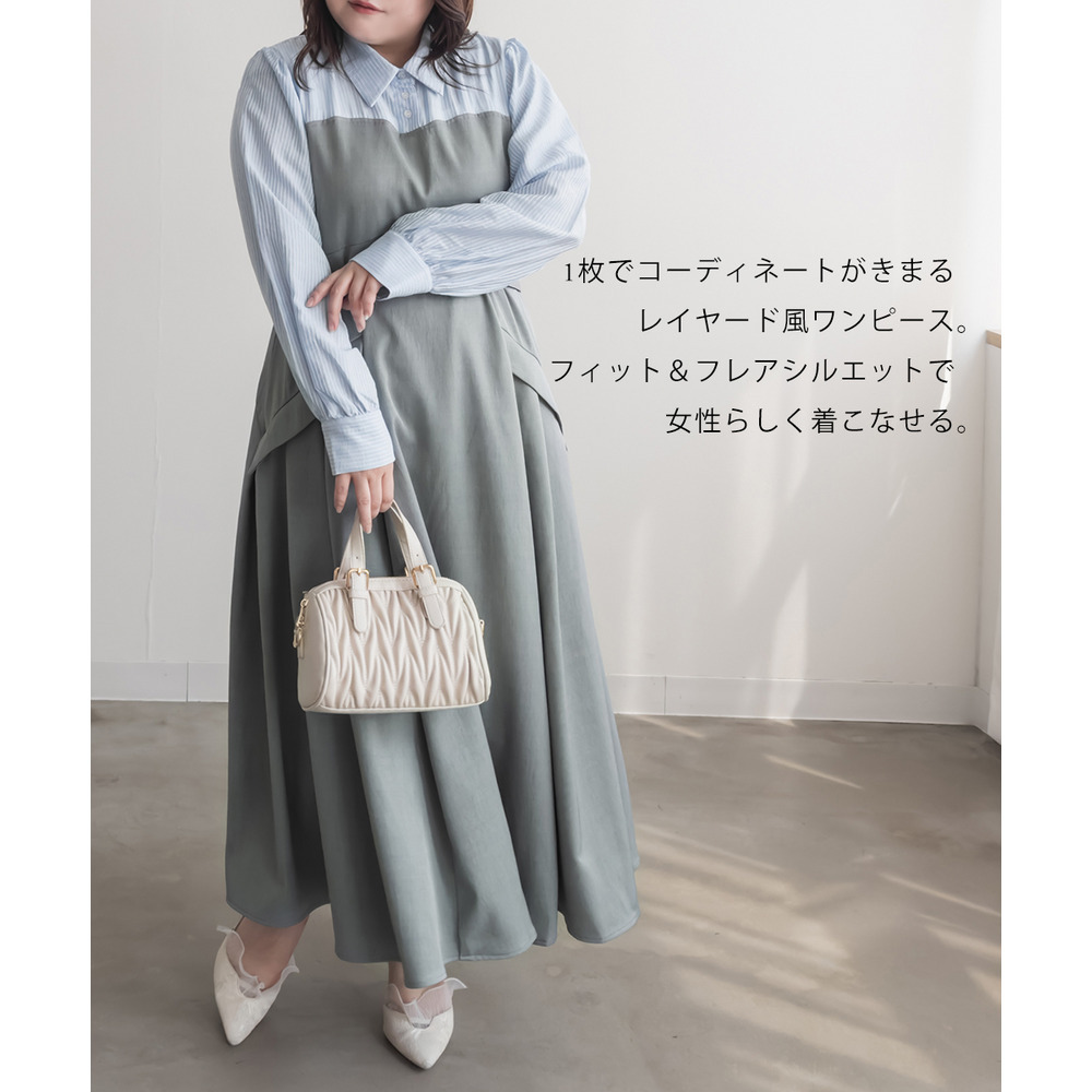 LLサイズを着用しましたが、ちょうどいいサイズ感でした。シャツとワンピースをレイヤードしたようなデザインで、一枚でコーデが完成するおしゃれ感が魅力です!ウエストベルト付きでシルエットをきゅっと引き締めてくれるので、スタイルアップ効果も◎窮屈感がなく動きやすく、きれいめに着こなせるアイテムです。オフィスやお出かけにもぴったりな着映えワンピースです♪
