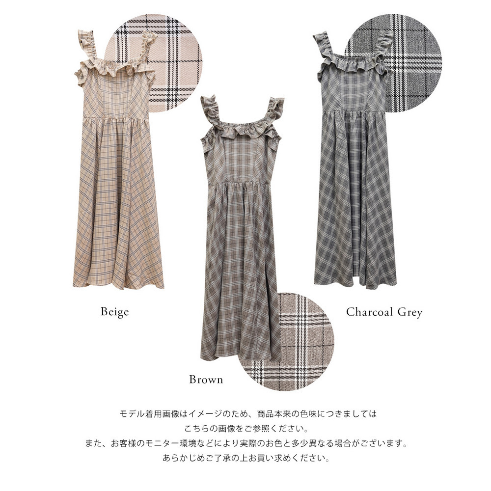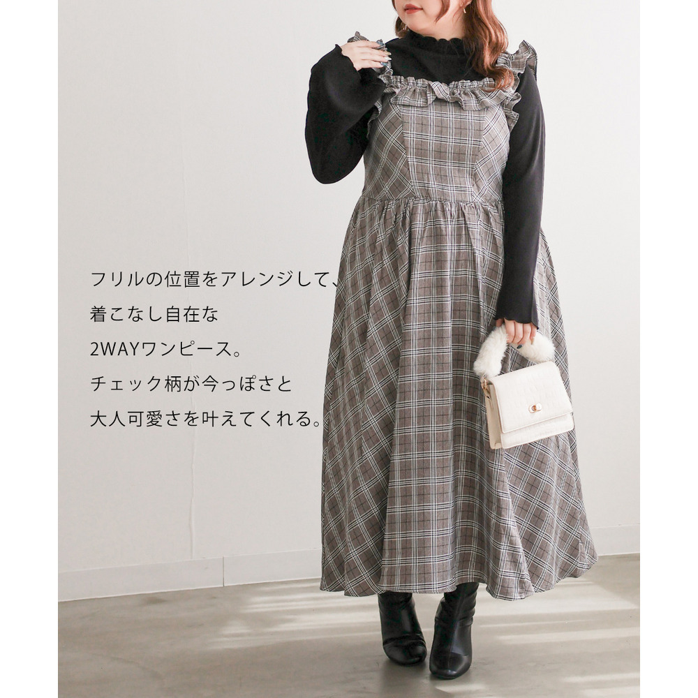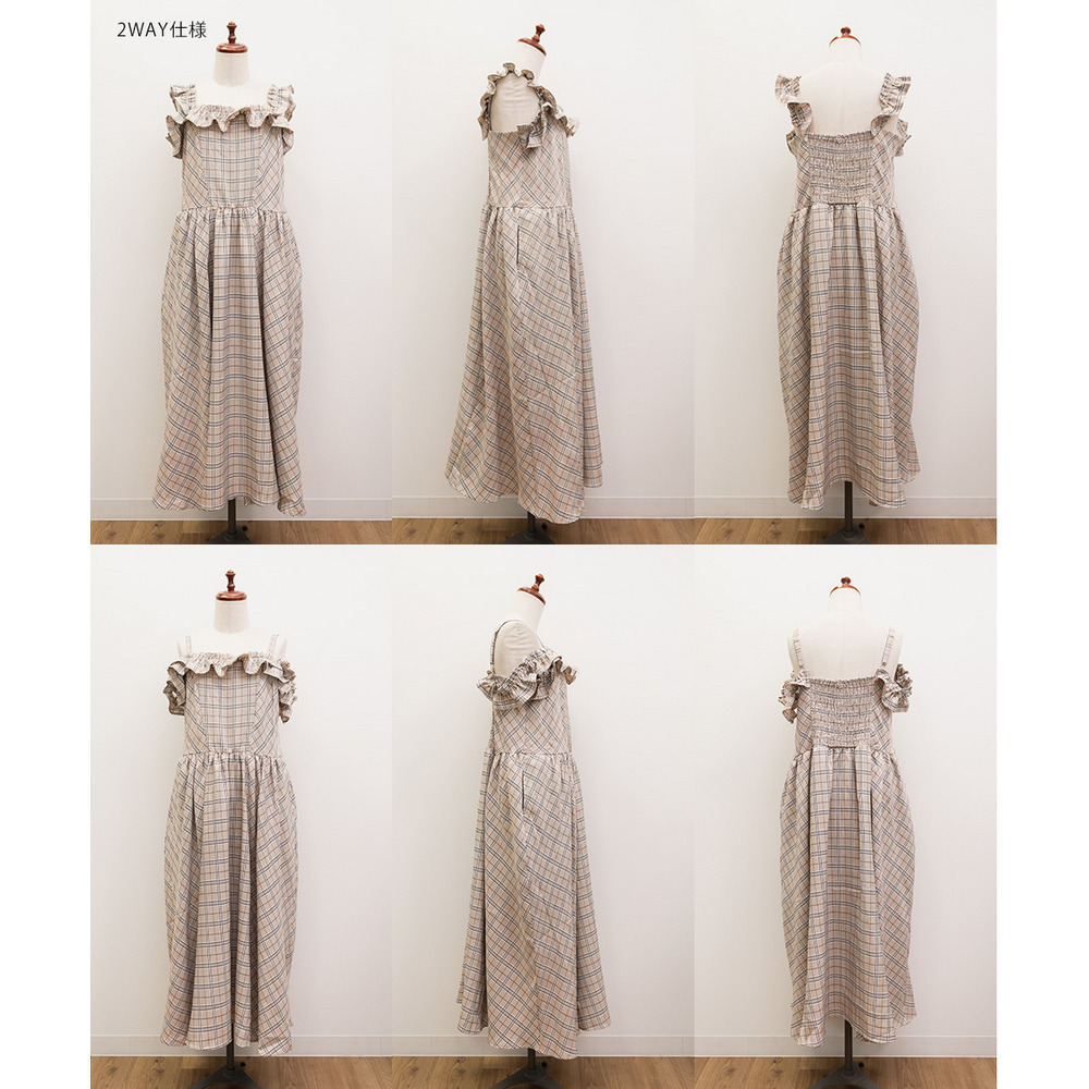 CLETTEオリジナル2WAYフリルチェック柄ワンピース