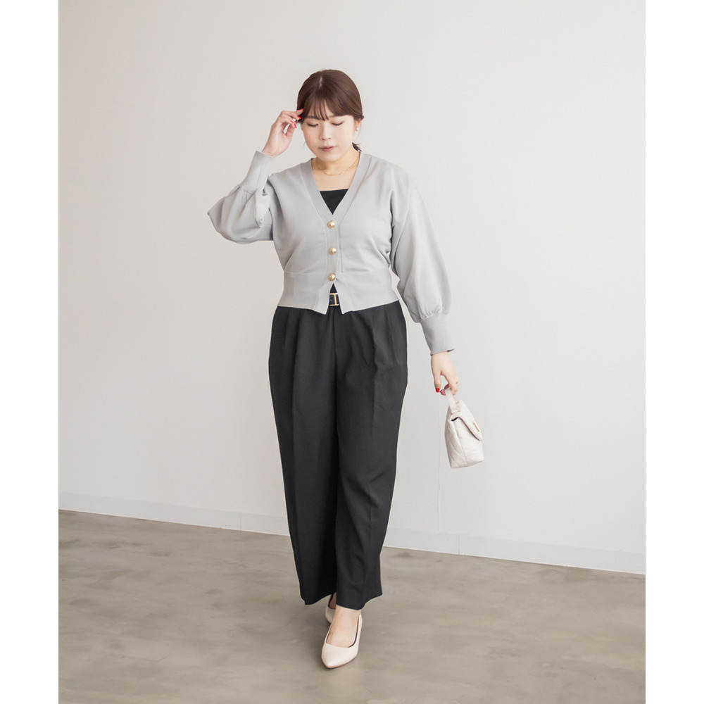 3Lサイズを着用して程よくゆとりのあるサイズ感でした。いつも通りのサイズ選びで問題なさそうです◎ゆとりがありつつすっきり見えるシルエットで、楽ちんな着心地です!どんなトップスとも相性良く着られて、コーデに困らないのが嬉しい。ウエスト部分も少し凝ったデザインでベルトを通しても今っぽく可愛いです。普段使いはもちろん、お仕事にもおすすめでオールシーズン使える便利な1枚です! |
