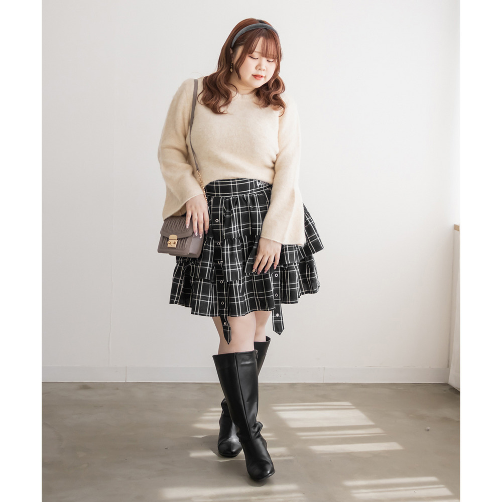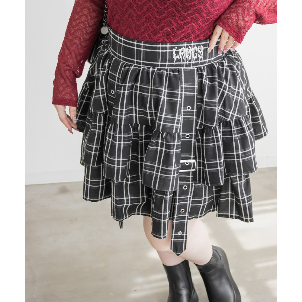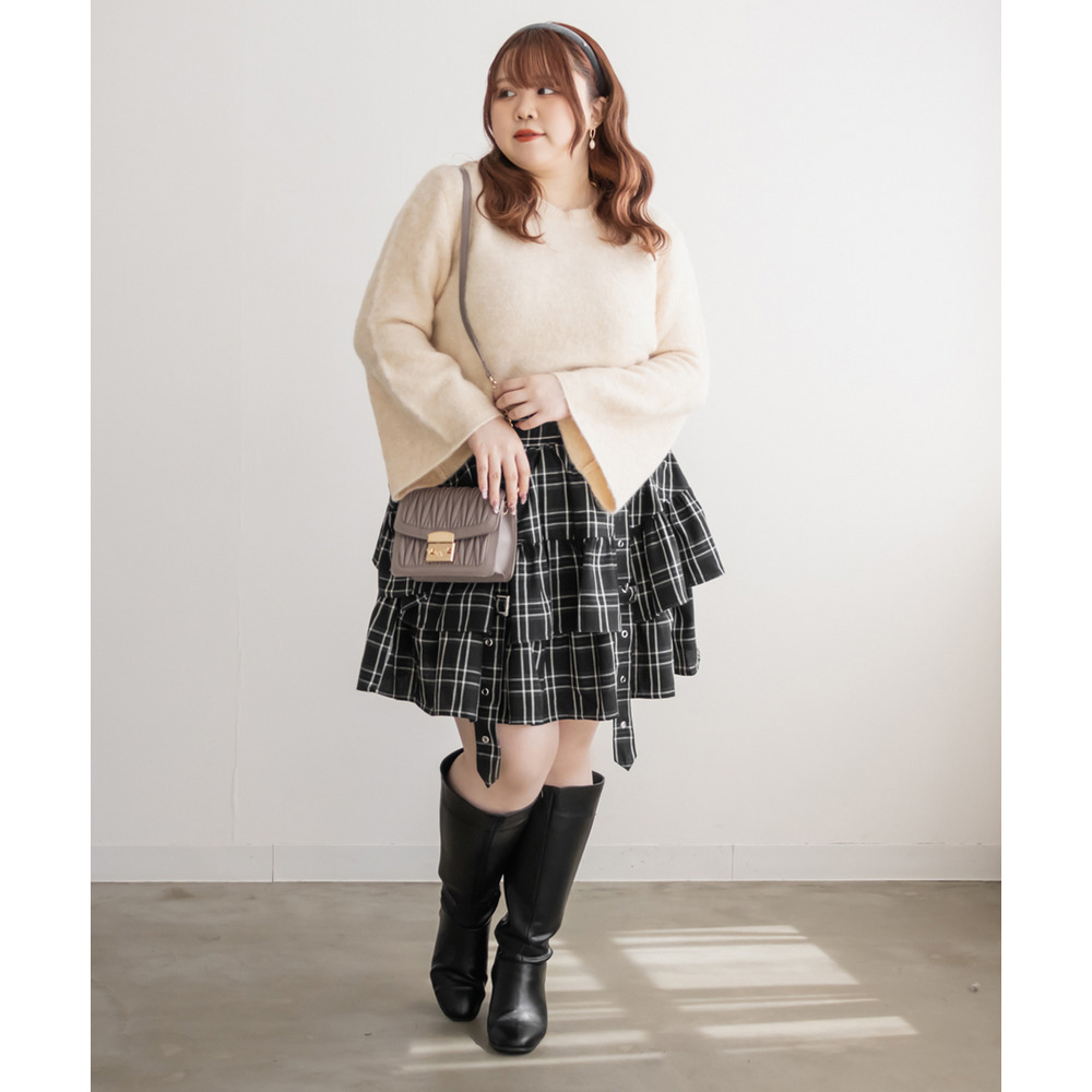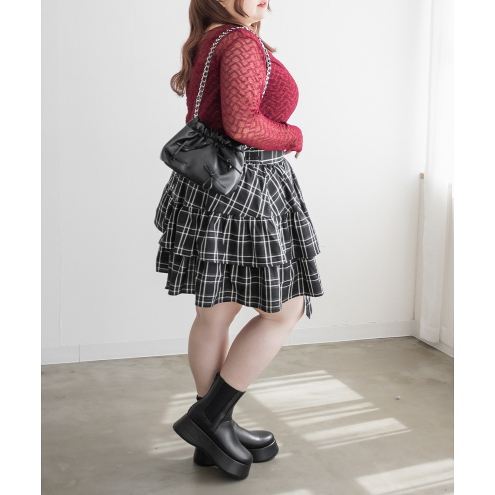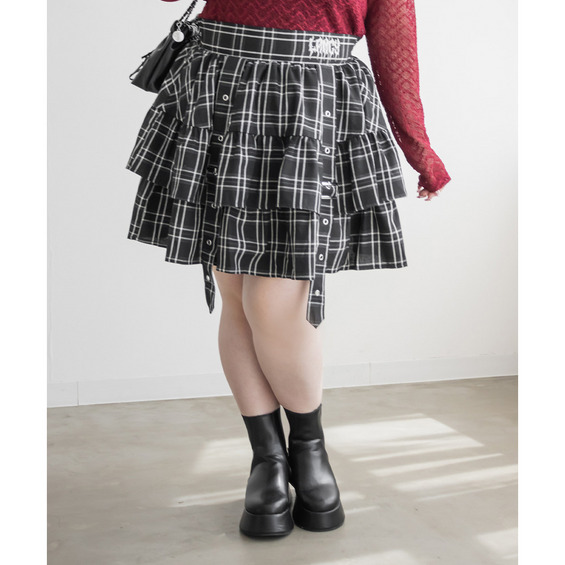 3Lサイズを着て、ちょうどよいサイズ感で着用出来ました◎後ろはゴムになっているので着脱もらくちんに出来ました!ティアードになっているので腰回りの肉感をすっきりカバーしてくれるのが嬉しい♪甘い雰囲気のミニスカートですが、ベルトデザインなど少し辛めの要素もあるので、ガーリー過ぎずに着こなせます!ブラウスやレーストップスと合わせて、ガーリーに仕上げたり、ギャルっぽいスタイリングもお勧めです!オールシーズン着まわせるスカートなので、たくさん着回ししたい1枚です! |