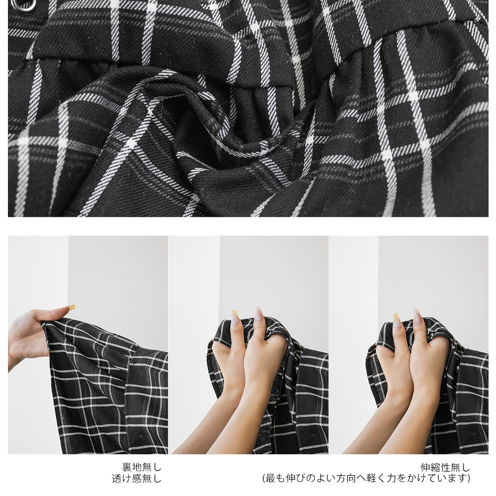 素材 | ■素材 【表地】ポリエステル69%、綿18%、レーヨン11%、アクリル1%、ナイロン1%、【裏地】ポリエステル100% ■裏地・透け感・伸縮性 裏地有り、透け感無し、伸縮性無し ■ポケット 無し ■生地感 程よくしっかりとしたチェック柄の素材です。 |