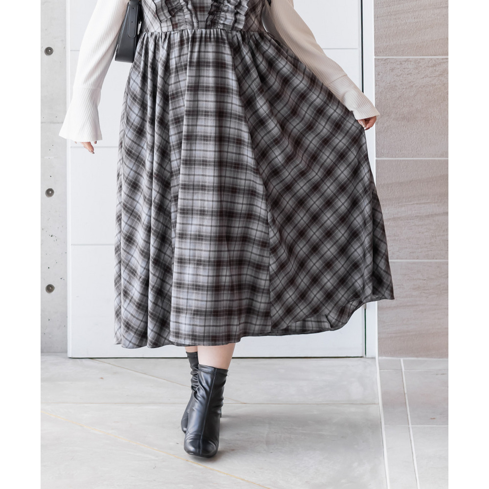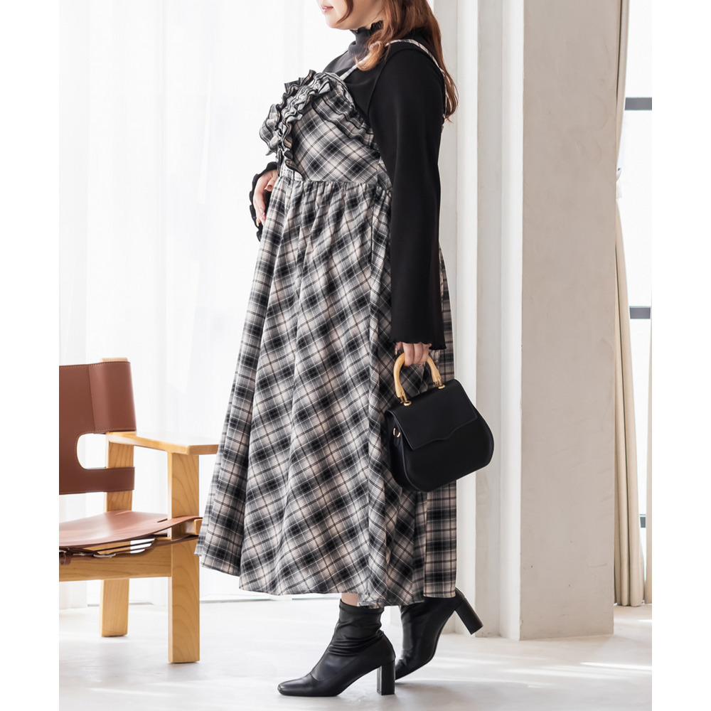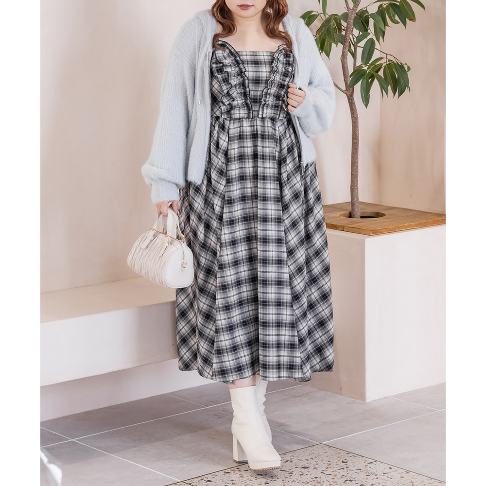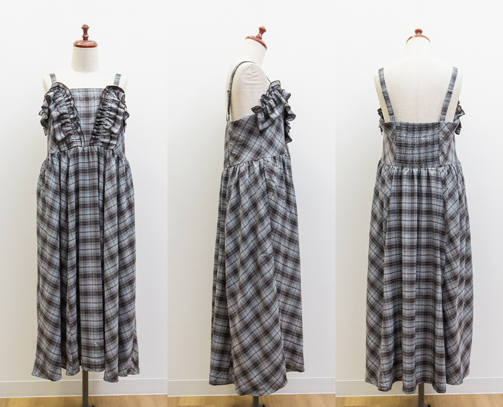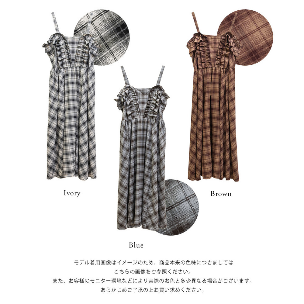 CLETTEオリジナルフリルデザインチェック柄キャミワンピース