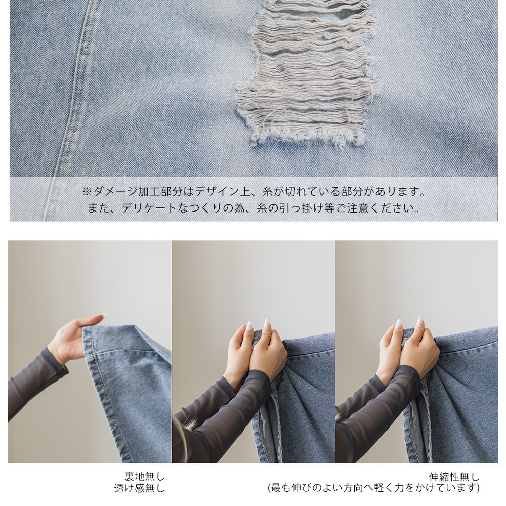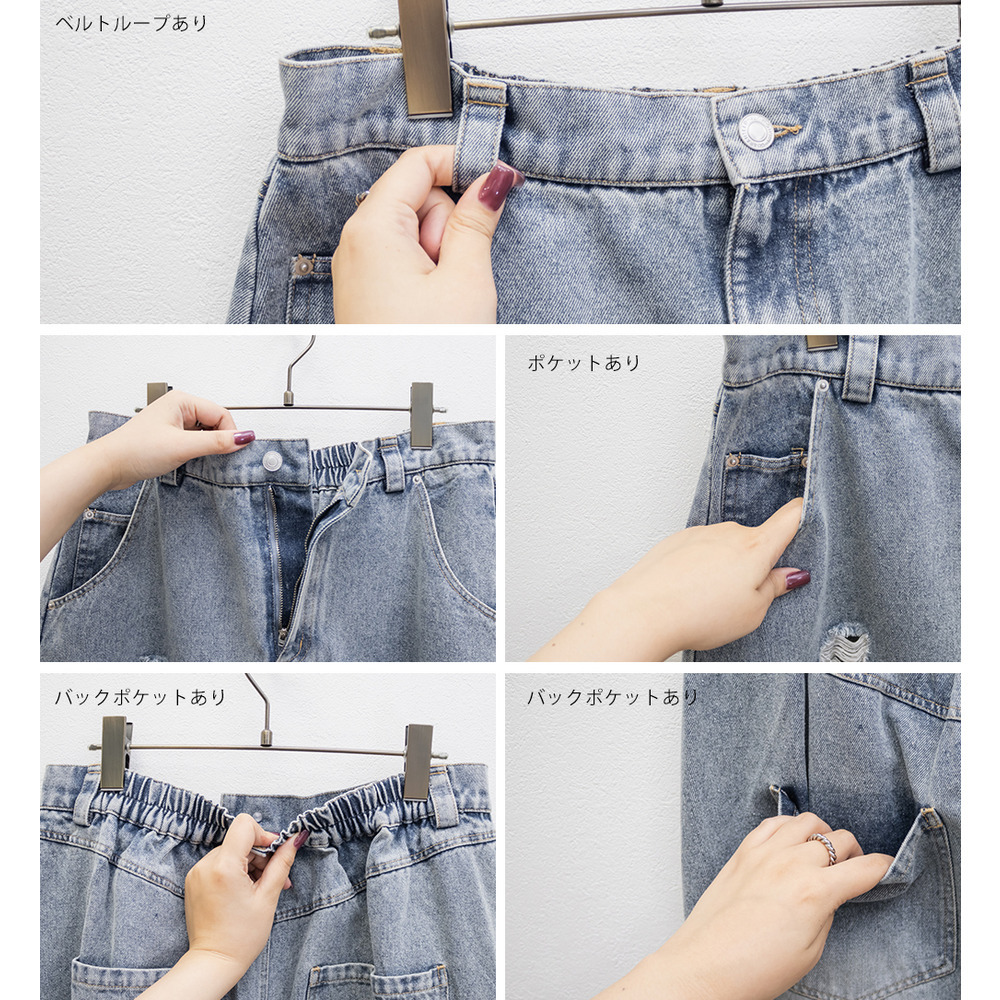 素材 | ■素材 綿80%、ポリエステル20% ■裏地・透け感・伸縮性 裏地無し、透け感無し、伸縮性無し ■ポケット 有り ■生地感 一般的なデニム素材です。 |
