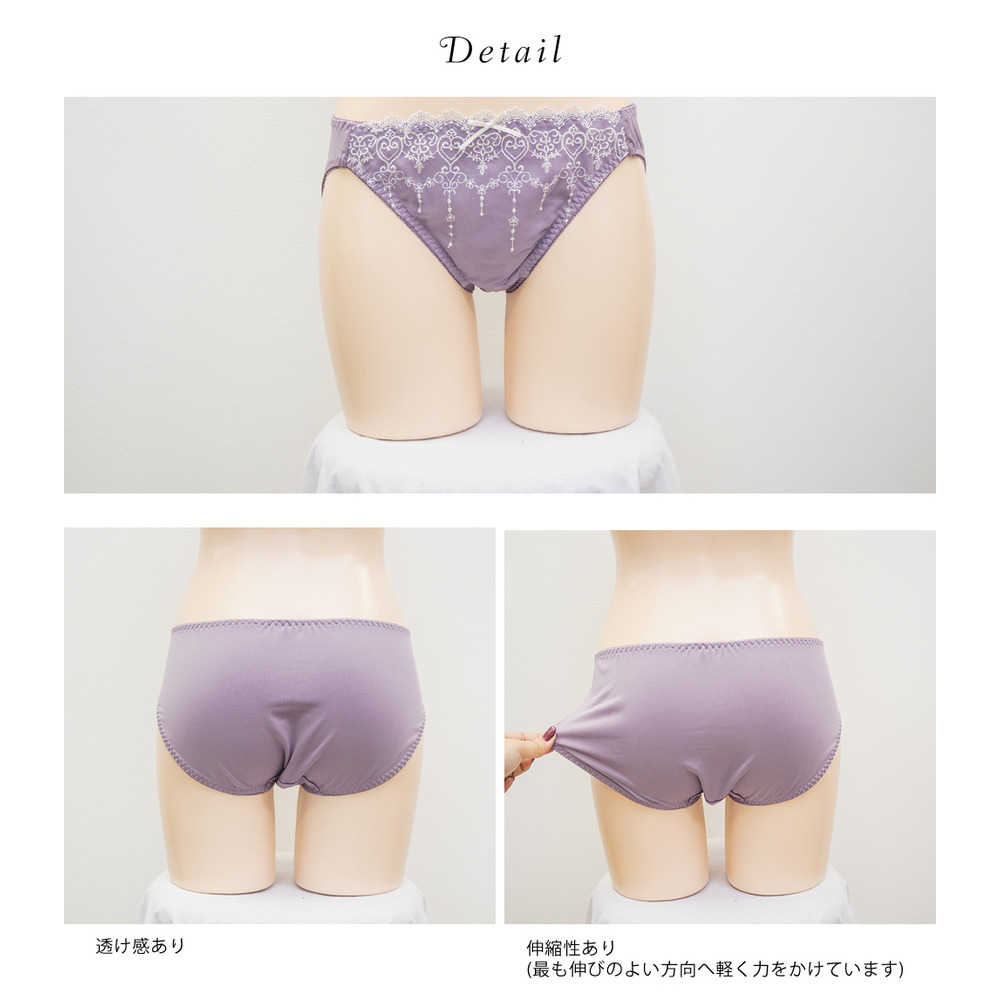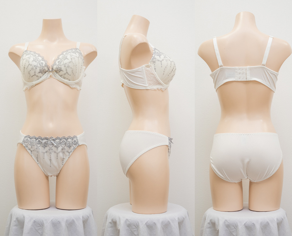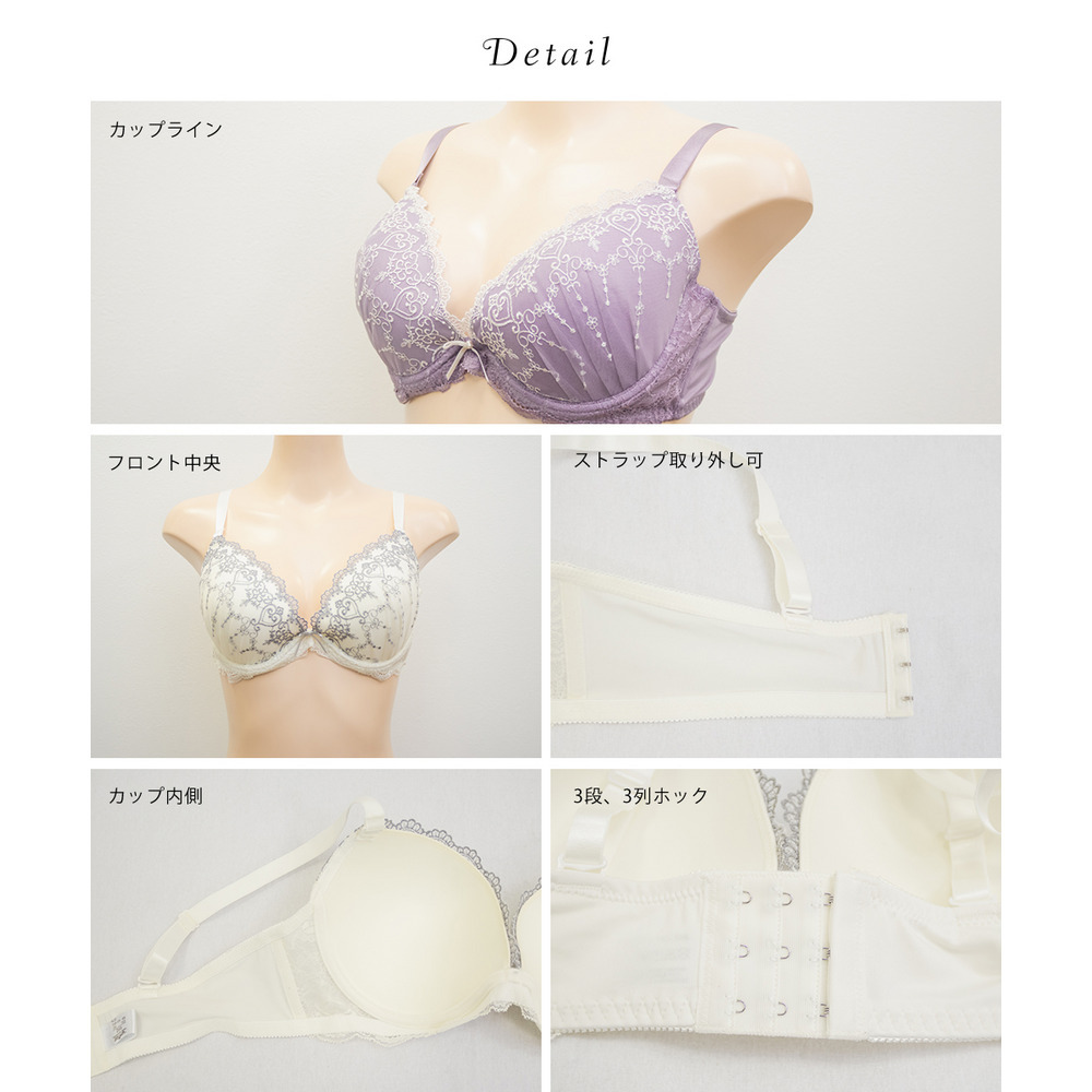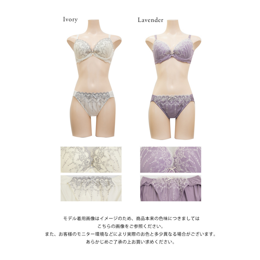 | 素材 | ■素材 【ブラジャー】ポリエステル、ナイロン、その他、【ショーツ】ポリエステル、ポリウレタン、その他 ■裏地・透け感・伸縮性 裏地無し、透け感有り、伸縮性有り ■その他 【カップタイプ】3/4カップ・モールドカップ(丸みを形成した厚みのあるカップです)、【ホックの数】3段3列、【パット付属】なし、【パットポケット】なし、【ストラップ取外し】可、【ワイヤー】あり、※タンブル乾燥禁止 |
