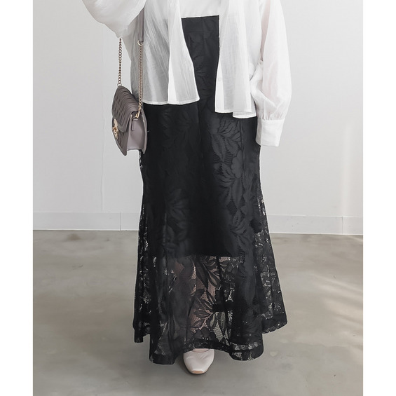 | 素材 | ■素材 【表側】ポリエステル100%、【裏側】ポリエステル100% ■裏地・透け感・伸縮性 裏地有り、透け感無し、伸縮性無し ■ポケット 無し ■生地感 程よくしっかりとしたレース素材です。 ※伸縮性のある柔らかな裏地付き |