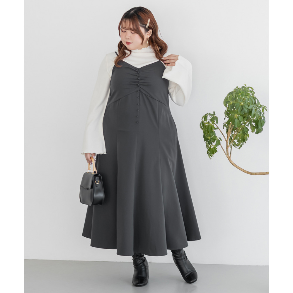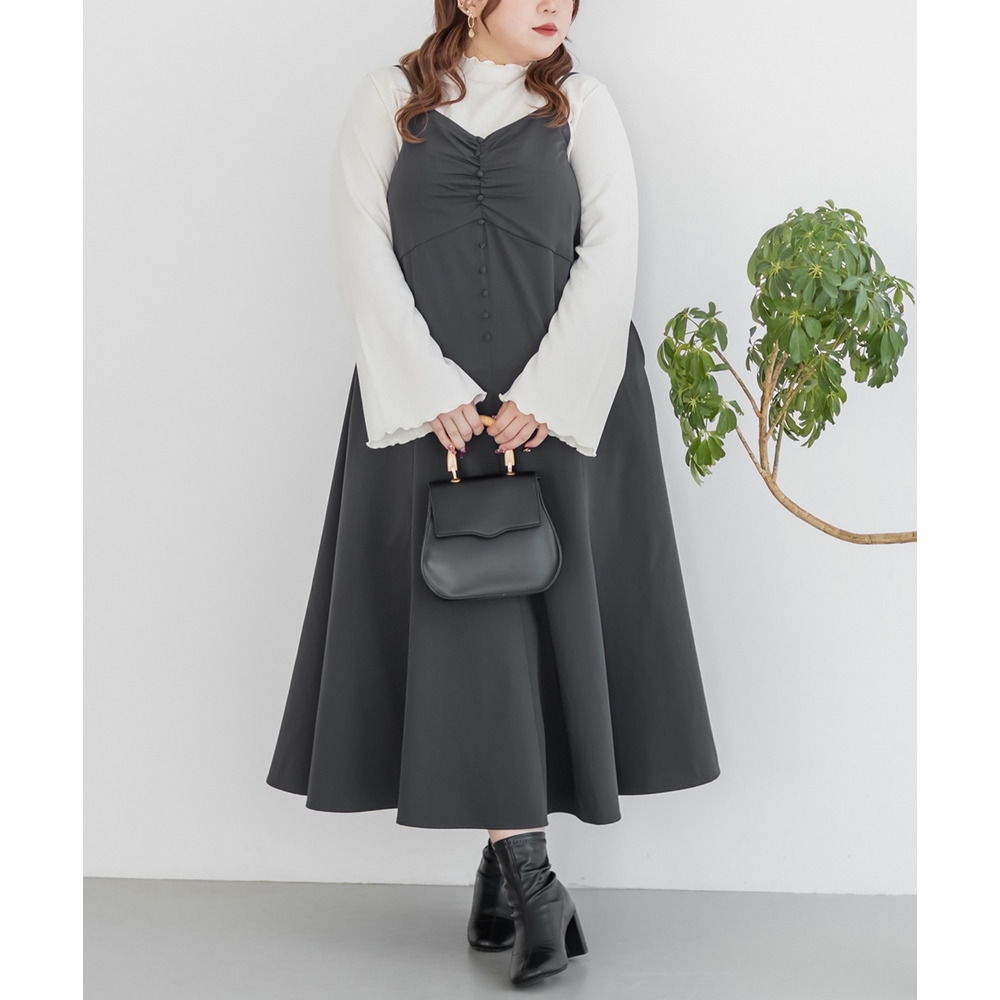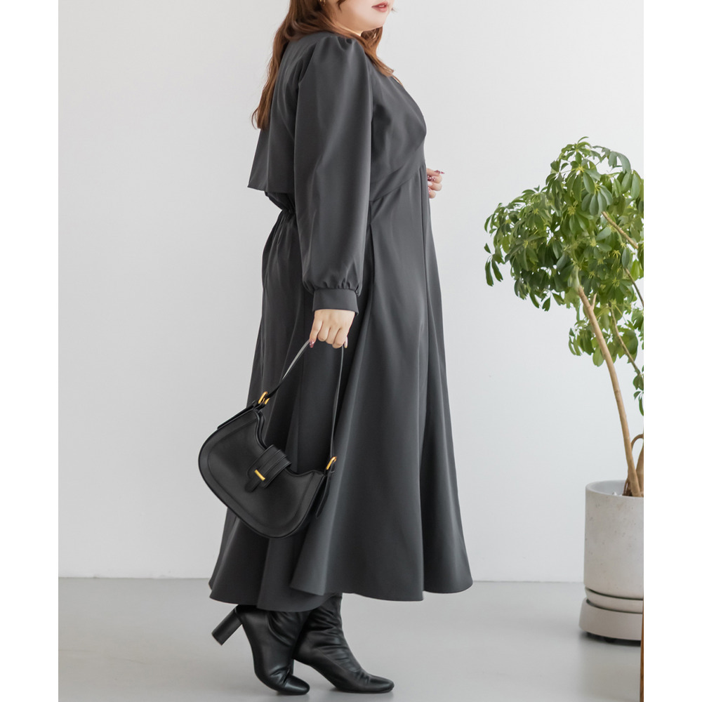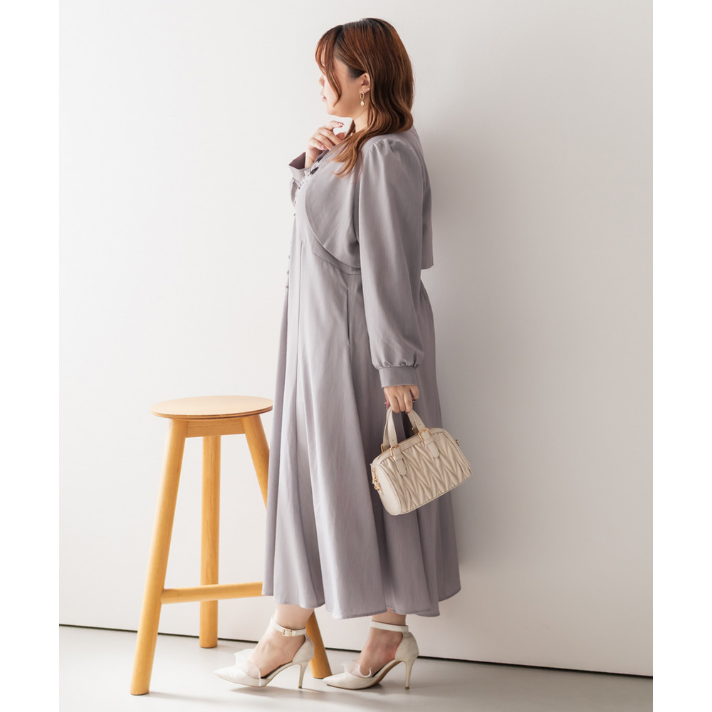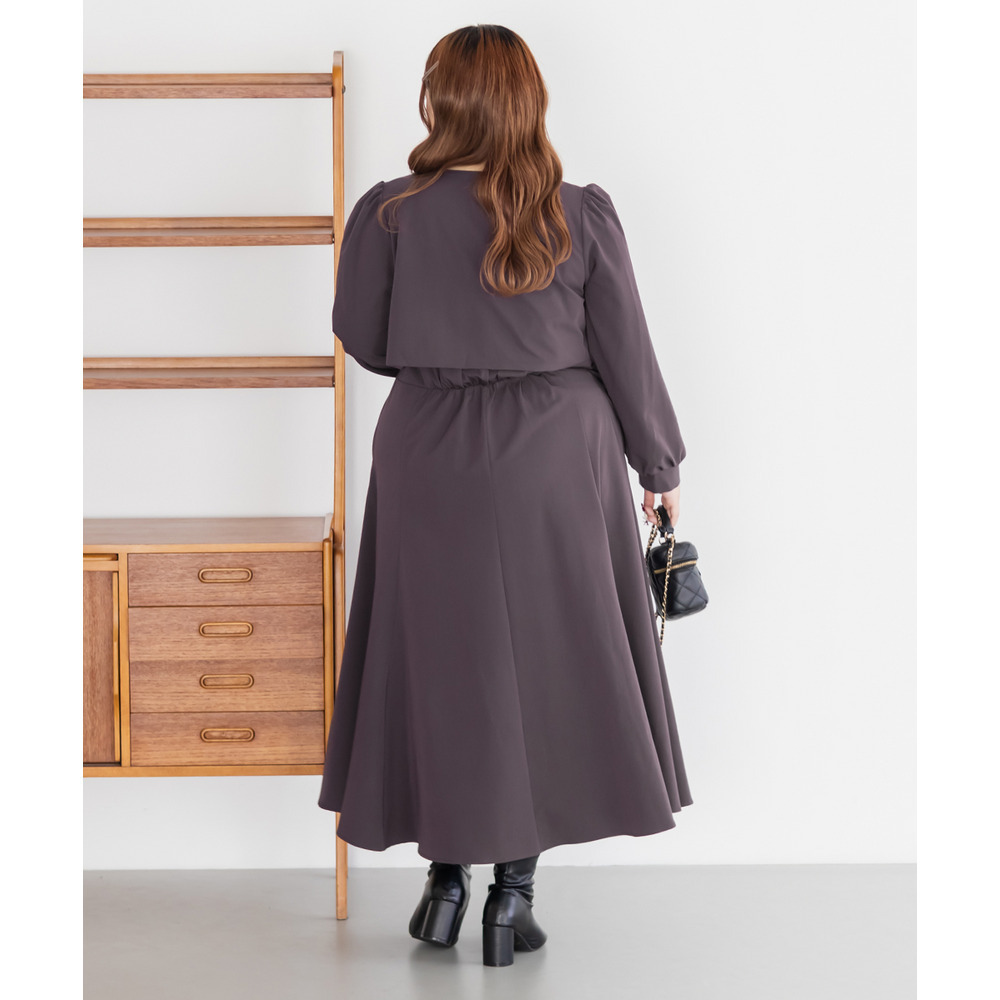 3Lサイズを着用していつも通りのサイズ選びで問題なさそうでした。ワンピースは後ろゴム仕様で窮屈感がなく、1日中ラクに着られます。ボレロのベルトデザインが顔回りにメリハリを出してくれて、シャープな印象でした。キャミワンピ・ボレロともに単品でも使いやすく、シーズンレスで活躍します♪ふんわりとした袖やフレアシルエットが女性らしく、スタイルアップ効果も抜群です◎お出かけやデート・特別なシーンにも着ていきたい映えアイテムです!