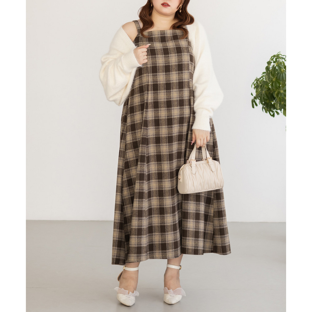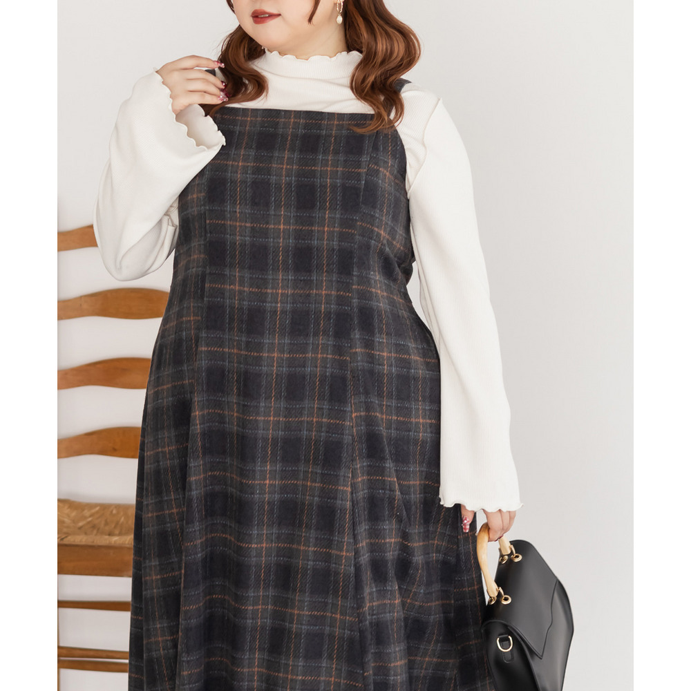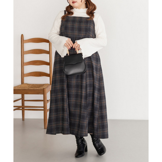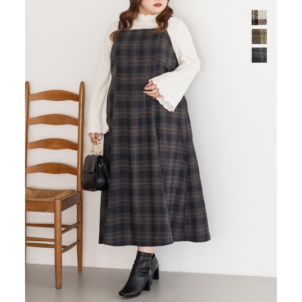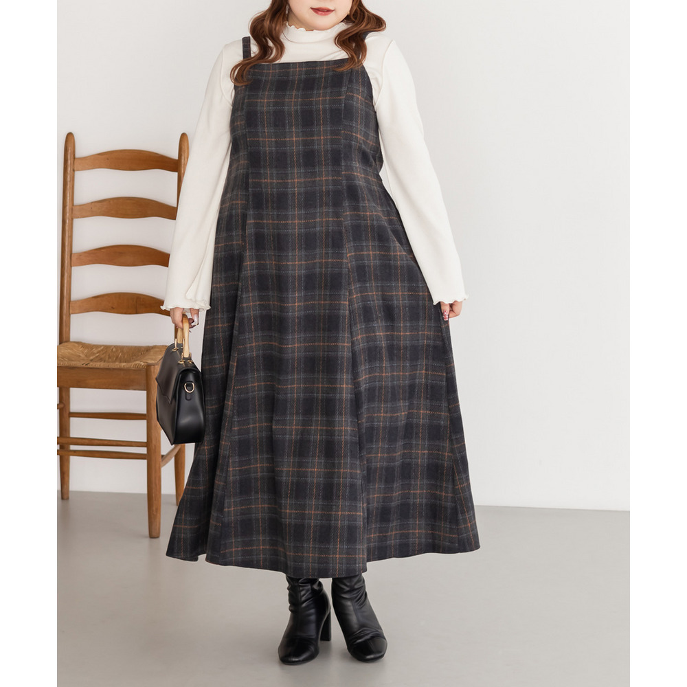 CLETTEオリジナルフェイクウールチェック柄ジャンスカワンピース