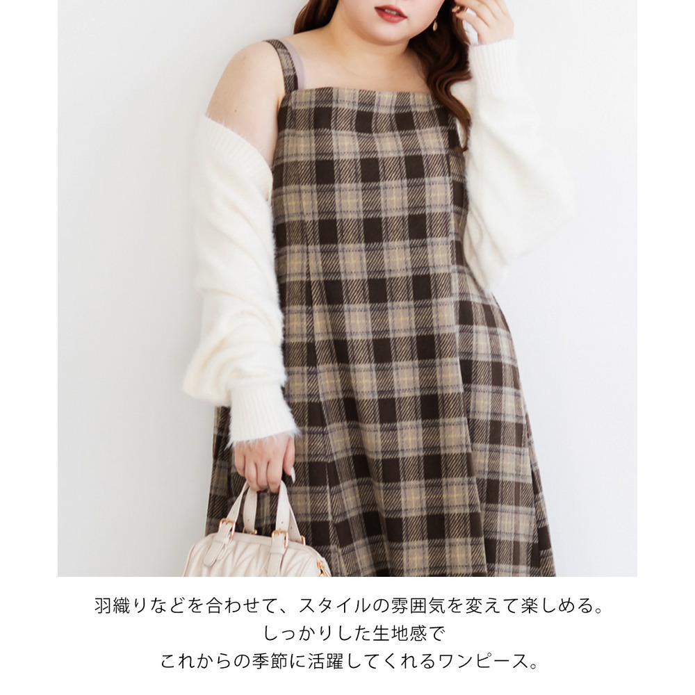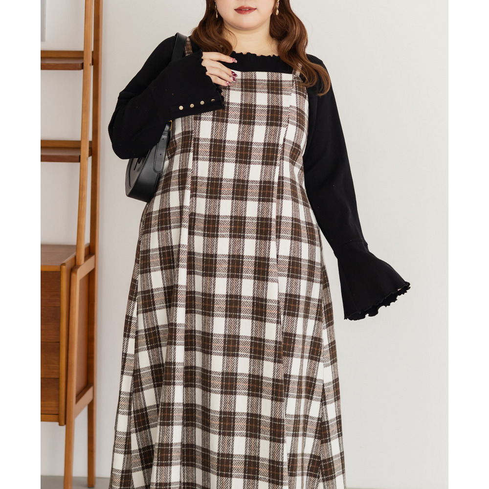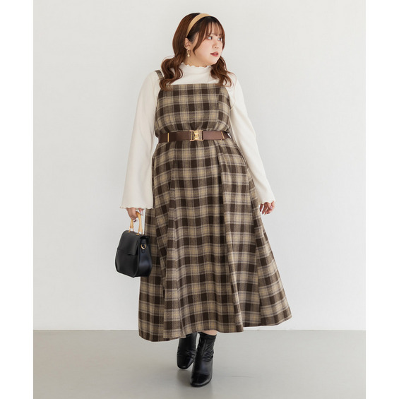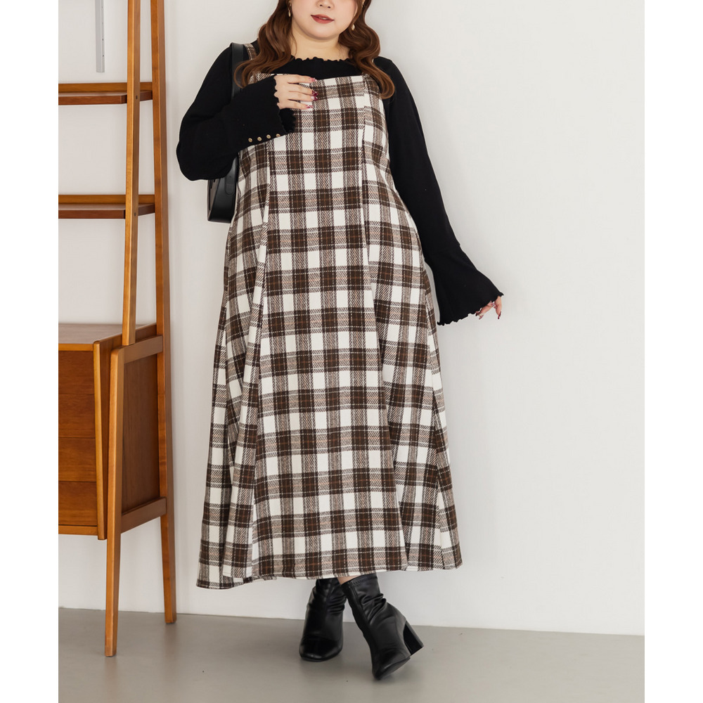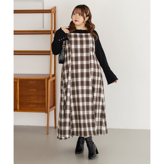 CLETTEオリジナルフェイクウールチェック柄ジャンスカワンピース