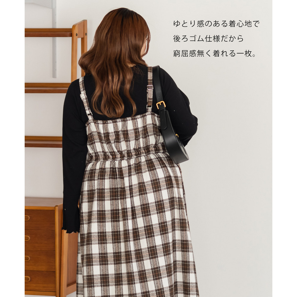 | 3Lサイズを着用して丁度良く着られました。後ろはゴムで、肩の長さも調節できるので窮屈感のない着心地でした。ハリのあるしっかりとした生地でボディラインを拾いにくいのがポイントです!落ち着いた雰囲気のチェック柄が、大人可愛く仕上がります!今っぽいチェック柄と雰囲気と季節感のある生地でトレンドらしい雰囲気に仕上がります。シンプルなインナーと合わせやすくたくさん着回しが出来そうです◎ |