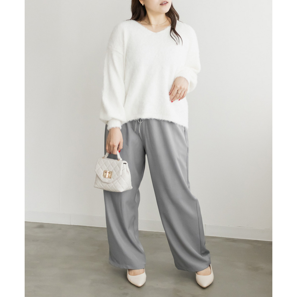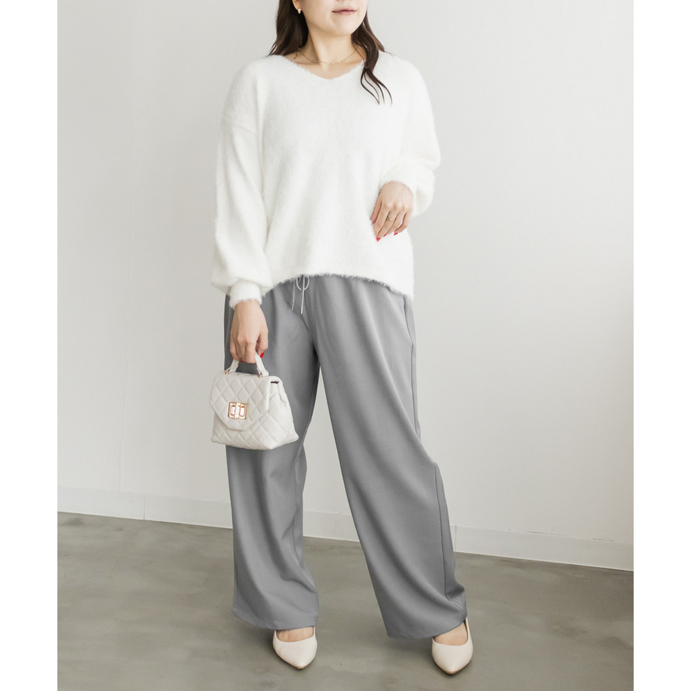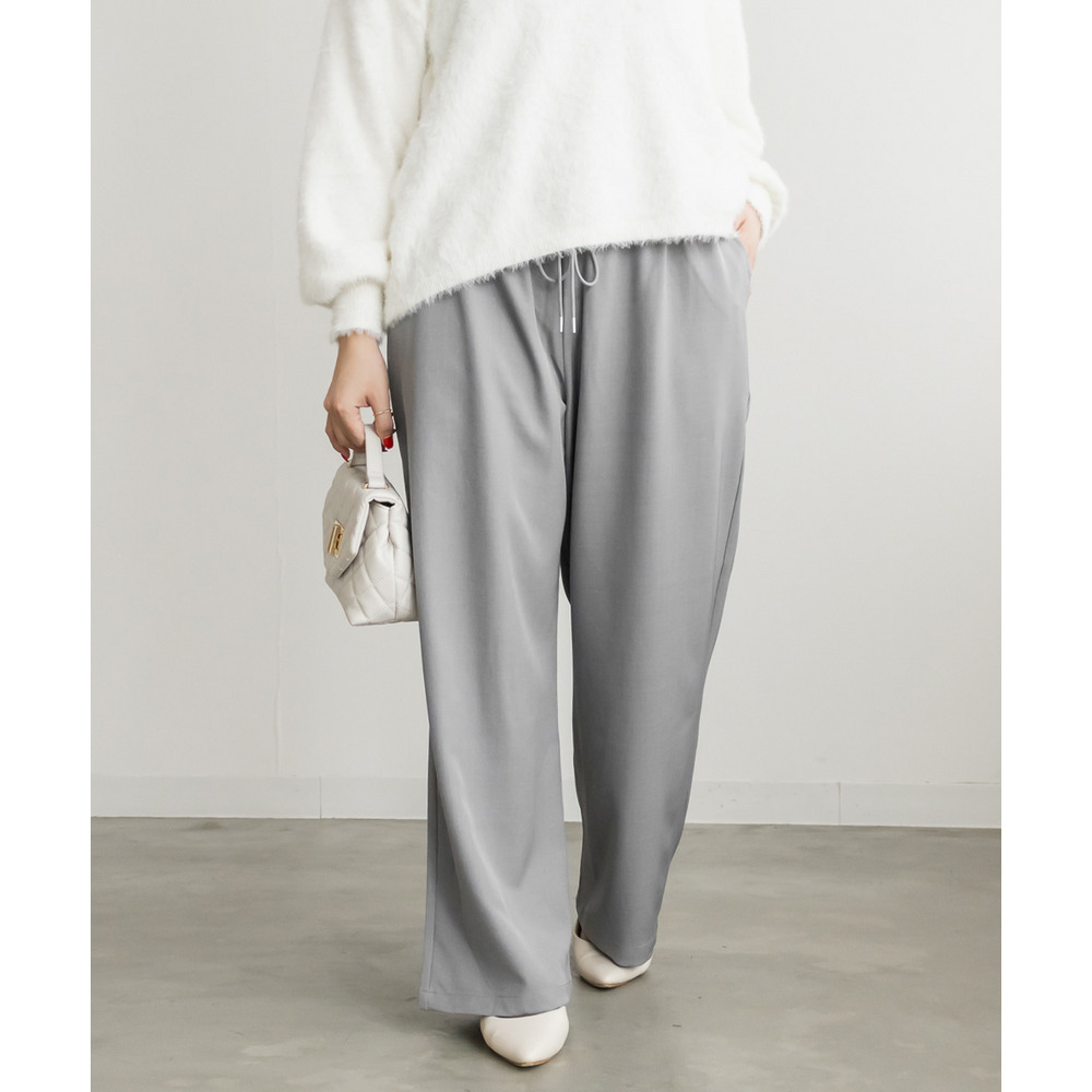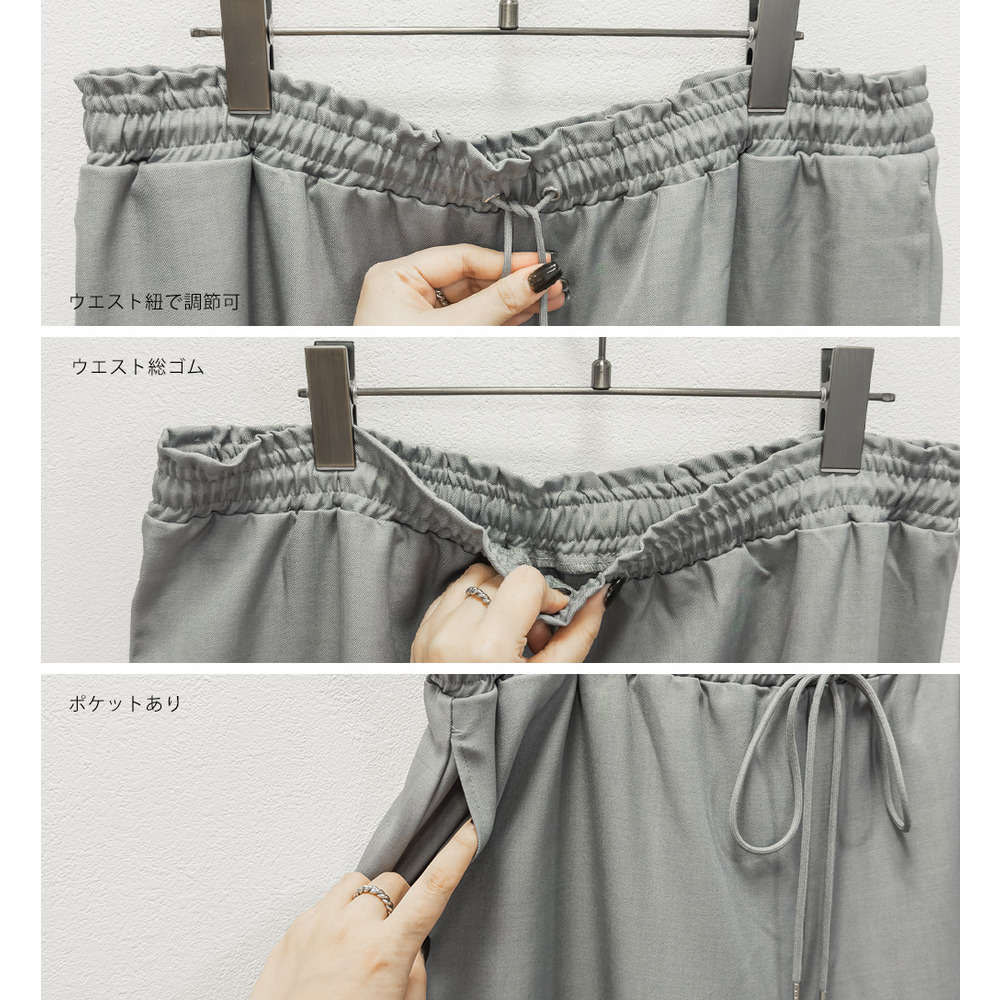 | 3Lサイズを着用して程よくゆとりのあるサイズ感でした。いつも通りのサイズ選びで問題なさそうです◎ウエストは紐がついていて調節可能なので幅広くお使いいただけます♪ゆとりがありつつすっきり見えるシルエットで、楽ちんな着心地です!コーデ次第でフェミニンなスタイルにもなれるアイテムで、可愛い系のトップスとも、シンプルなトップスとも相性がいいのでおすすめです。お仕事にもつかえるキレイめな雰囲気で、オールシーズン使える便利な1枚です! |