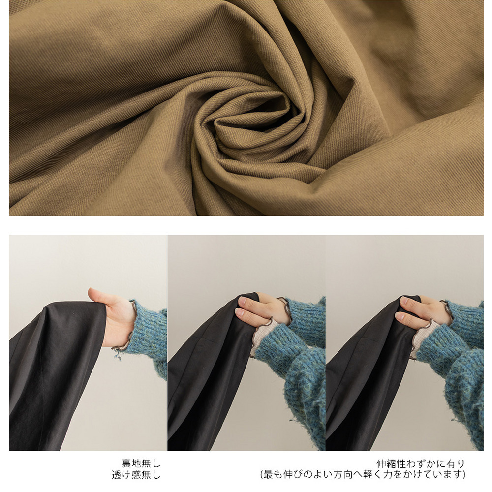 素材 ■素材 ポリエステル100% ■裏地・透け感・伸縮性 裏地無し、透け感無し、伸縮性わずかに有り ■ポケット 有り ■生地感 程よくしっかりとした素材です。