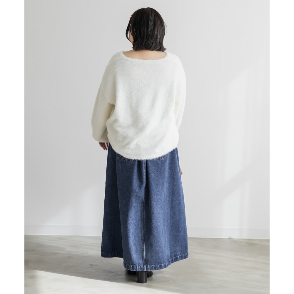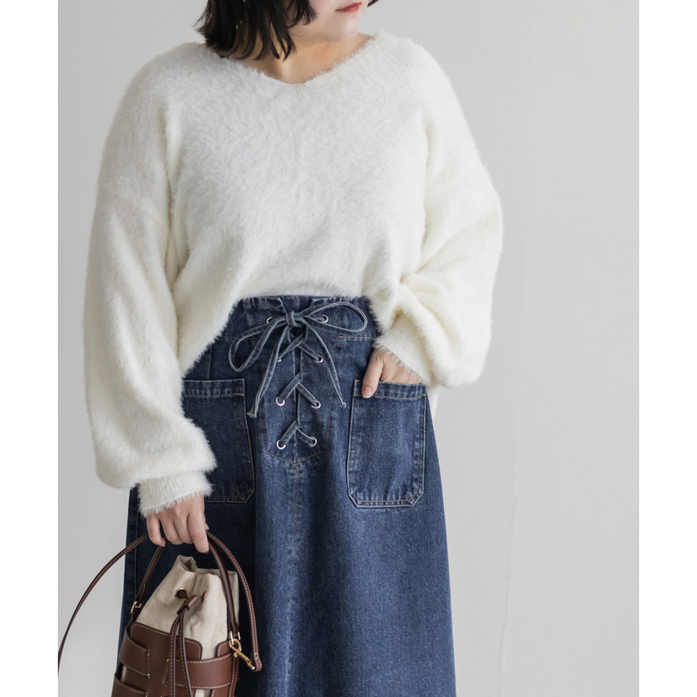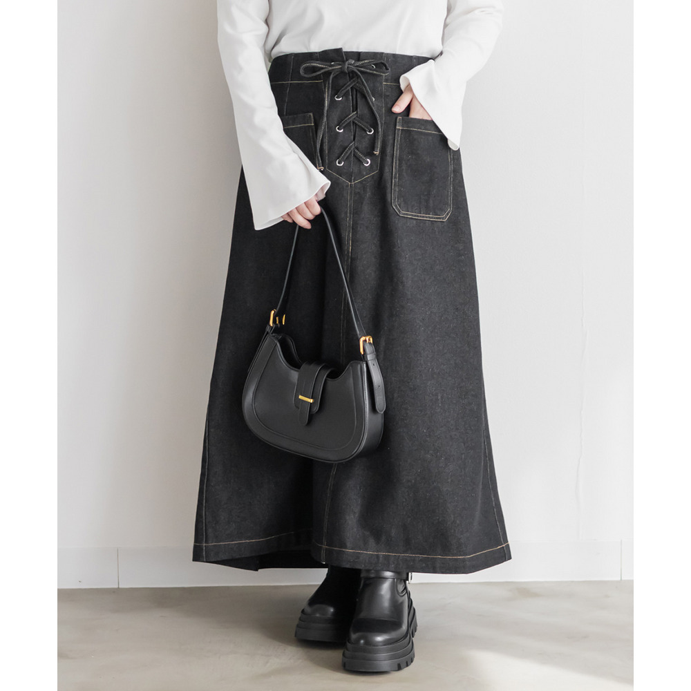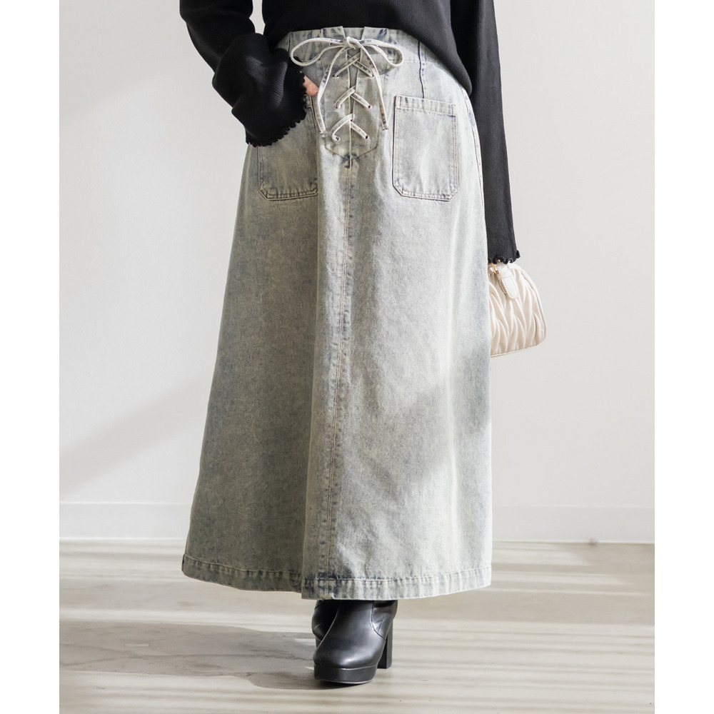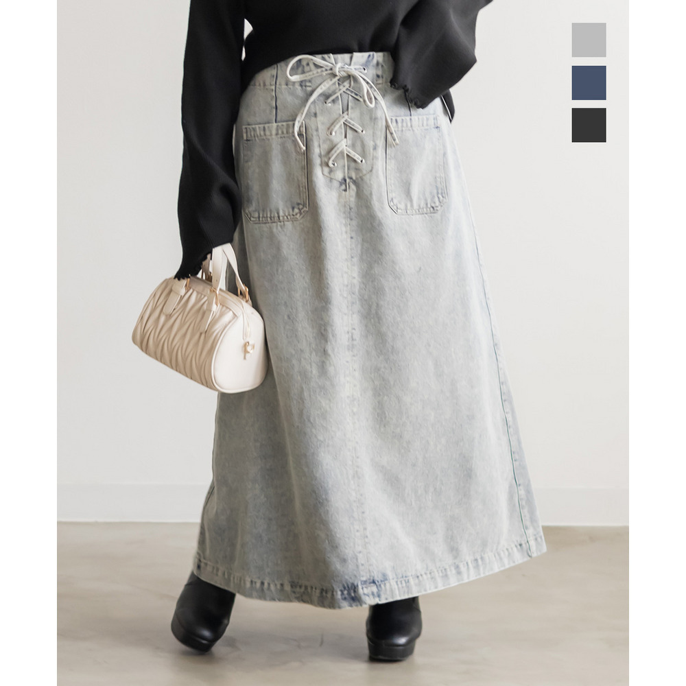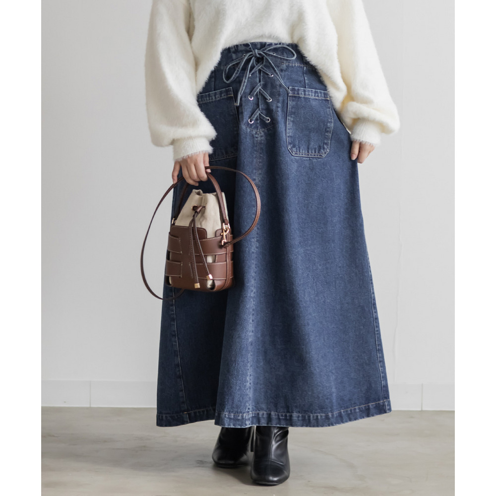 | 3Lを着て丁度いいサイズでした。程よくしっかりとしたデニム素材が腰周りやお腹のボディラインを拾わずにすっきりとみせてくれます!フロントはレースアップになっていて、お腹周りをカバーしてくれるデザインです!ポケットもついていて、のぺっとせずにメリハリのある印象にしてくれます!後ろゴムになっているので窮屈感も無く着られました。オールシーズン使えて、カジュアルにもフェミニンにも合わせやすい万能なスカートです◎ |