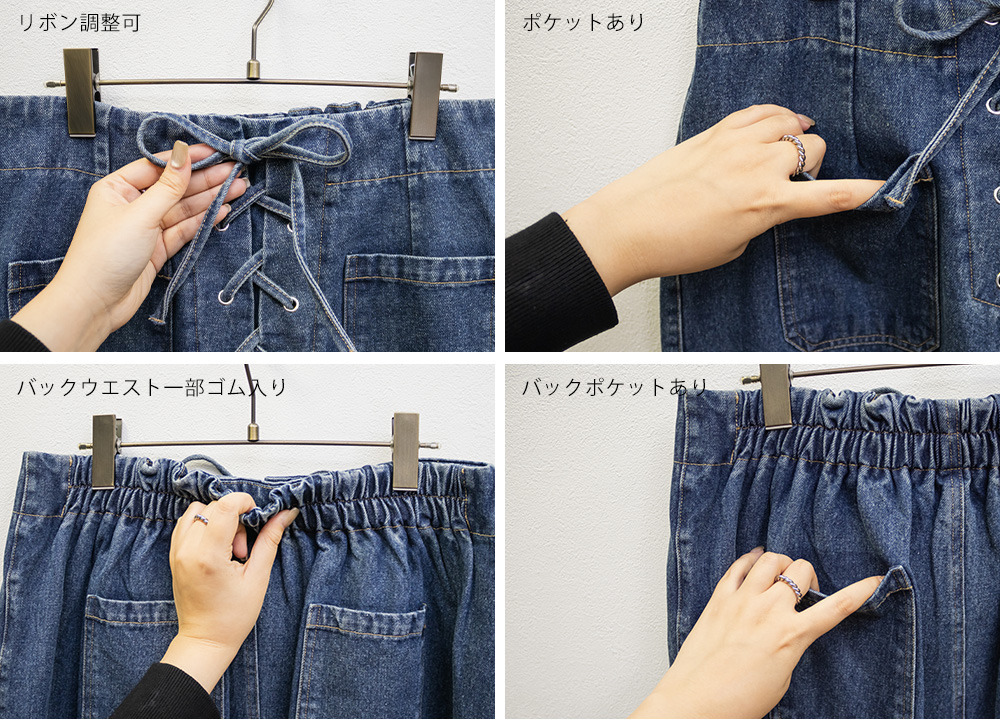 | 素材 | ■素材 綿80%、ポリエステル20% ■裏地・透け感・伸縮性 裏地無し、透け感無し、伸縮性無し ■ポケット 有り ■生地感 一般的なデニム素材です。 |
