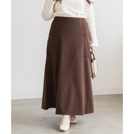 3Lを着用してちょうどいいサイズでした。程よくゆとりを持たせたシルエットで、脚を綺麗に見せてくれます!着心地に窮屈感がなく、生地が少し落ち感のある生地でさらっと快適でした。女性らしくキレイな印象のフレアスカートで少し裾に向かって広がるデザインでフェミニンな雰囲気です!1枚あれば色々な着回しができます!洗練された大人っぽい雰囲気で、着回ししやすいカラバリも魅力です♪
