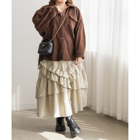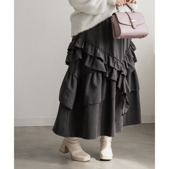 3Lサイズを着用しました。ウエストは総ゴム仕様でラクに履けてちょうどよかったです◎紐でも調節できるのも嬉しい。ラッフルデザインが歩くたびにひらっと揺れて、女性らしさをしっかり演出してくれます。ロング丈なので気になる足元もカバーしつつふんわりシルエットでボディラインもカバー♪シンプルなトップスを合わせるだけで華やかになるので、普段使いはもちろん、ちょっとしたお出かけにもぴったりでした!