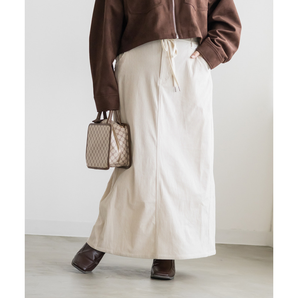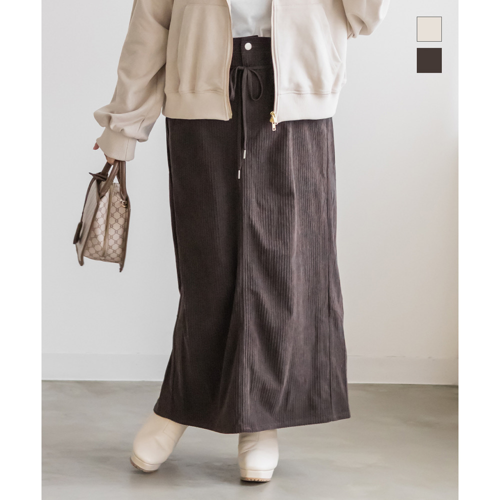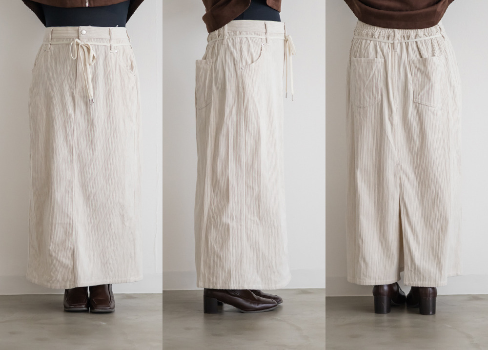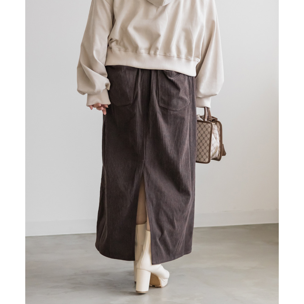 3Lサイズを着用して、ゆとりのある着心地でした。ストンとしたナローシルエットなので、心配な方はヒップのサイズ確認をおすすめします!後ゴム入りなので着心地も問題なくノンストレスで着用できました。後ろスリットが入っていて足さばきもしやすいです◎これからの季節大活躍のコーデュロイ生地とカラーでトレンド感ある着こなしにぴったりです。着回ししやすいきれいめシルエットです!