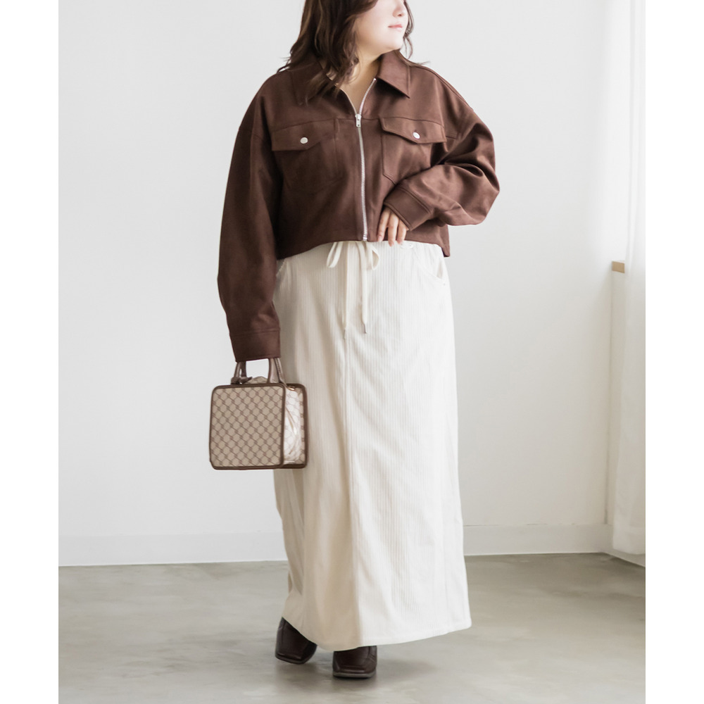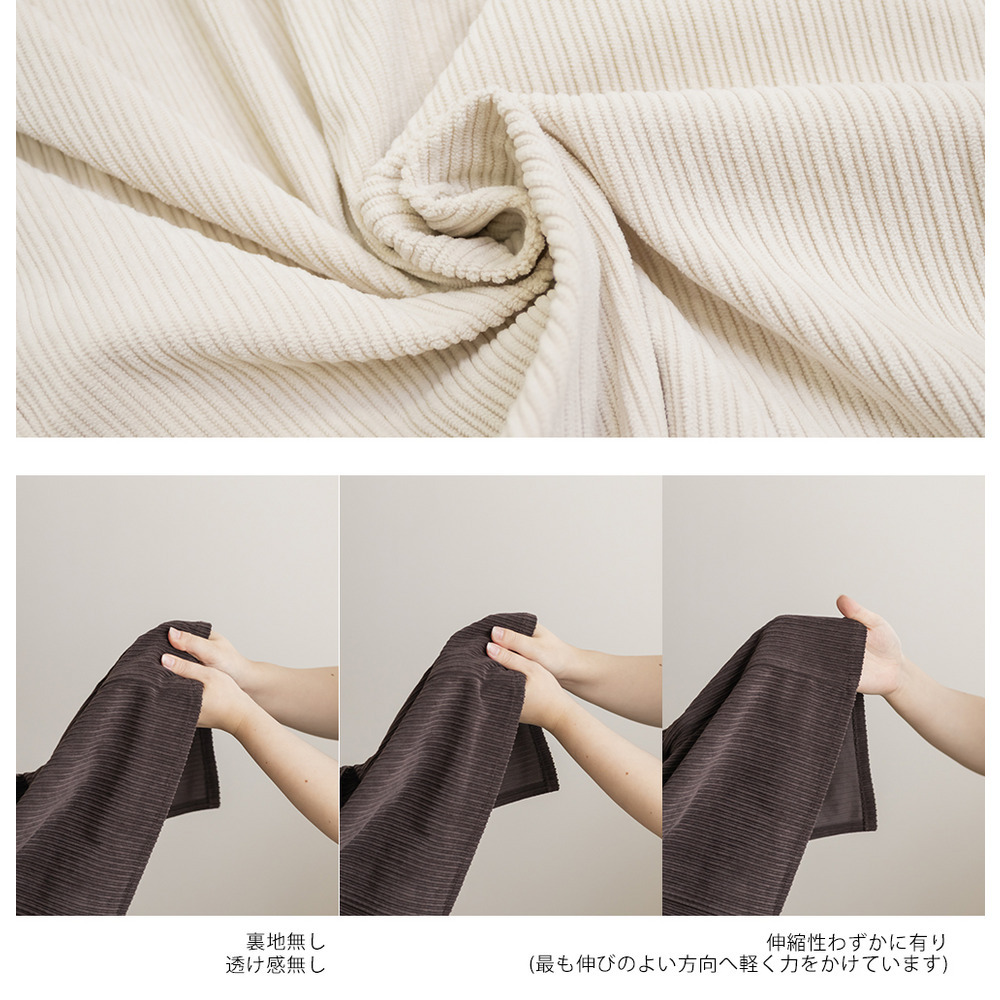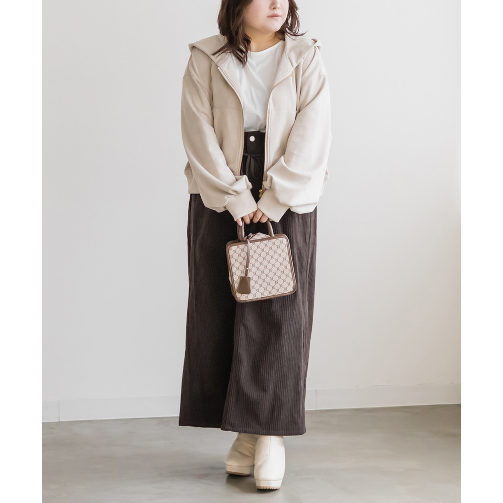 3Lサイズを着用して、ゆとりのある着心地でした。ストンとしたナローシルエットなので、心配な方はヒップのサイズ確認をおすすめします!後ゴム入りなので着心地も問題なくノンストレスで着用できました。後ろスリットが入っていて足さばきもしやすいです◎これからの季節大活躍のコーデュロイ生地とカラーでトレンド感ある着こなしにぴったりです。着回ししやすいきれいめシルエットです!
