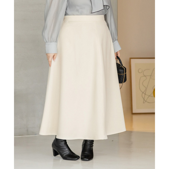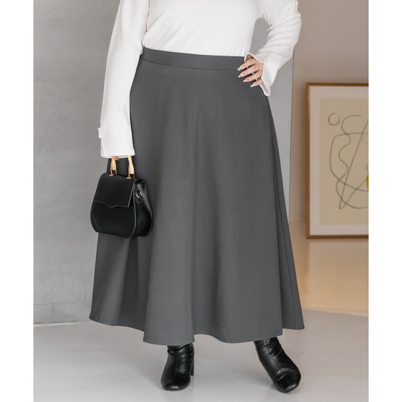 | 3Lサイズを着用して丁度いいサイズ感でした。後ろウエストゴムなので窮屈感のない着心地です◎ギャザーやタックではなくパネル切替になっていているのですっきりとしたシルエットで女性らしい雰囲気で着られました。さらりとした落ち感がある生地でオールシーズン大活躍します!たっぷりとしたフレアシルエットが歩くたびにゆれてかわいいです!ロング丈で、きれいめな印象があるのでデートなどにはもちろん、お仕事などフォーマルなシーンにもお使いいただけます♪ |