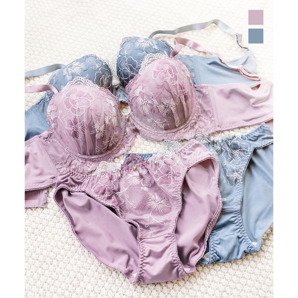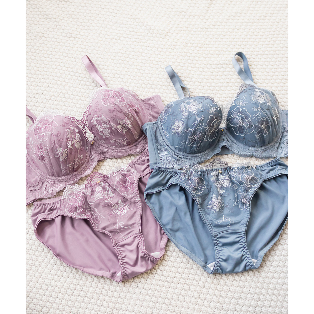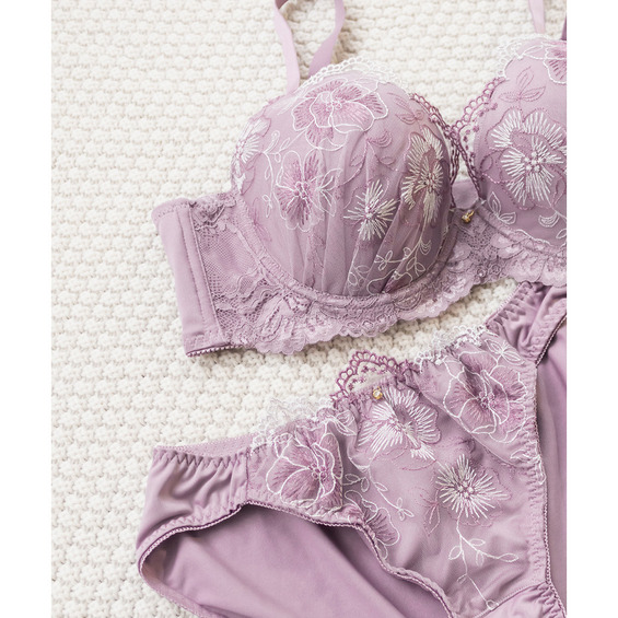脇高ラメフラワー刺繍ブラジャー&ショーツセット