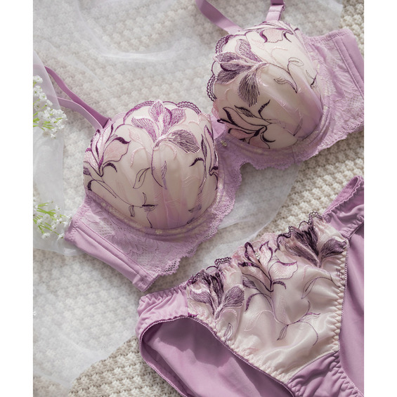 脇高エレガンスリリー刺繍ブラジャー&ショーツセット