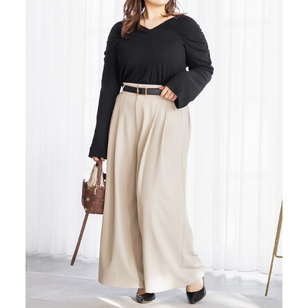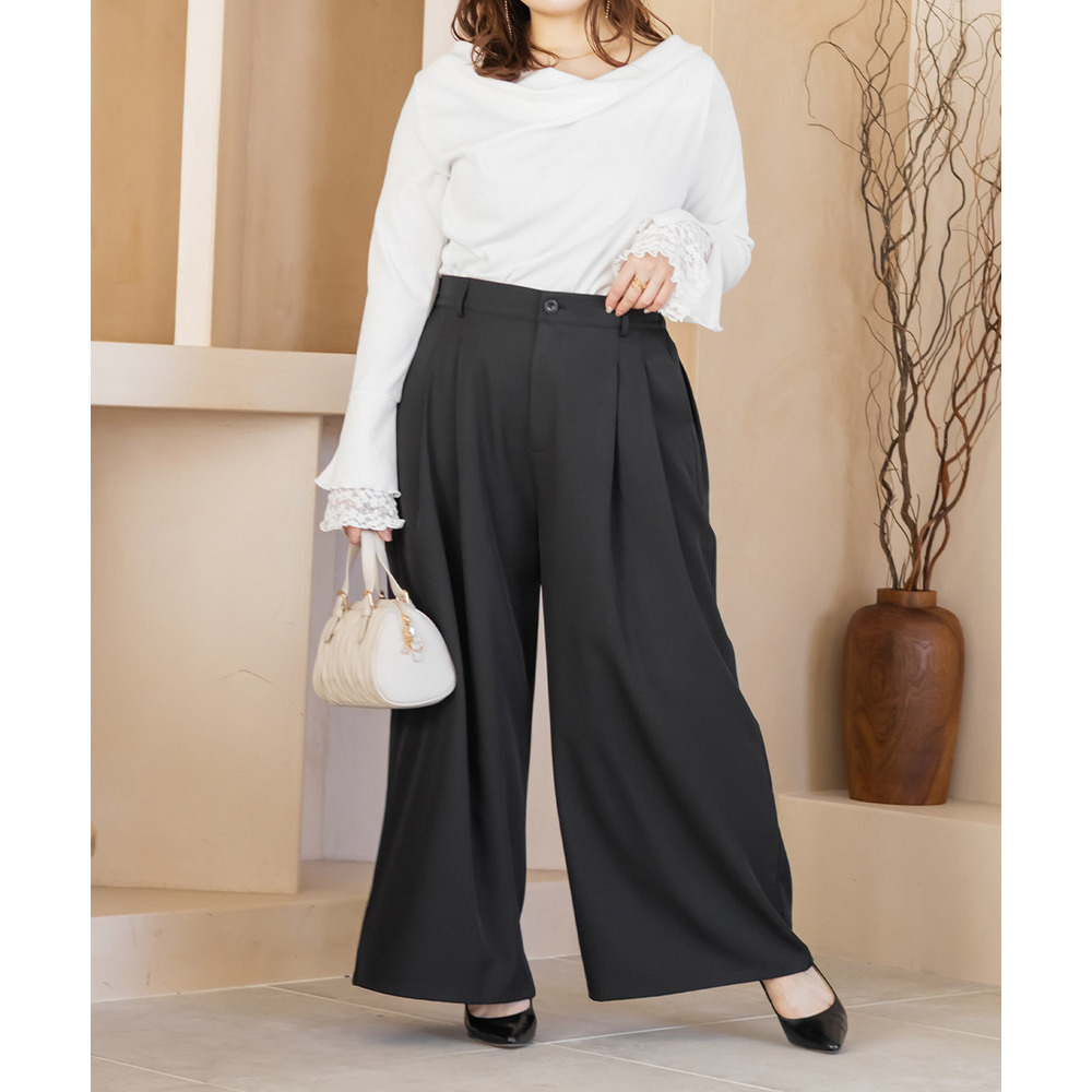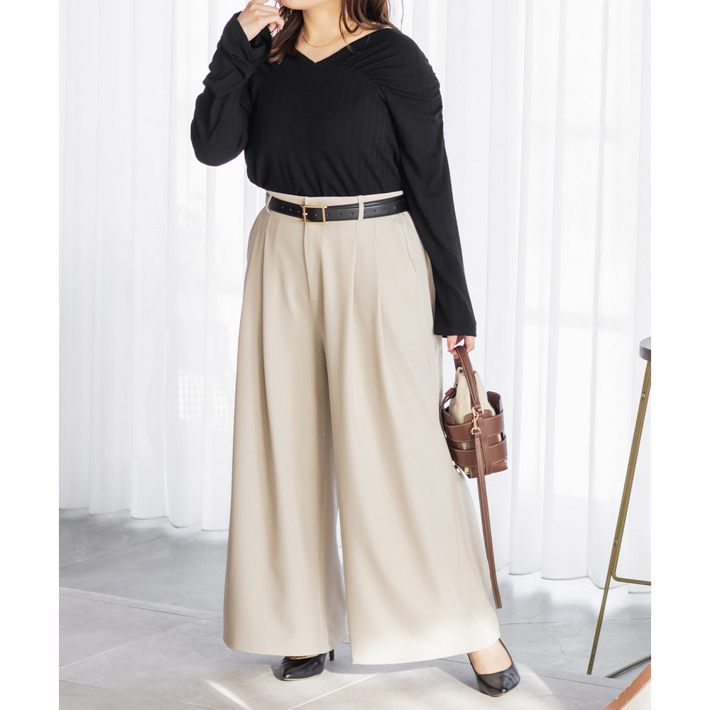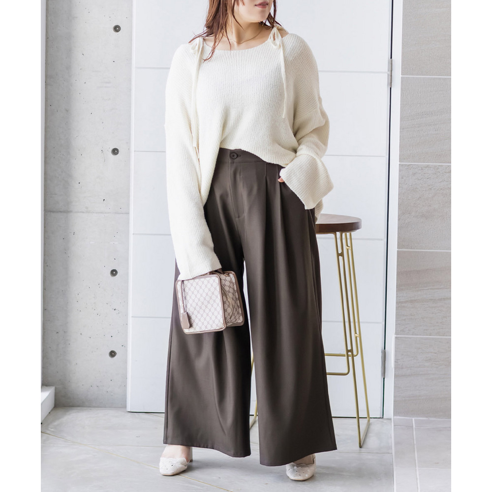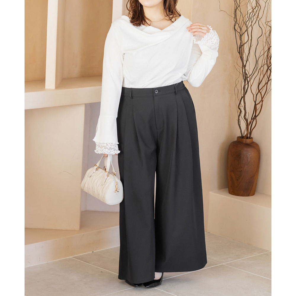 | 3Lを着用してちょうどいいサイズでした。しっかりゆとりがありつつすっきり見えるシルエットで、楽ちんな着心地です◎ワイドパンツだけどフェミニンなスタイルになれるアイテムで、可愛い系のトップスとも、シンプルなトップスとも相性がいいのでおすすめです。オールシーズン使える便利なワイドパンツです! |