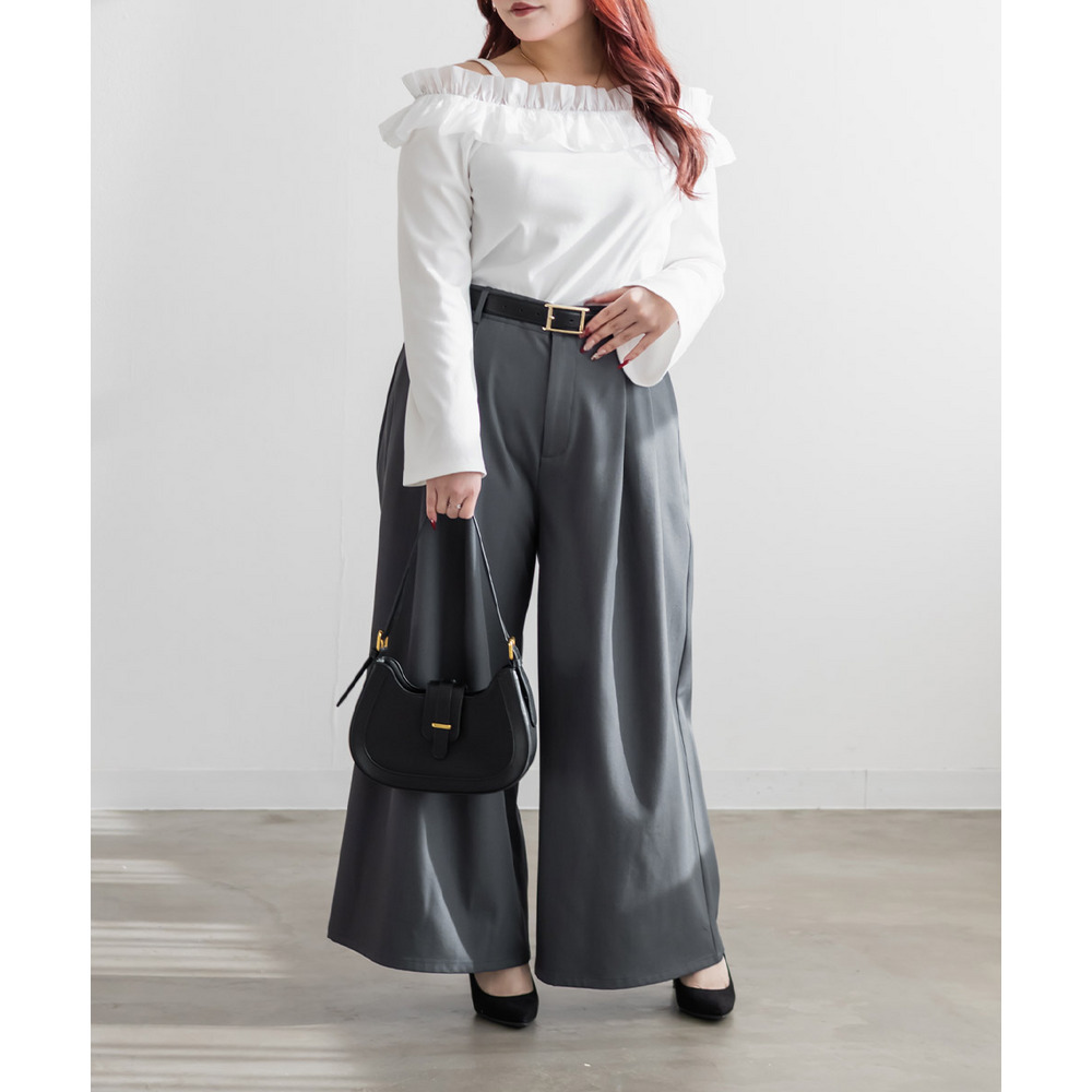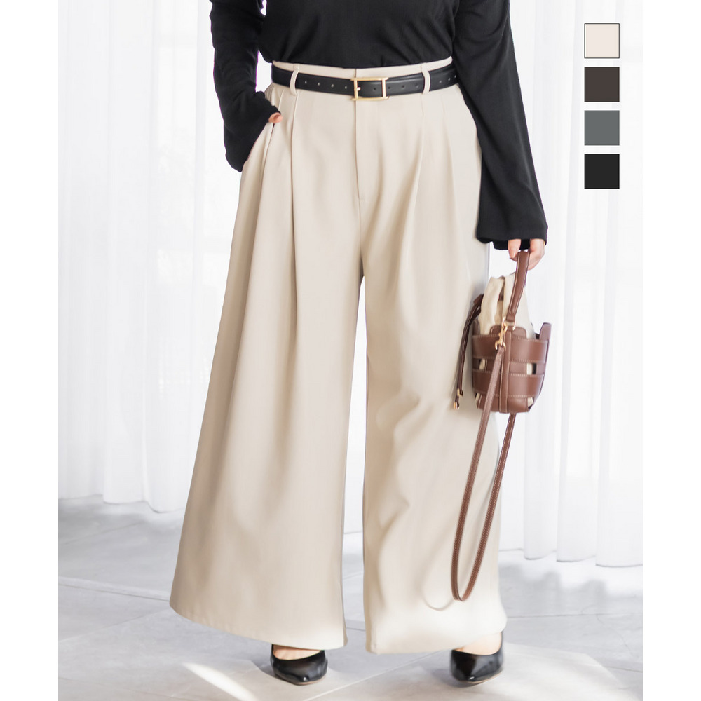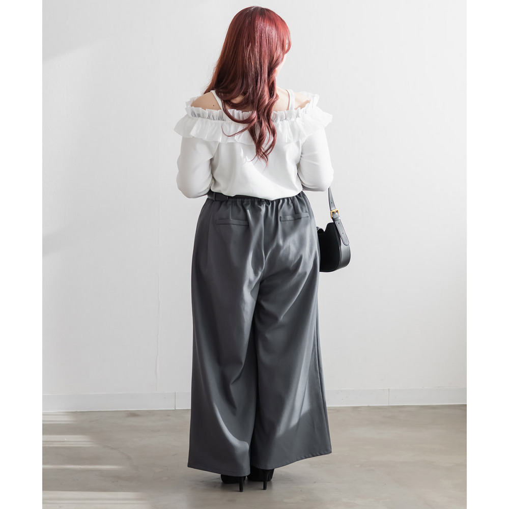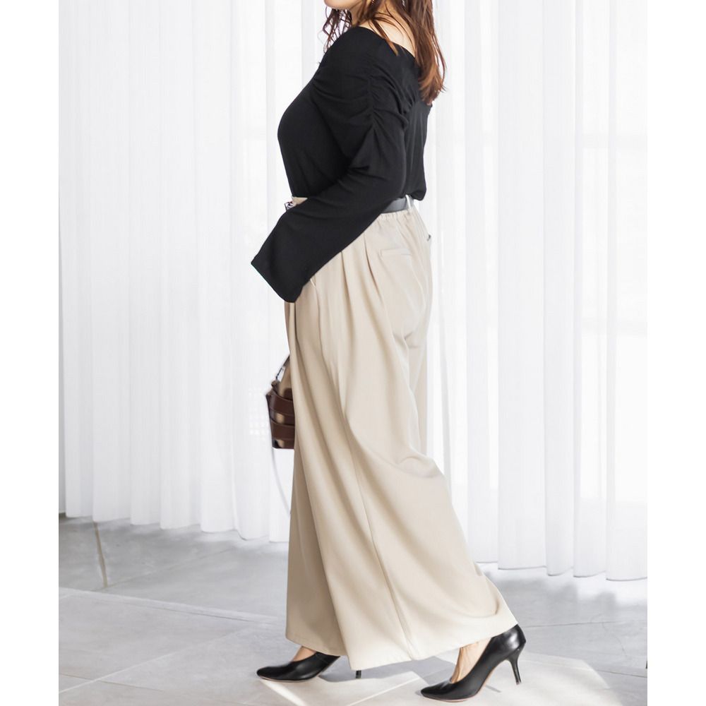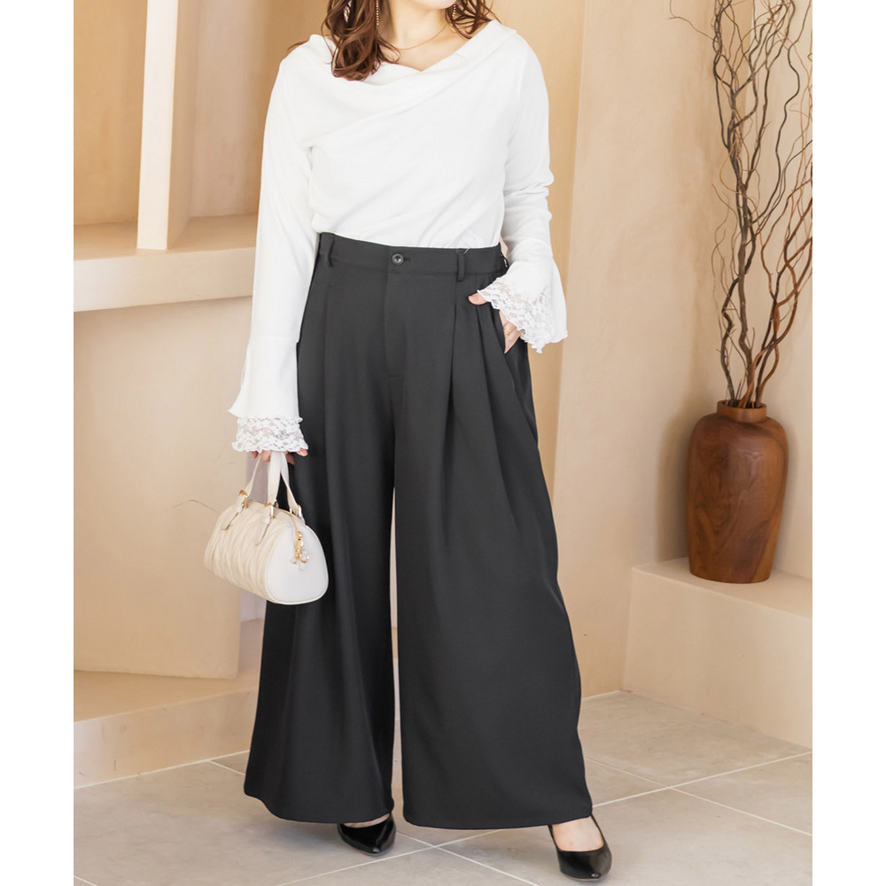 | 3Lを着用してちょうどいいサイズでした。しっかりゆとりがありつつすっきり見えるシルエットで、楽ちんな着心地です◎ワイドパンツだけどフェミニンなスタイルになれるアイテムで、可愛い系のトップスとも、シンプルなトップスとも相性がいいのでおすすめです。オールシーズン使える便利なワイドパンツです! |