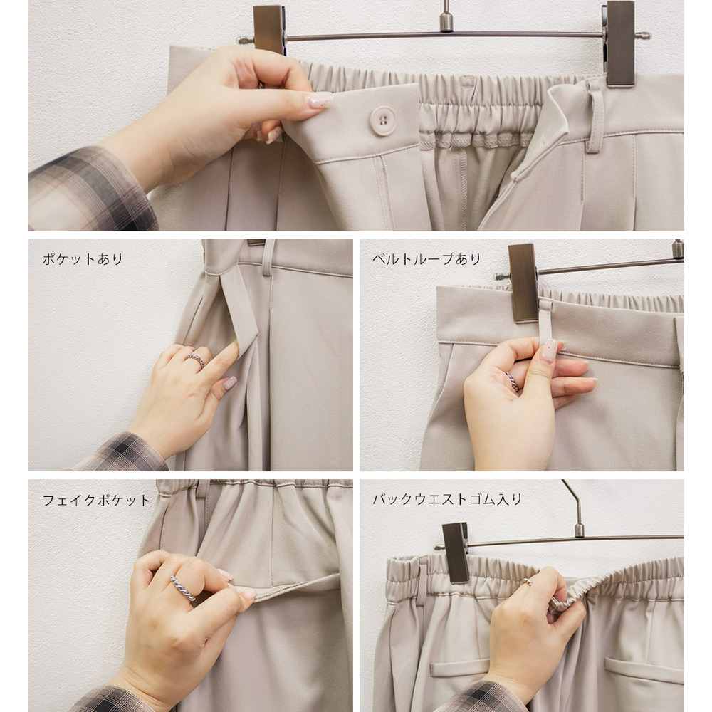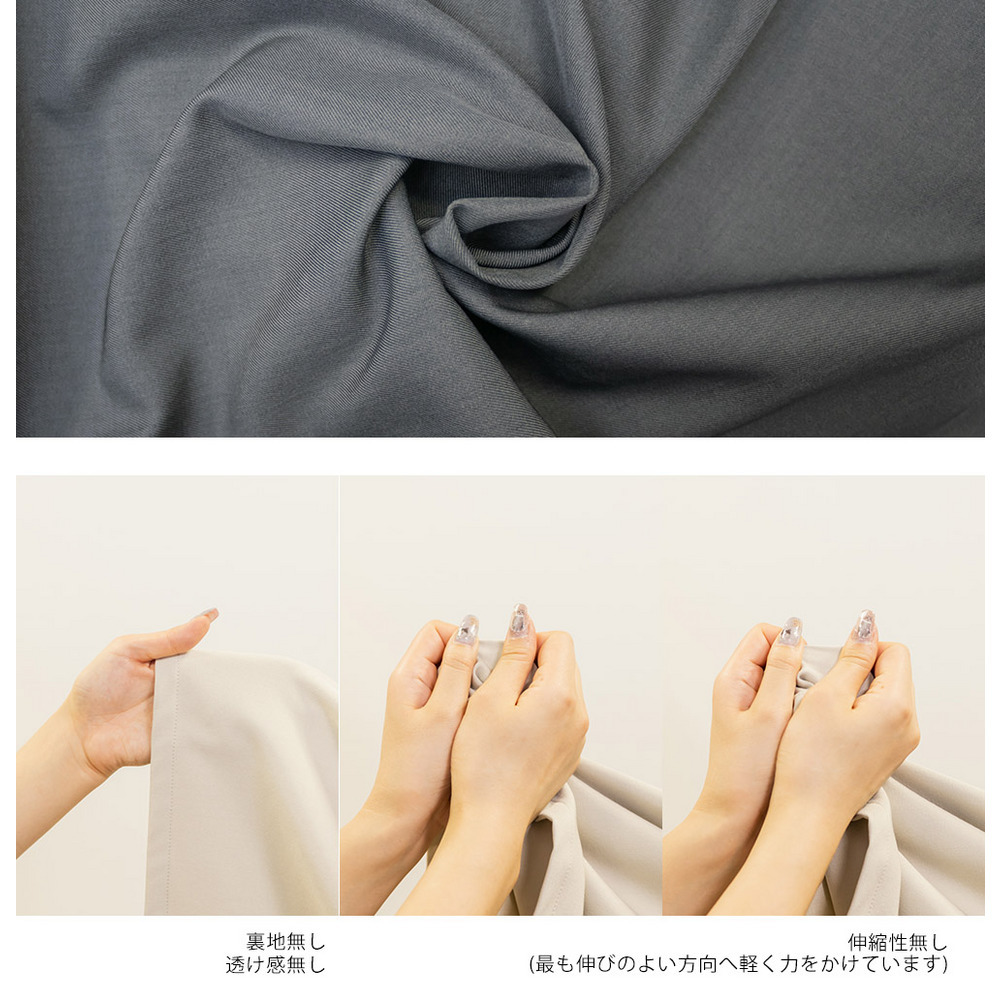 | 素材 | ■素材 ポリエステル95%、ポリウレタン5% ■裏地・透け感・伸縮性 裏地無し、透け感無し、伸縮性無し ■ポケット 有り ■生地感 シワになりづらい特性のある伸縮性のない布帛素材。 |
