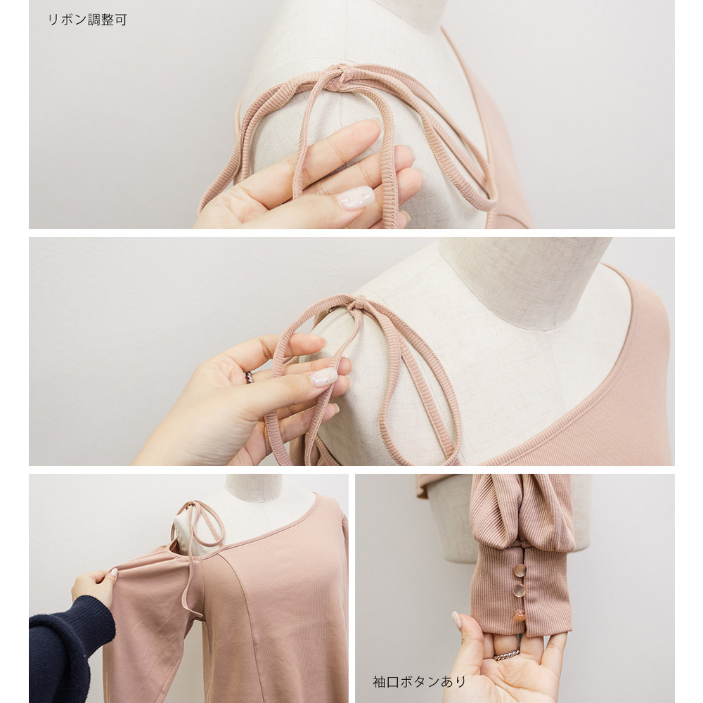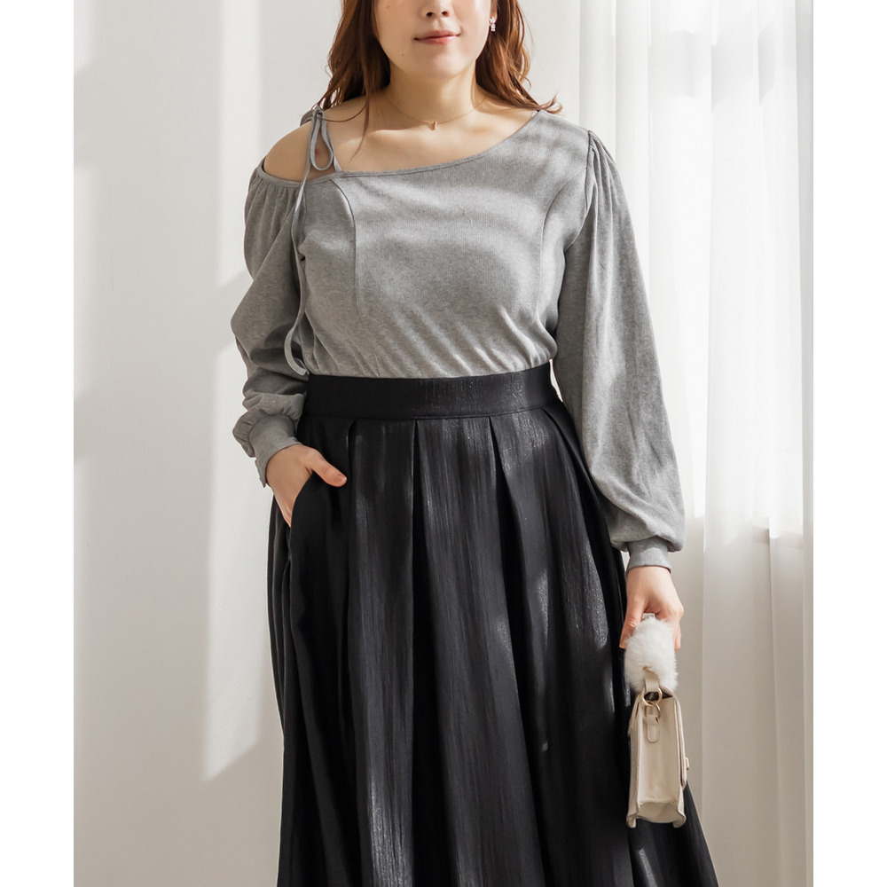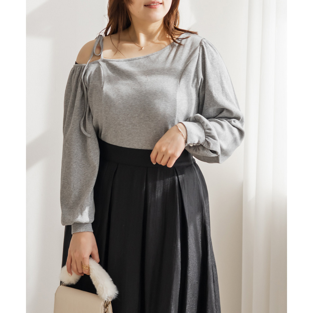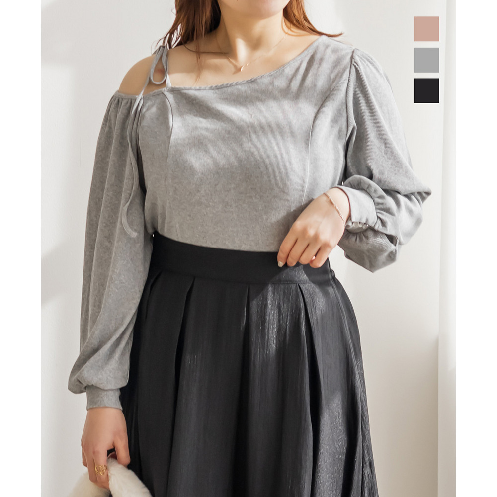 | LLサイズを着用しました!生地自体も伸びがあり、窮屈感は特に無く着用出来ました。ワンショルデザインだったのでピッタリで着用したほうが綺麗に着れそうでした。 野暮ったくならず洗練された印象になるディティールがポイントで、肩はさりげないリボンがついていて可愛いです◎リブカットソーでラフなのに女っぽさ満点の1枚で、ナチュラルな肌見せが上品な雰囲気の1枚です。さらっとした生地感なので、春~秋と長いシーズンお使いいただけます! |