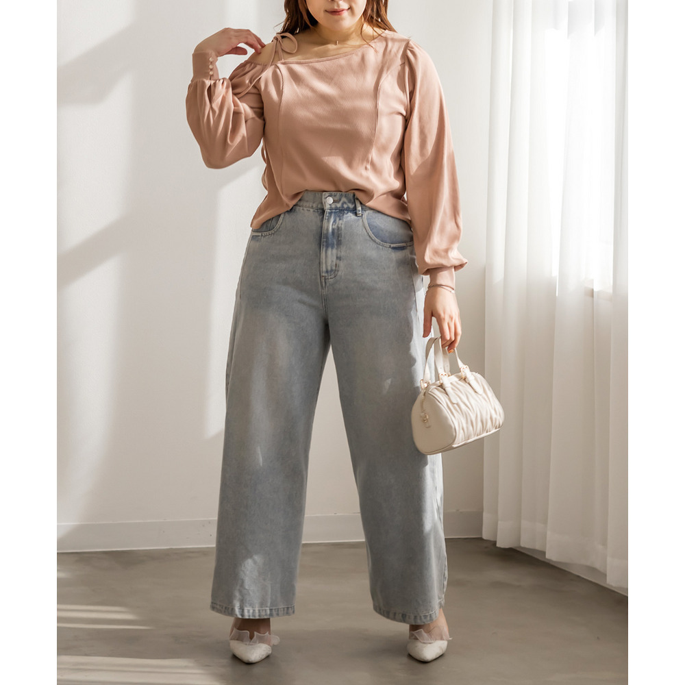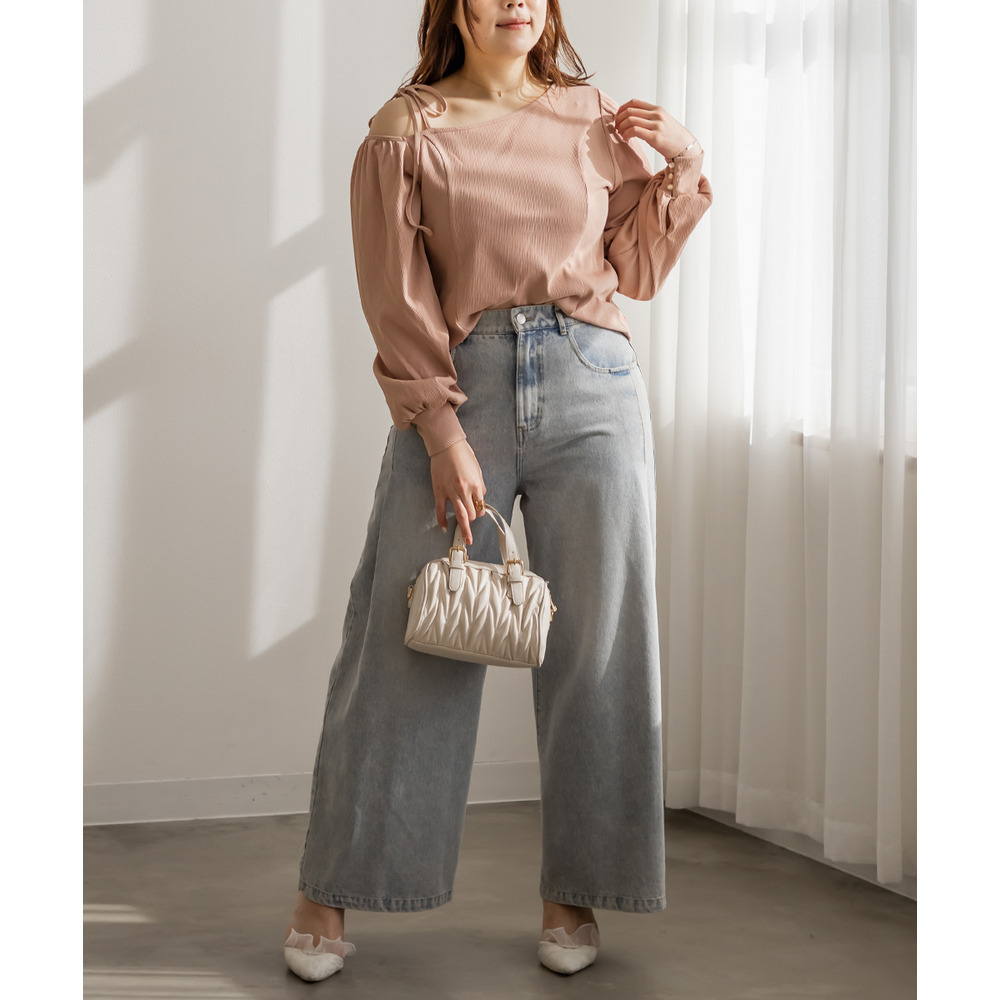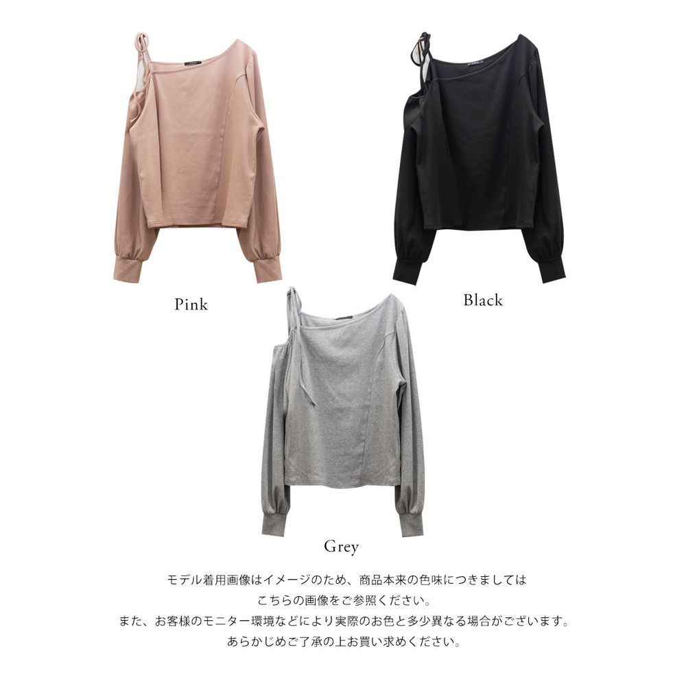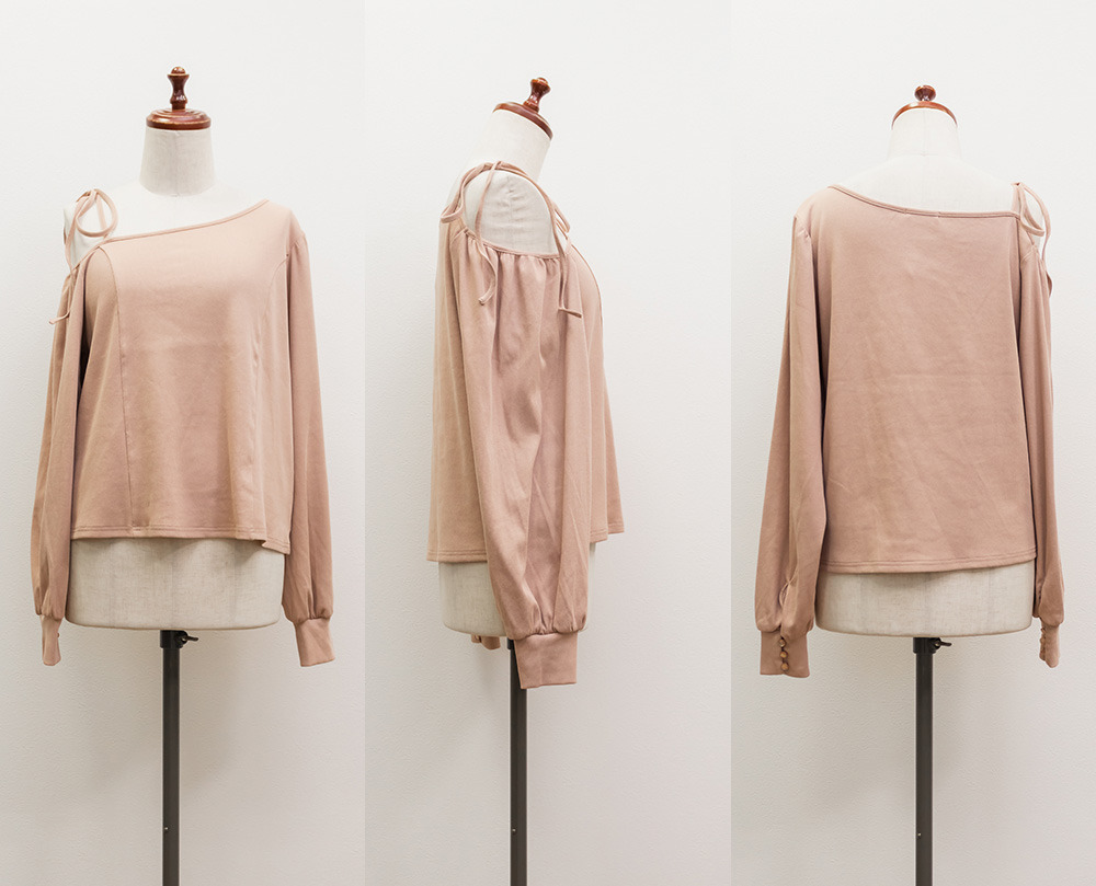| LLサイズを着用しました!生地自体も伸びがあり、窮屈感は特に無く着用出来ました。ワンショルデザインだったのでピッタリで着用したほうが綺麗に着れそうでした。 野暮ったくならず洗練された印象になるディティールがポイントで、肩はさりげないリボンがついていて可愛いです◎リブカットソーでラフなのに女っぽさ満点の1枚で、ナチュラルな肌見せが上品な雰囲気の1枚です。さらっとした生地感なので、春~秋と長いシーズンお使いいただけます! |