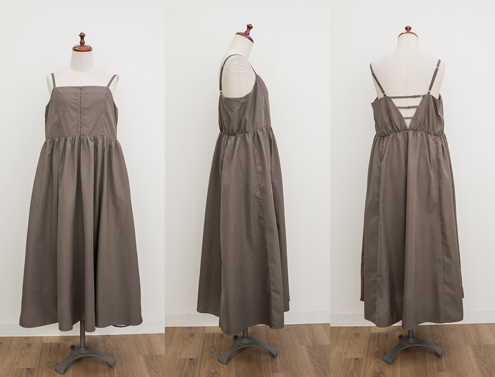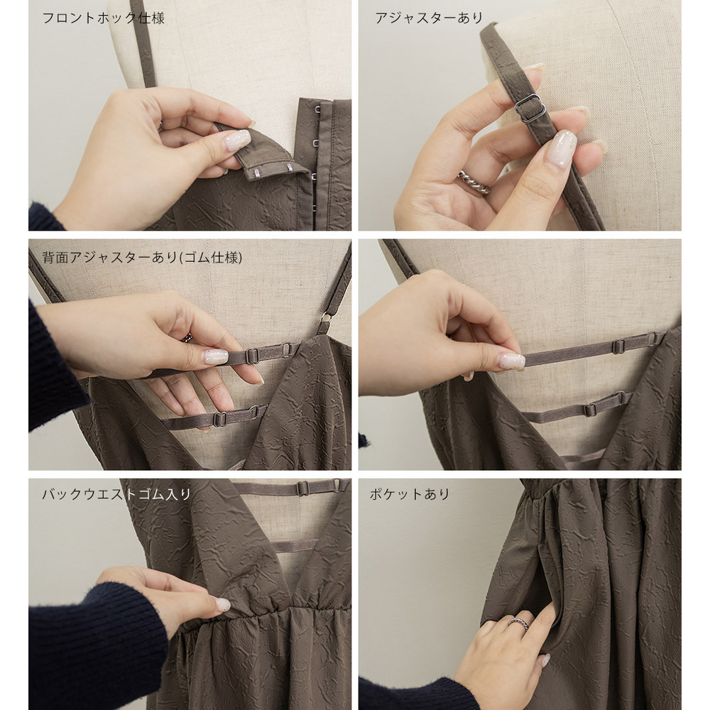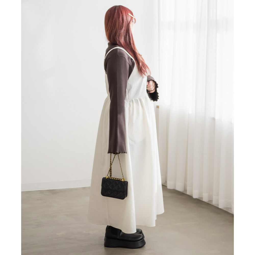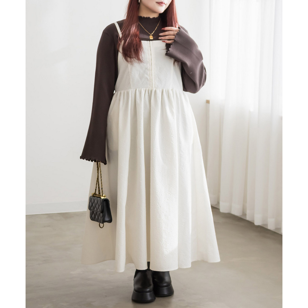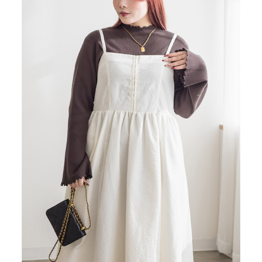 | 3Lサイズを着用して丁度いいサイズでした。気になる部分を隠してくれるから、気持ちも着心地もストレスフリーでした◎フロント部分はホックのデザインになっていて大人っぽい雰囲気で、甘くなりすぎずに今っぽい着こなしが完成します!凹凸のある生地感でボディラインをカバーしてくれます!後ろのデザインも可愛いので、ちょっと違った雰囲気でお洒落です! |
