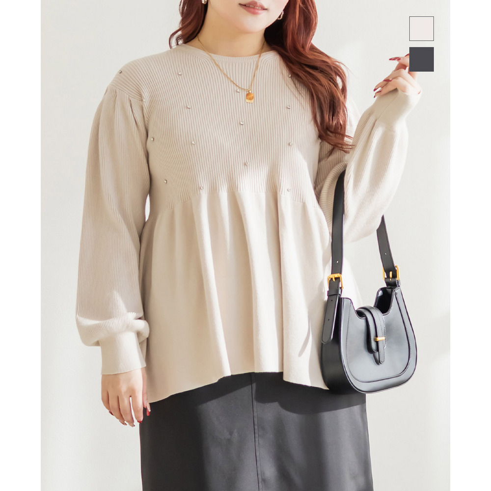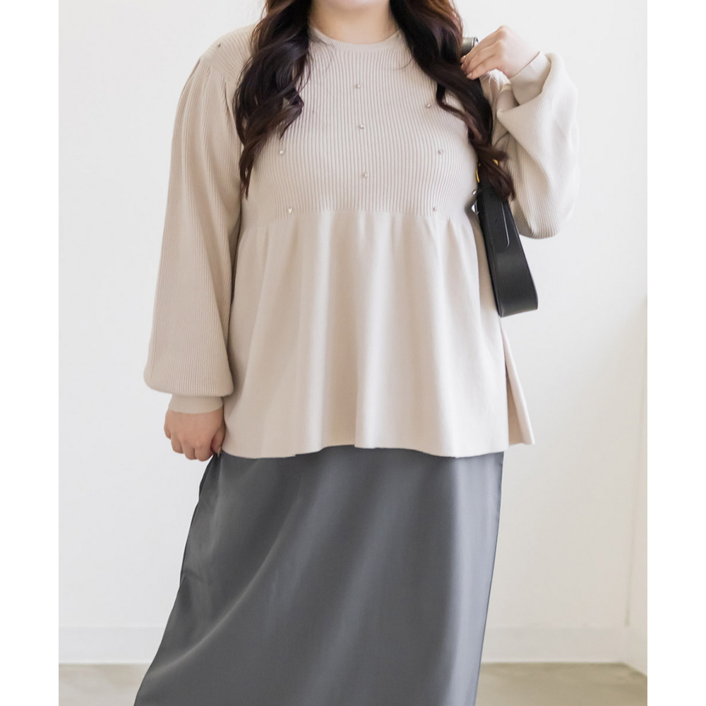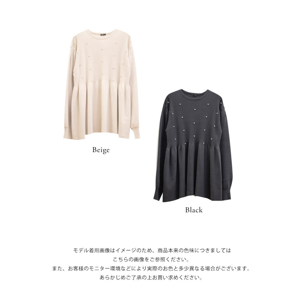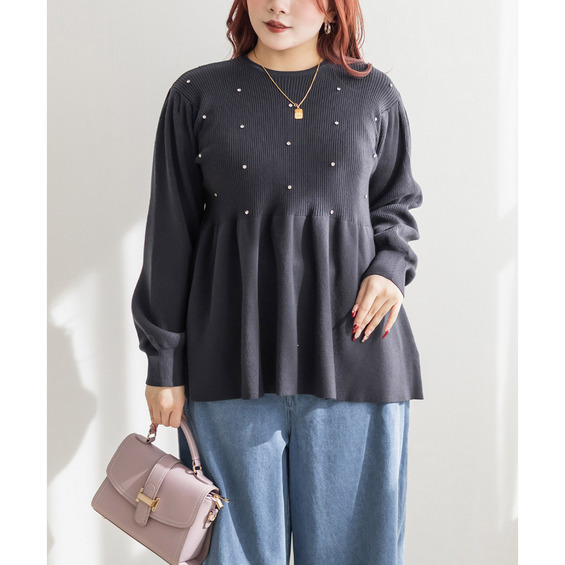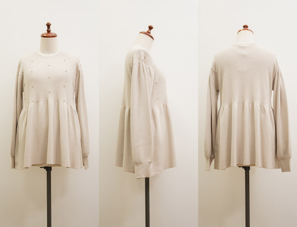 ビジュー付きペプラムニットプルオーバー