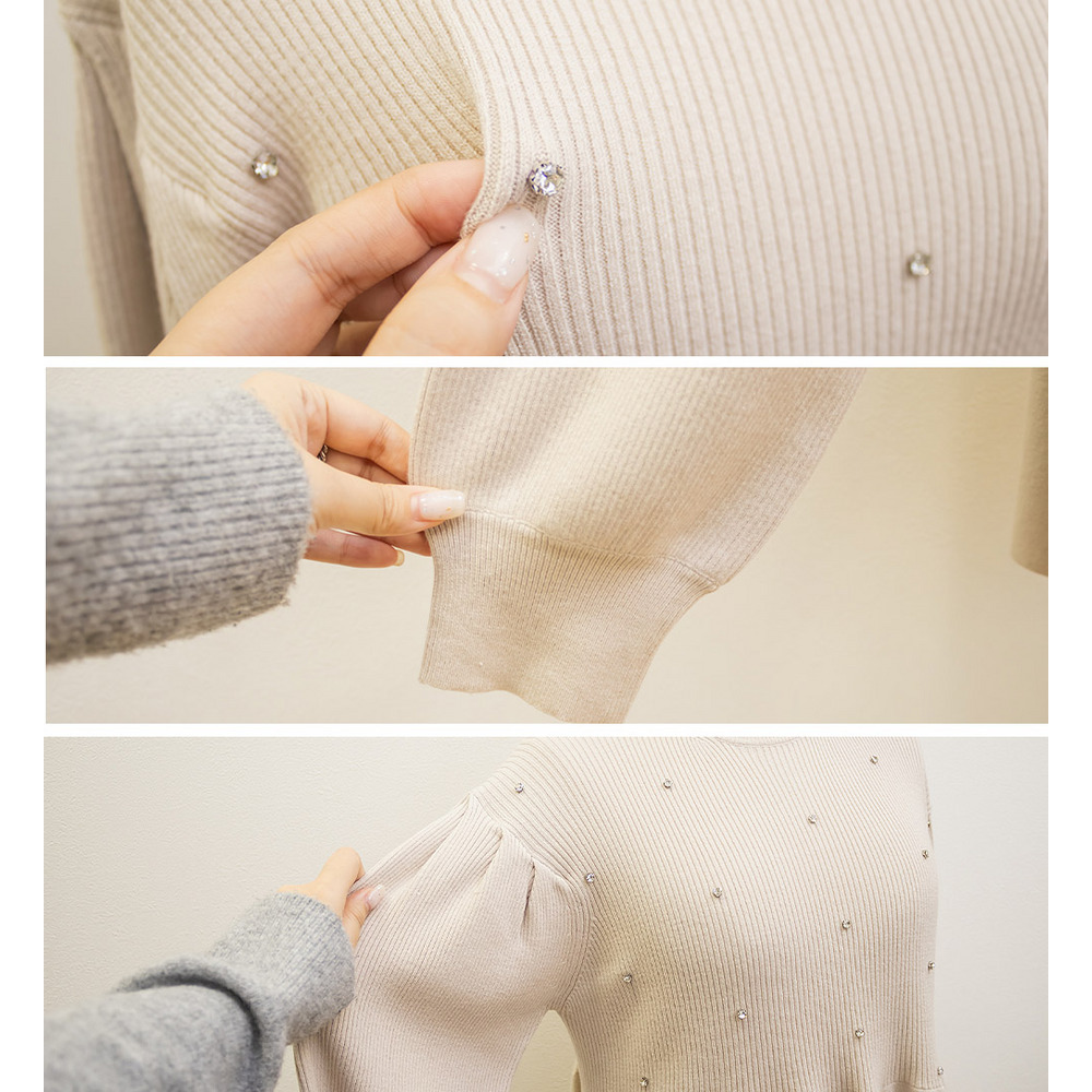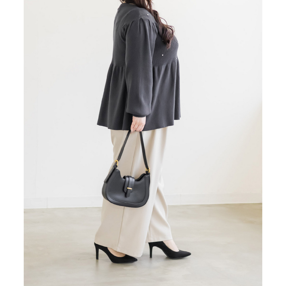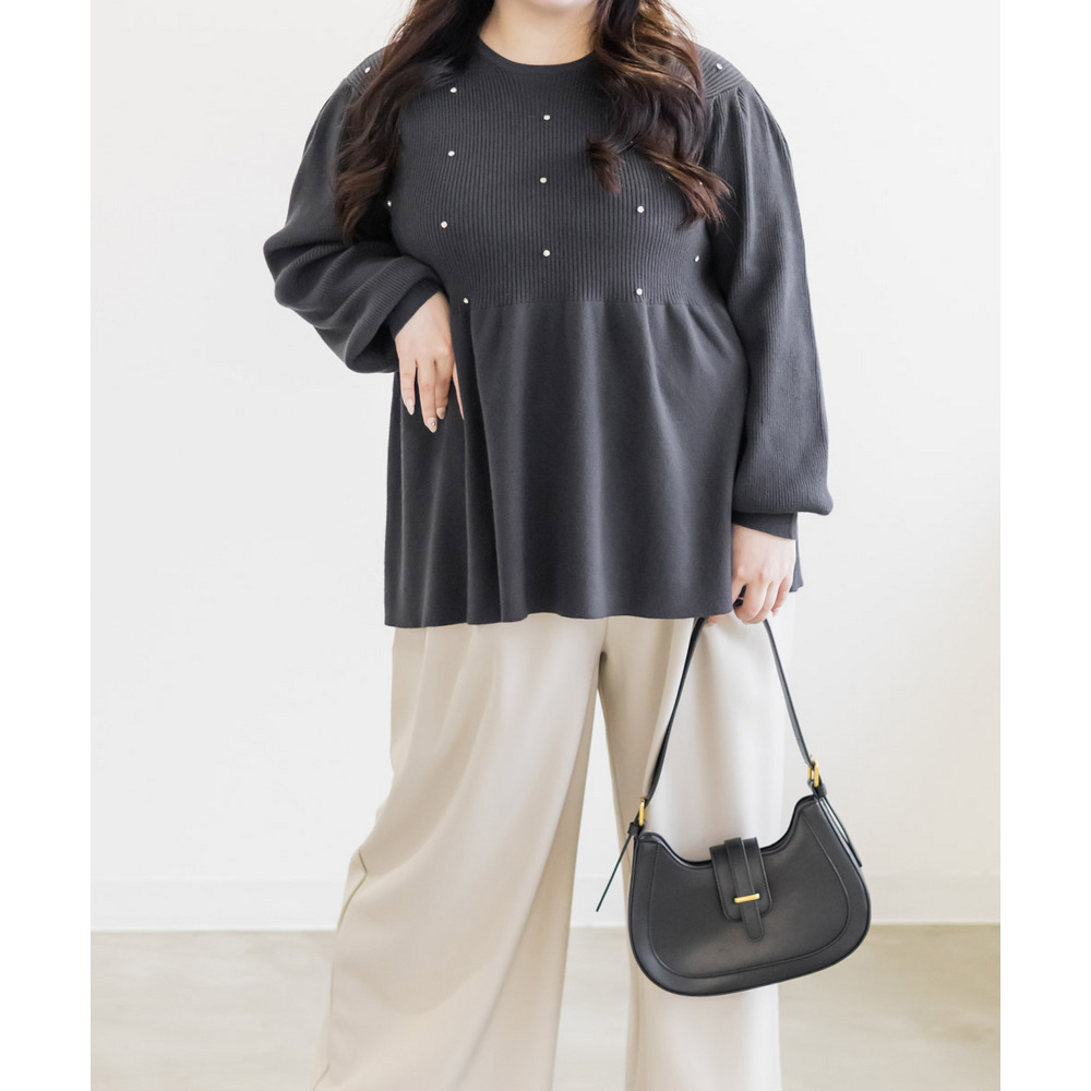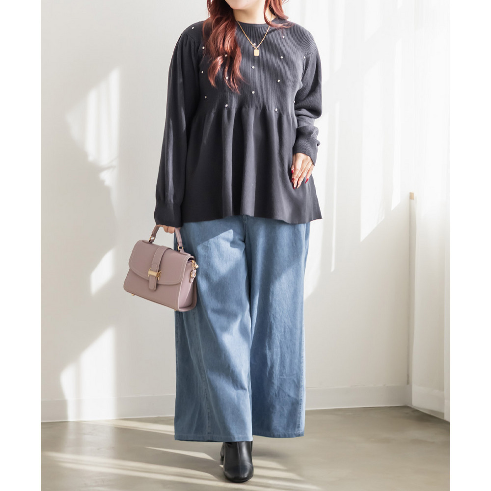 ビジュー付きペプラムニットプルオーバー