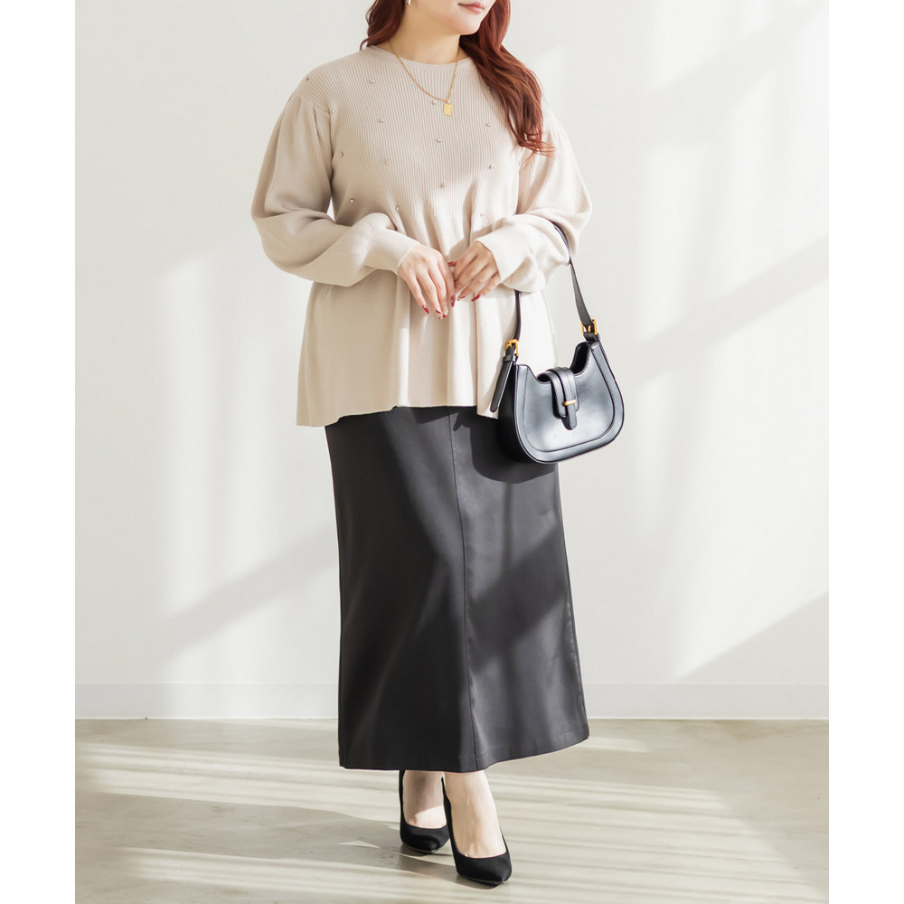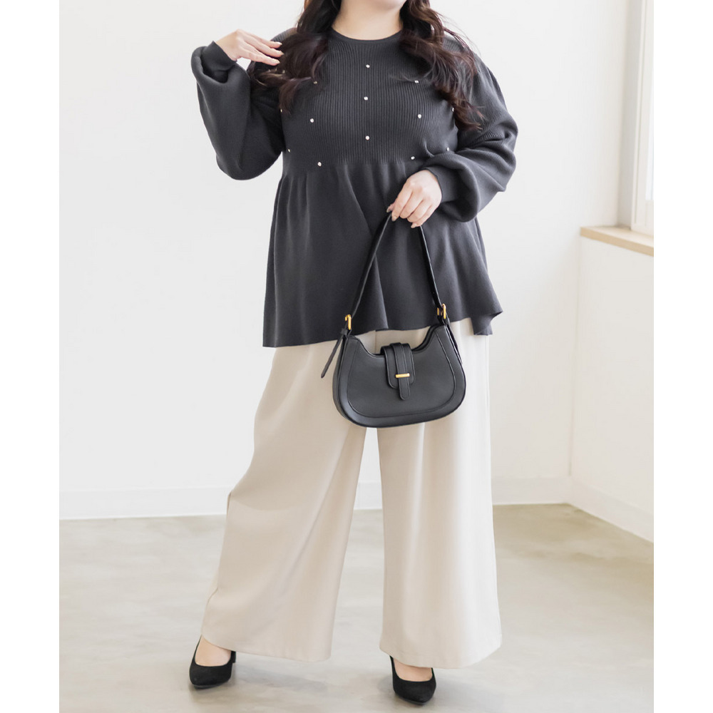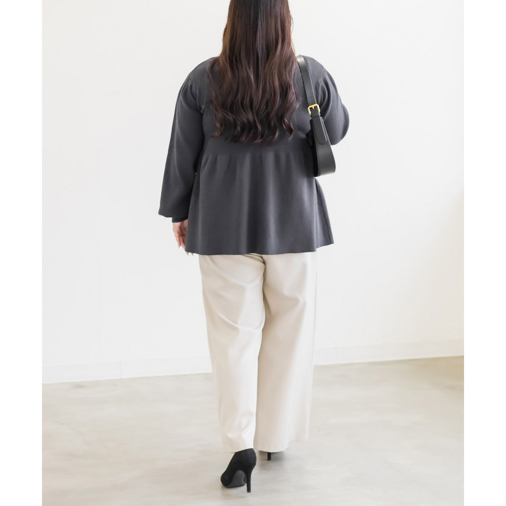 | 3Lサイズを着用してちょうどいいサイズ感でした。やわらかいリブニットで着心地はらくちんでした!シルエットが綺麗で、女性らしい雰囲気になれる1枚です♪ペプラムシルエットなのでお腹周りもカバーしてくれるのが嬉しい!普段使いはもちろん、キレイめにも着られるのでオフィスカジュアルにもおすすめです! |
