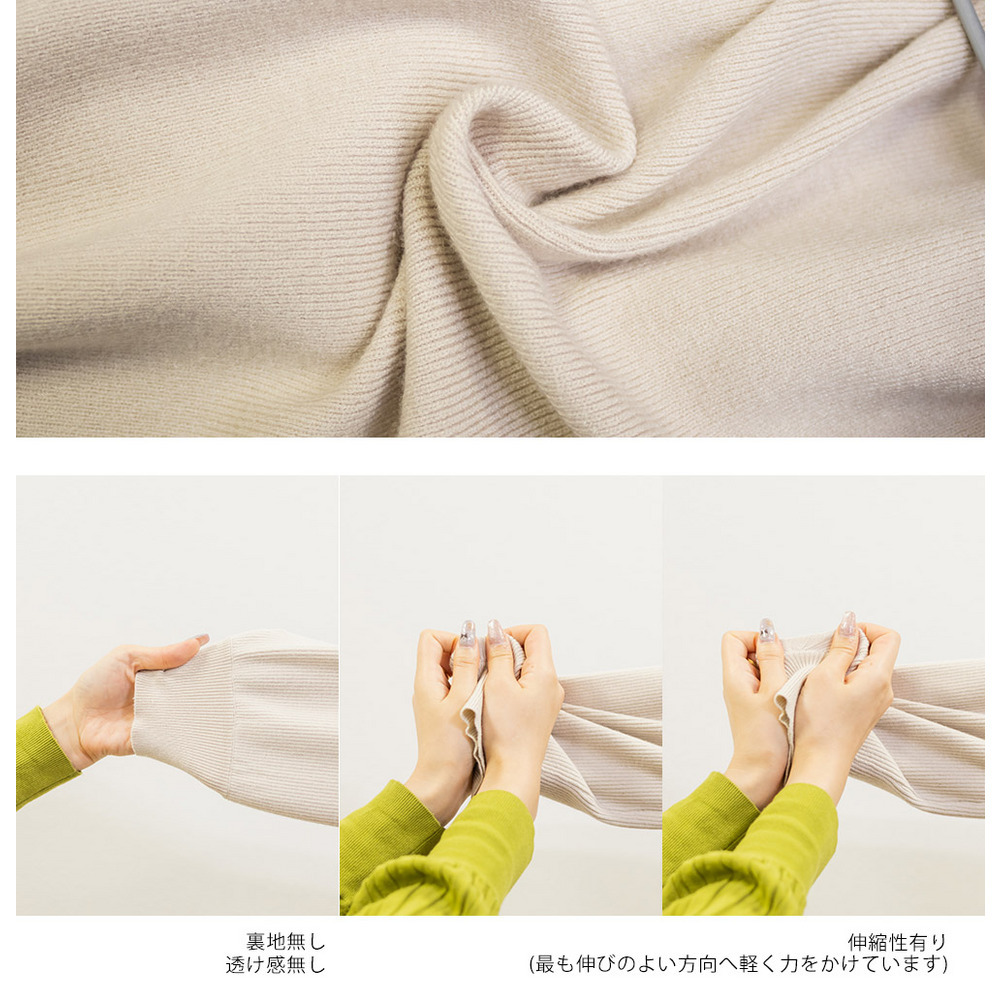 | 素材 | ■素材 レーヨン50%、ポリエステル30%、ナイロン20% ■裏地・透け感・伸縮性 裏地無し、透け感無し、伸縮性有り ■ポケット 無し ■生地感 柔らかく伸びのあるニット素材 |